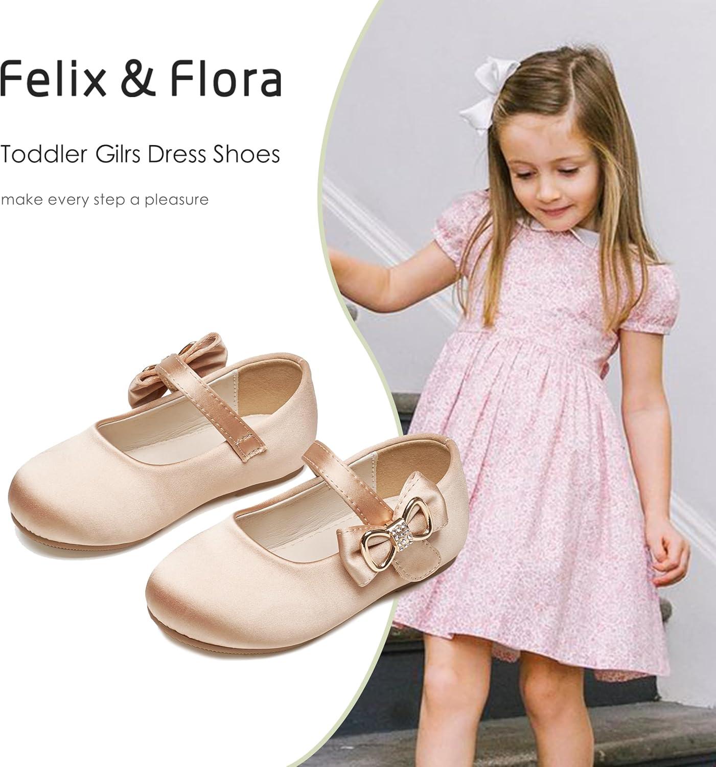 Felix & Flora Toddler Flower Girl Dress Shoes – Baby Girl Ballet Mary Jane Flats for Party School Wedding(B888-s Dark Nude)