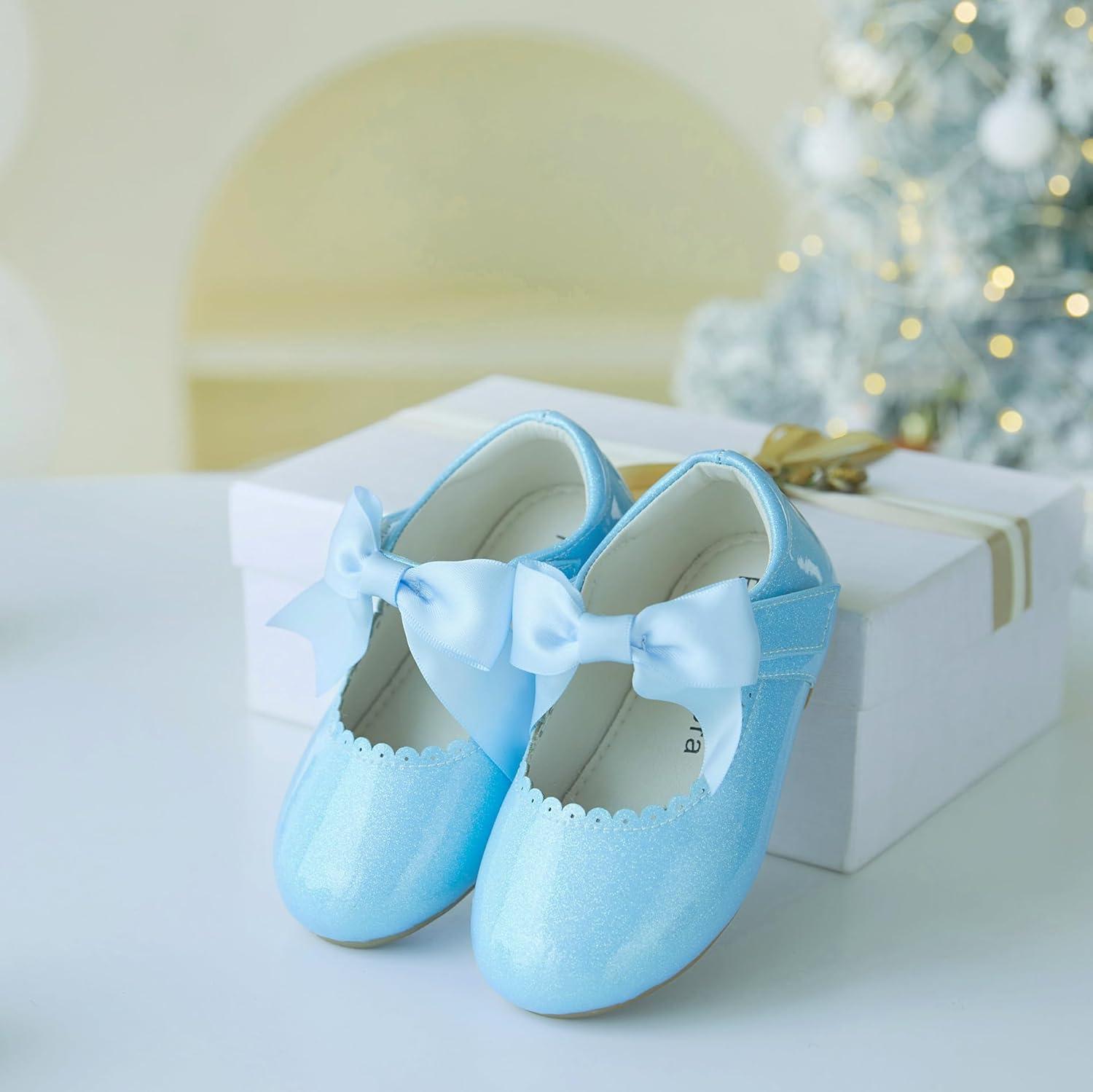 Felix & Flora Toddler Flower Girl Dress Shoes – Baby Girl Ballet Mary Jane Flats for Party School Wedding(B890-blue)