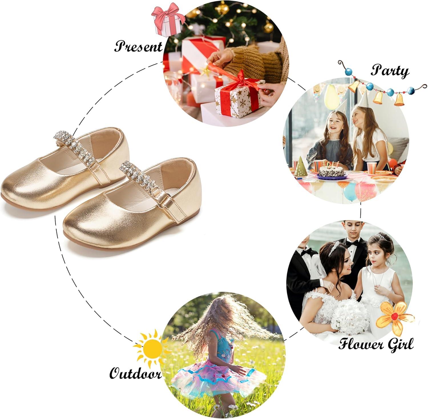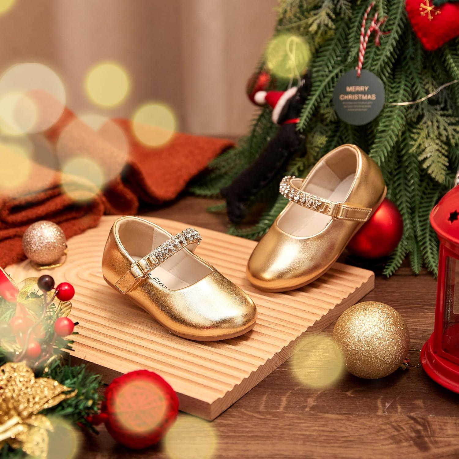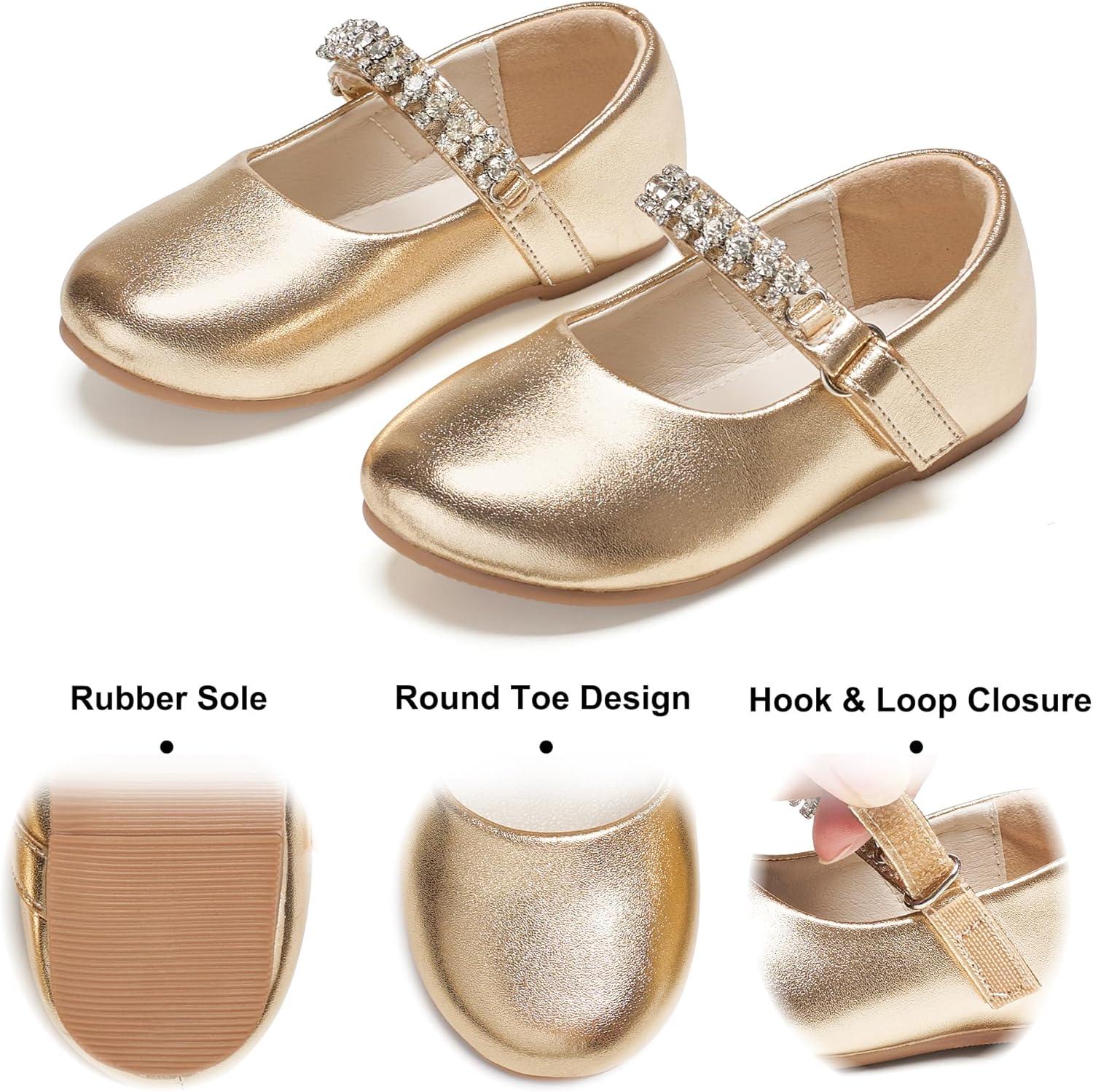 Felix & Flora Toddler Flower Girl Dress Shoes – Baby Girl Ballet Mary Jane Flats for Party School Wedding(B899-fl Gold)