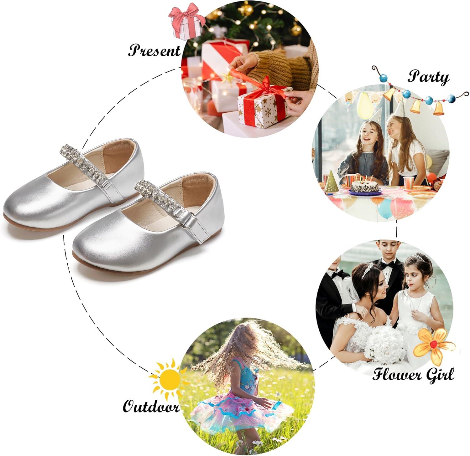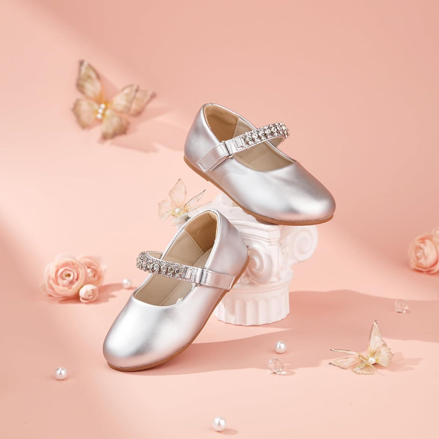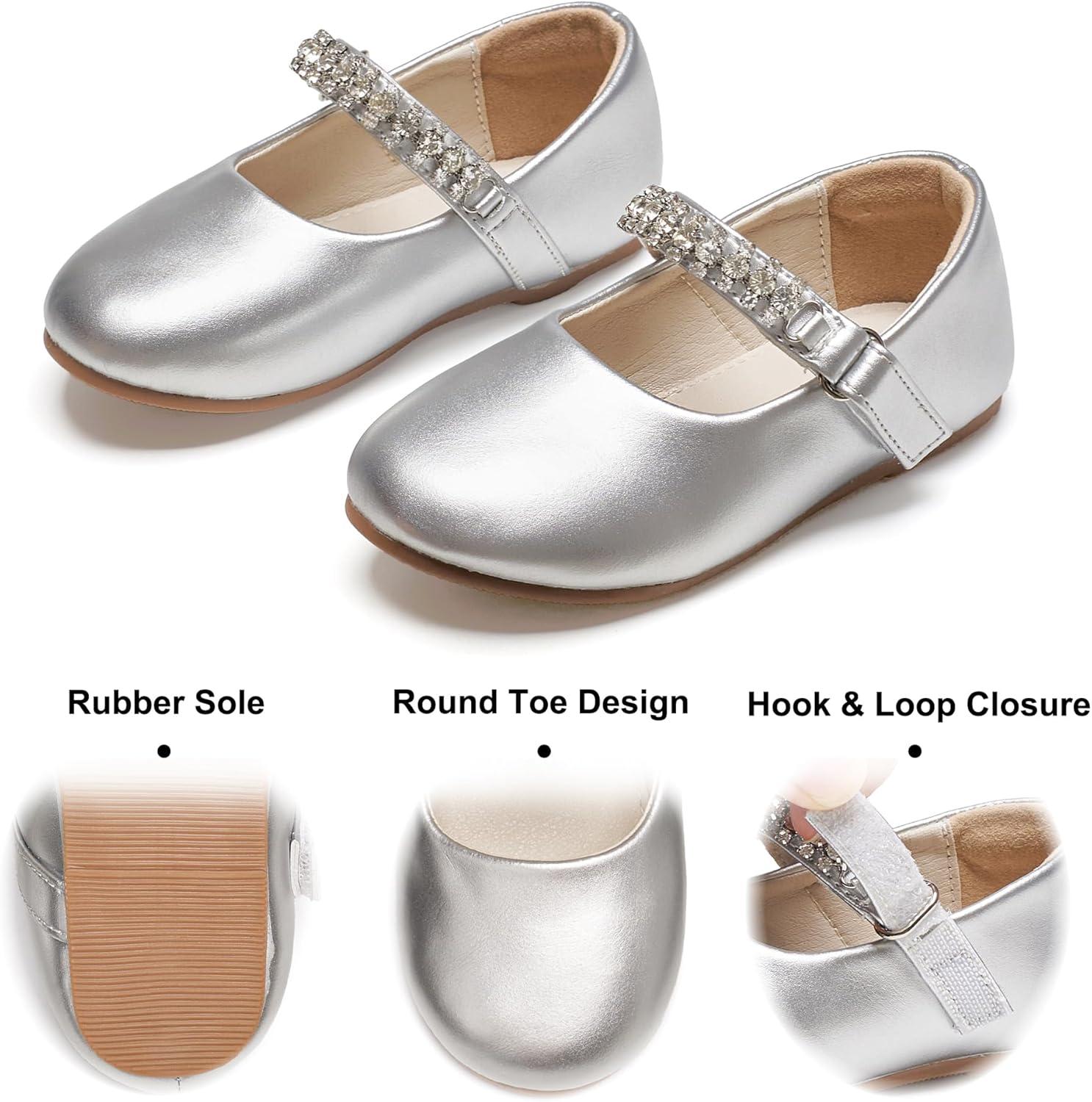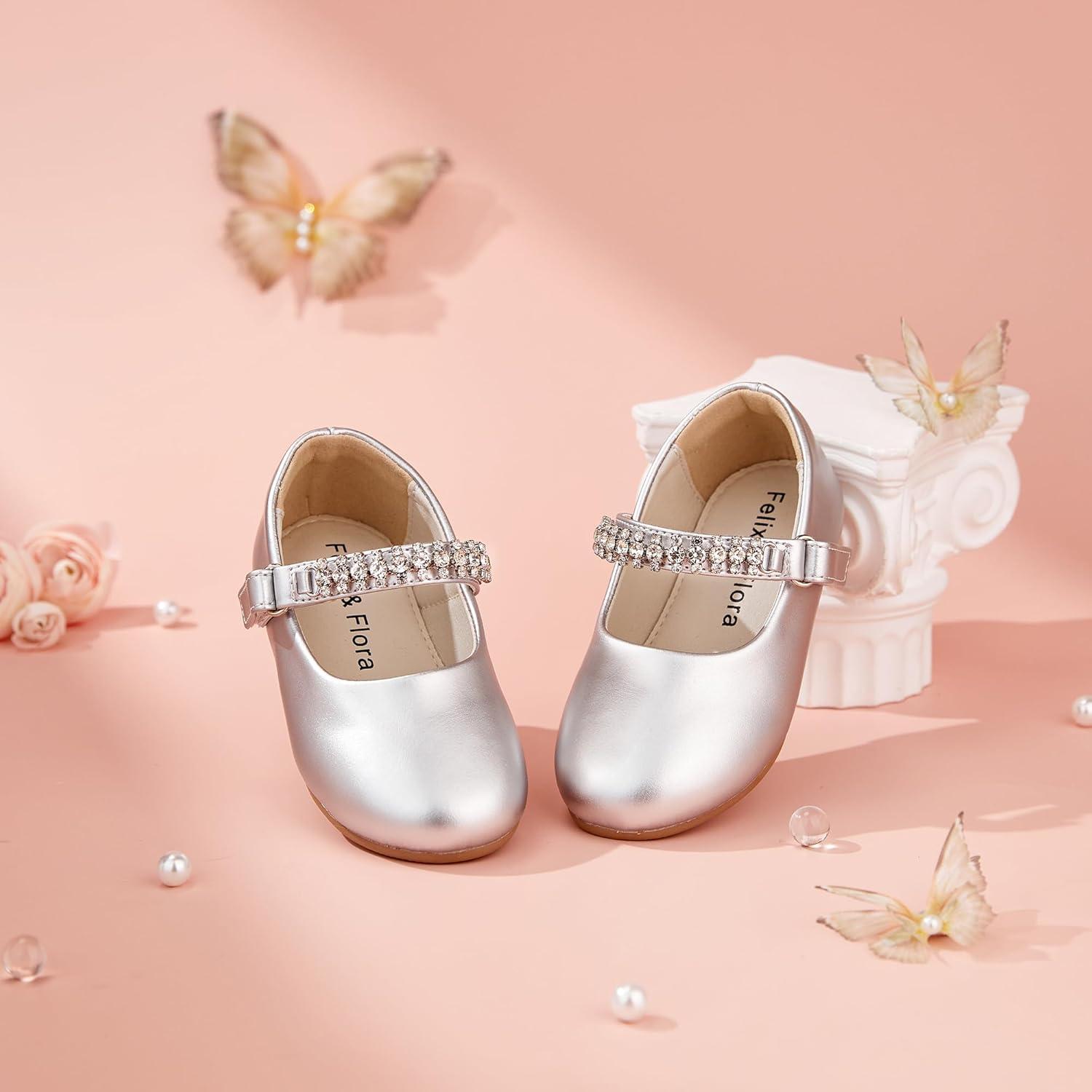 Felix & Flora Toddler Flower Girl Dress Shoes – Baby Girl Ballet Mary Jane Flats for Party School Wedding(B899-fl Silver)