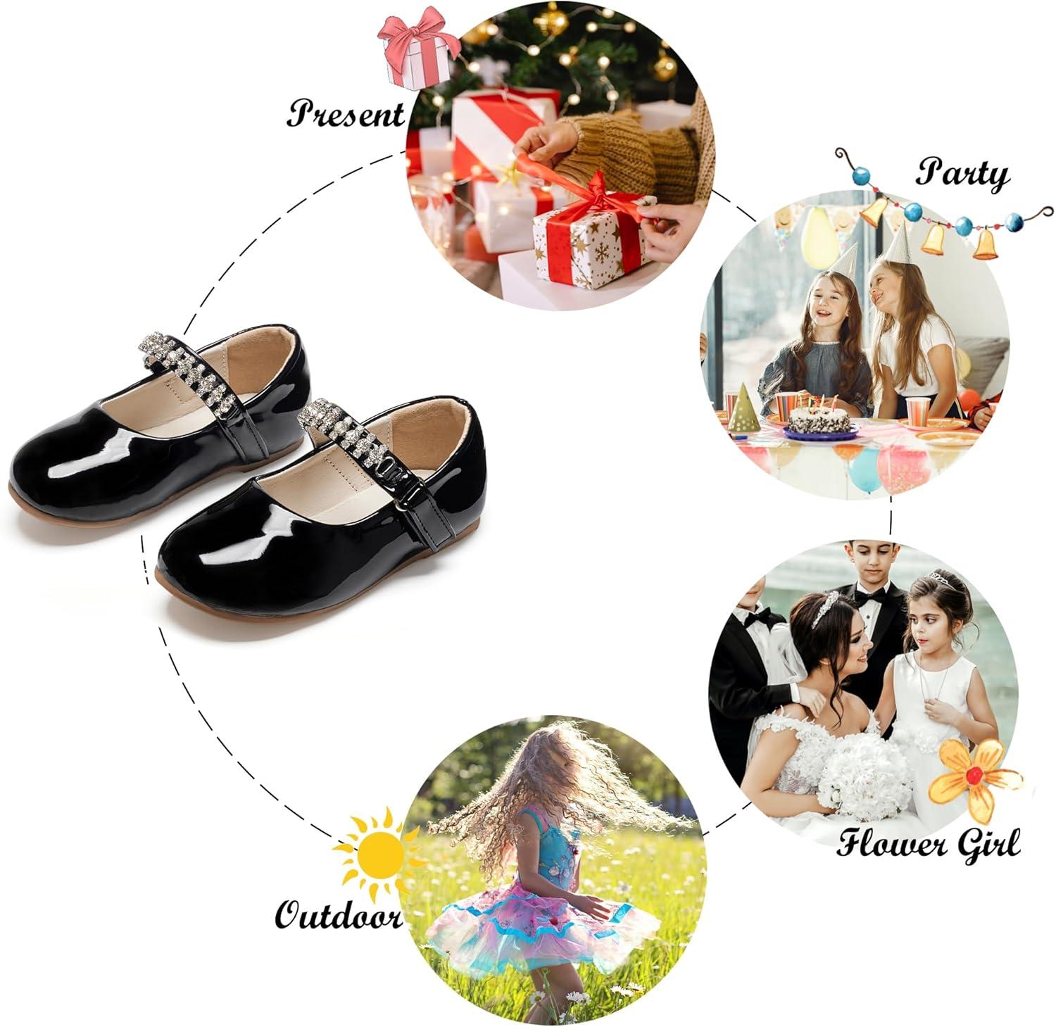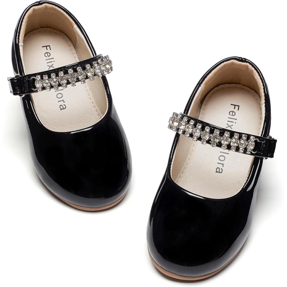 Felix & Flora Toddler Flower Girl Dress Shoes – Baby Girl Ballet Mary Jane Flats for Party School Wedding(B899-pl Black)