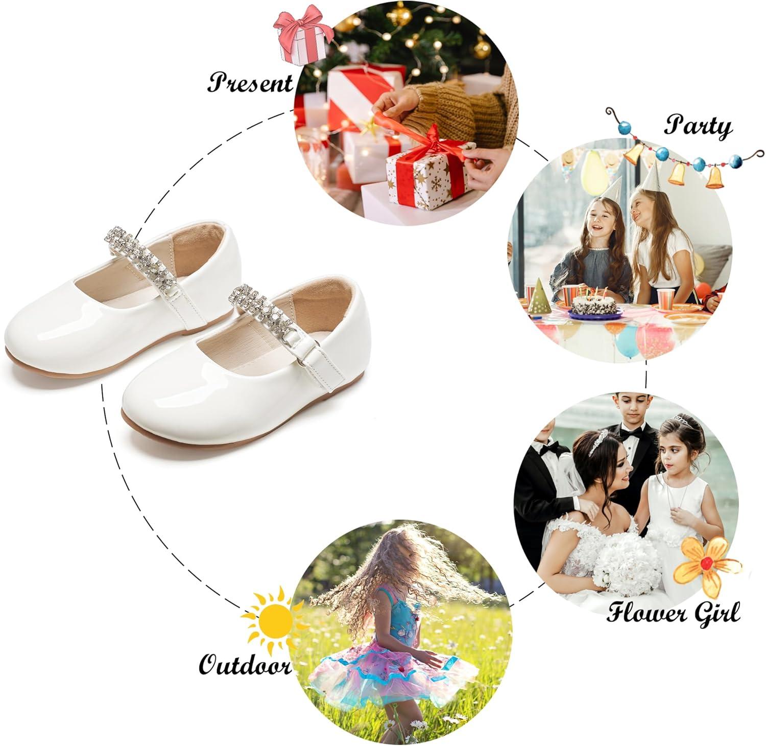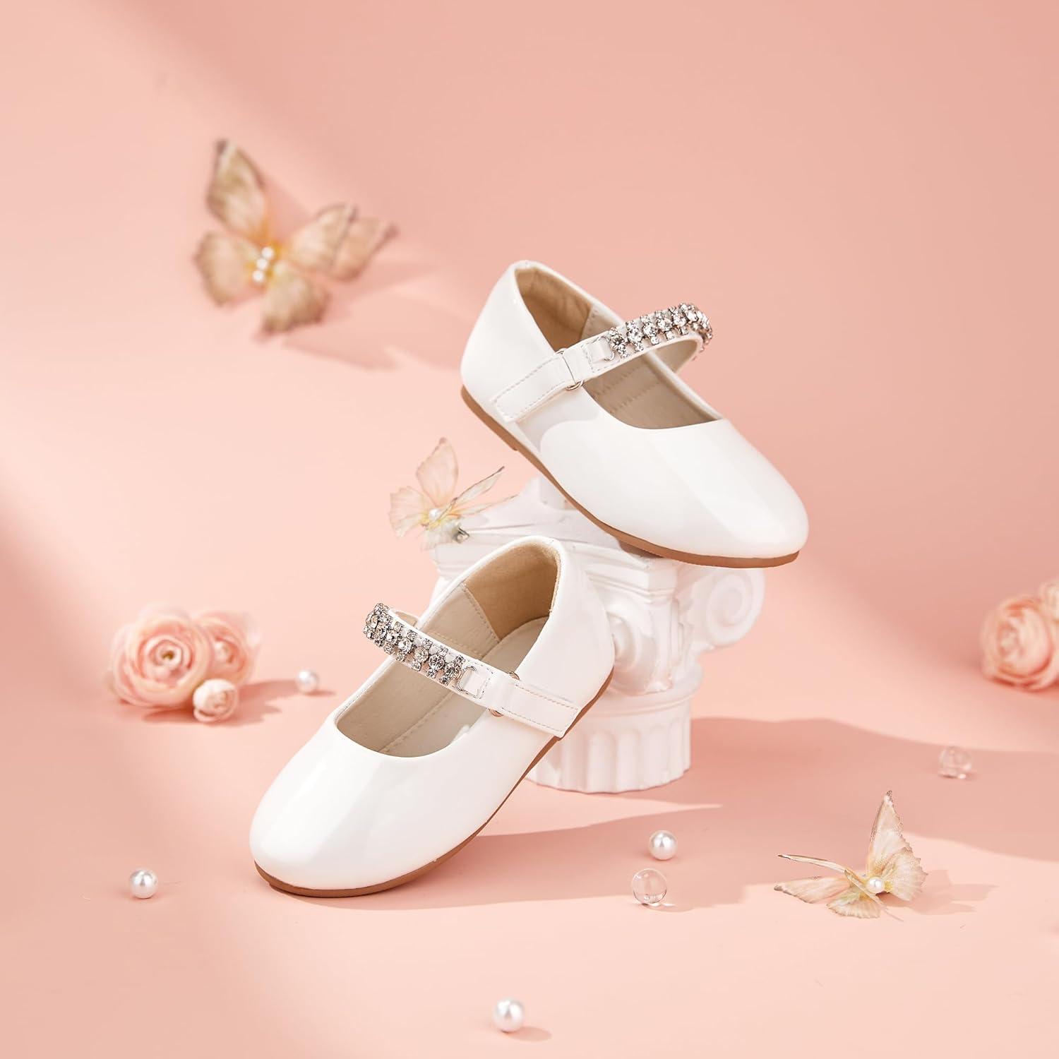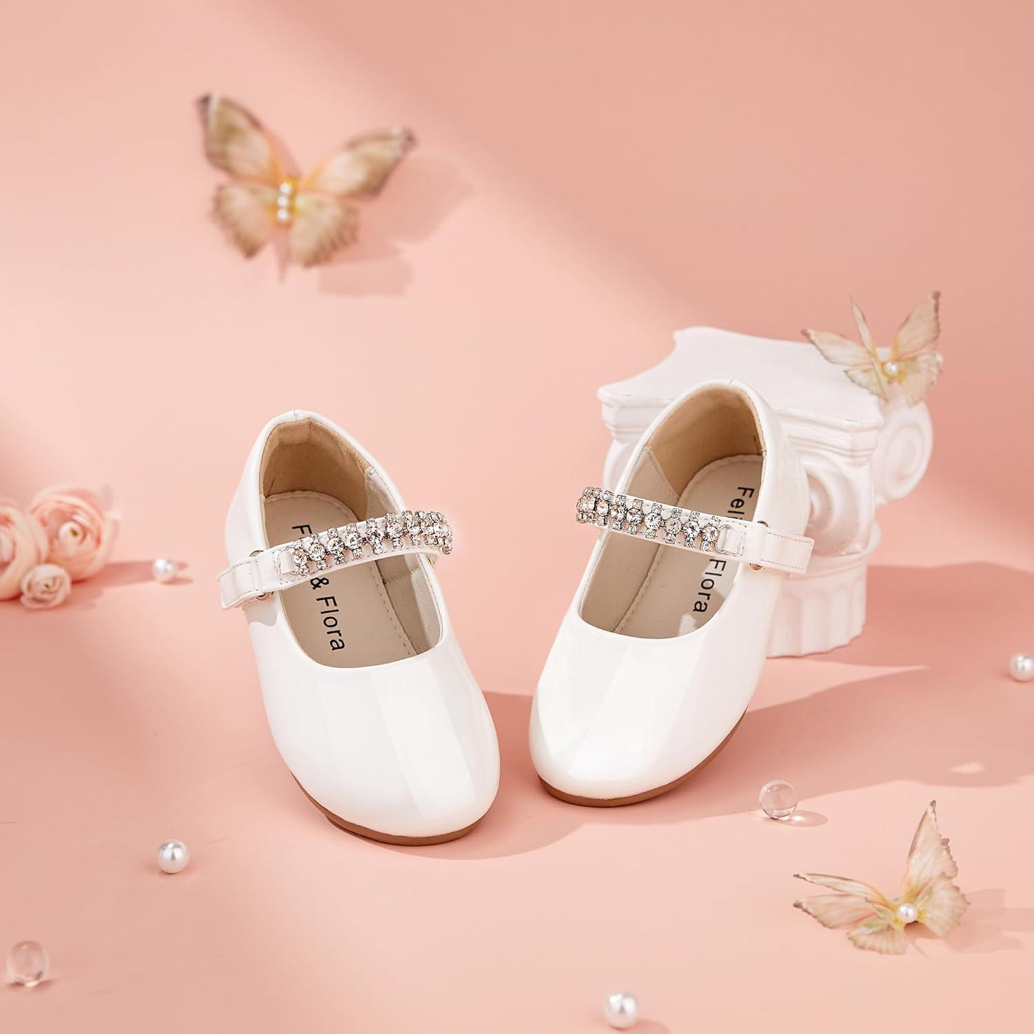 Felix & Flora Toddler Flower Girl Dress Shoes – Baby Girl Ballet Mary Jane Flats for Party School Wedding(B899-pl White)