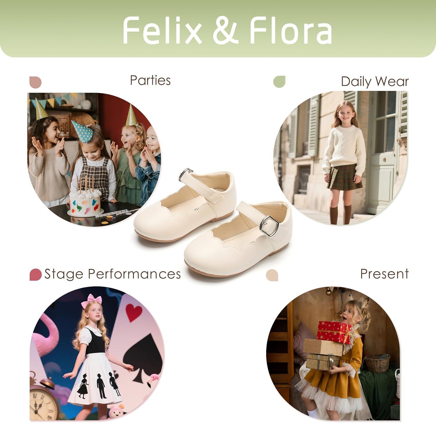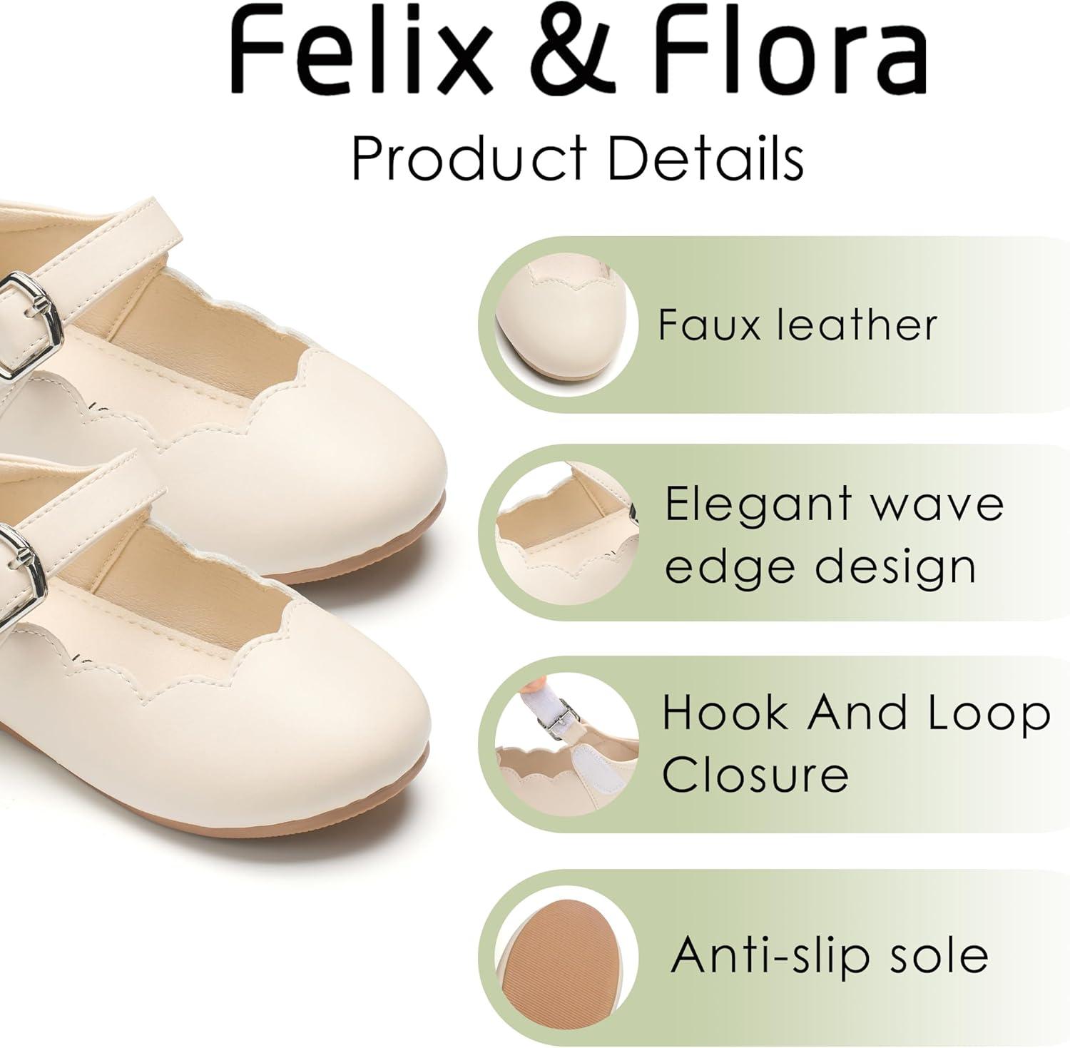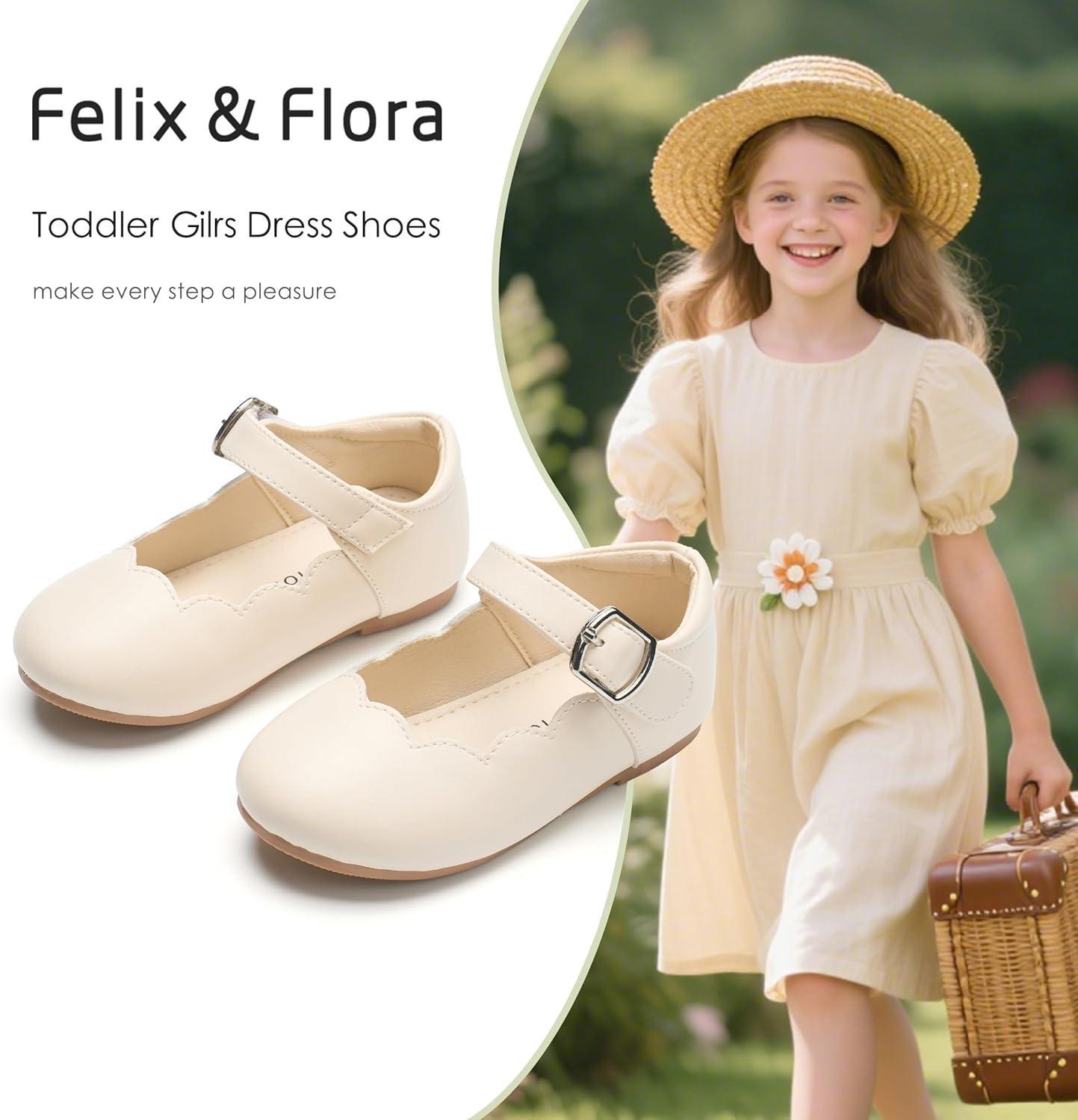 Felix & Flora Toddler Flower Girl Dress Shoes – Baby Girl Ballet Mary Jane Flats for Party School Wedding(B902-beige)