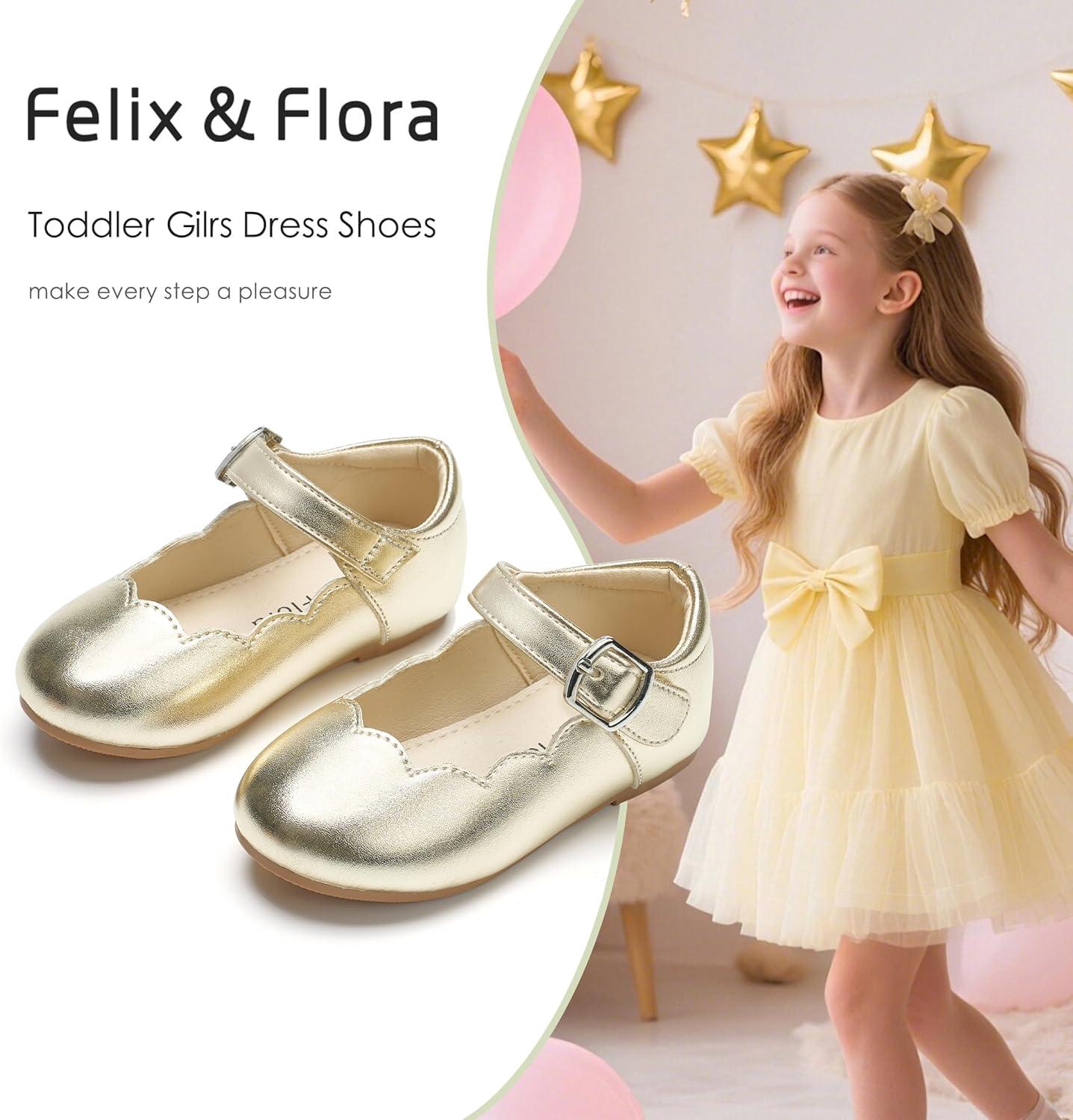 Felix & Flora Toddler Flower Girl Dress Shoes – Baby Girl Ballet Mary Jane Flats for Party School Wedding(B902-bright Gold)