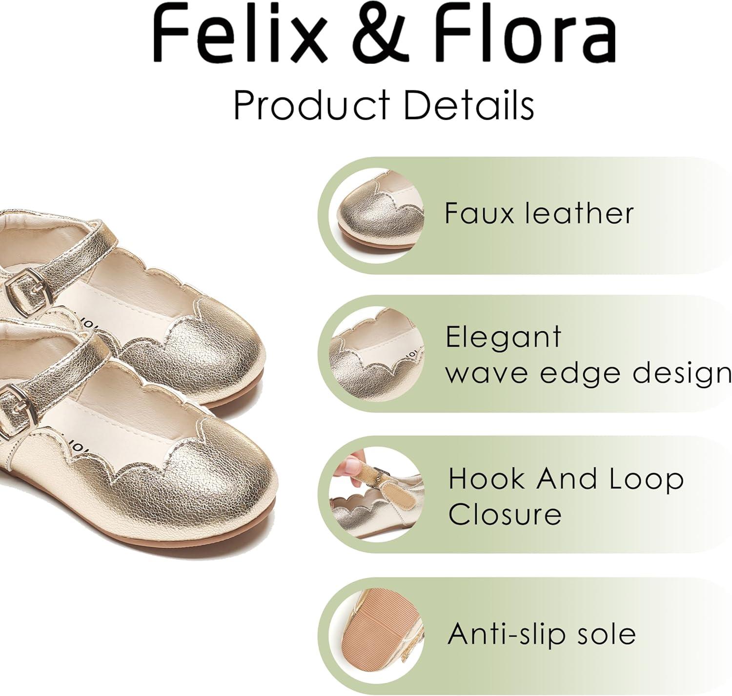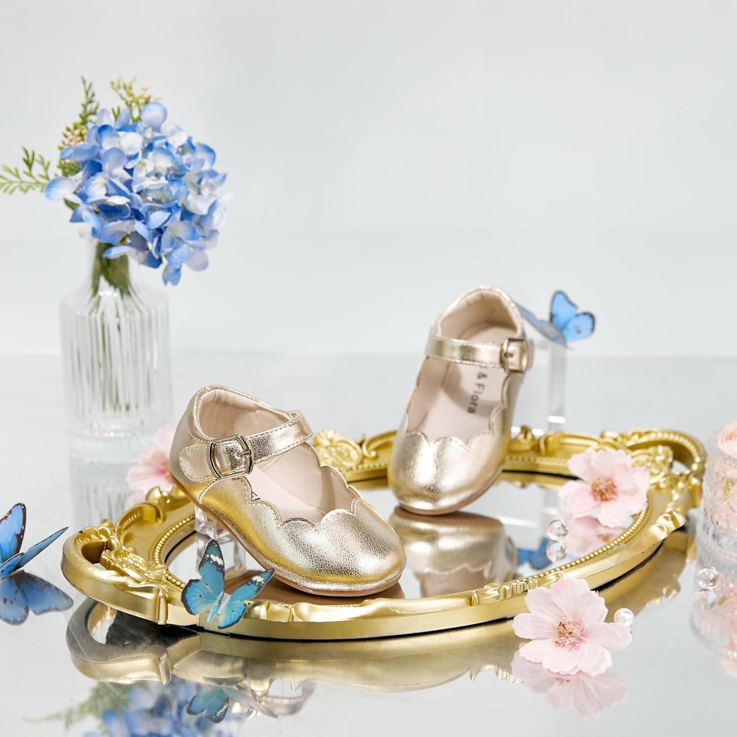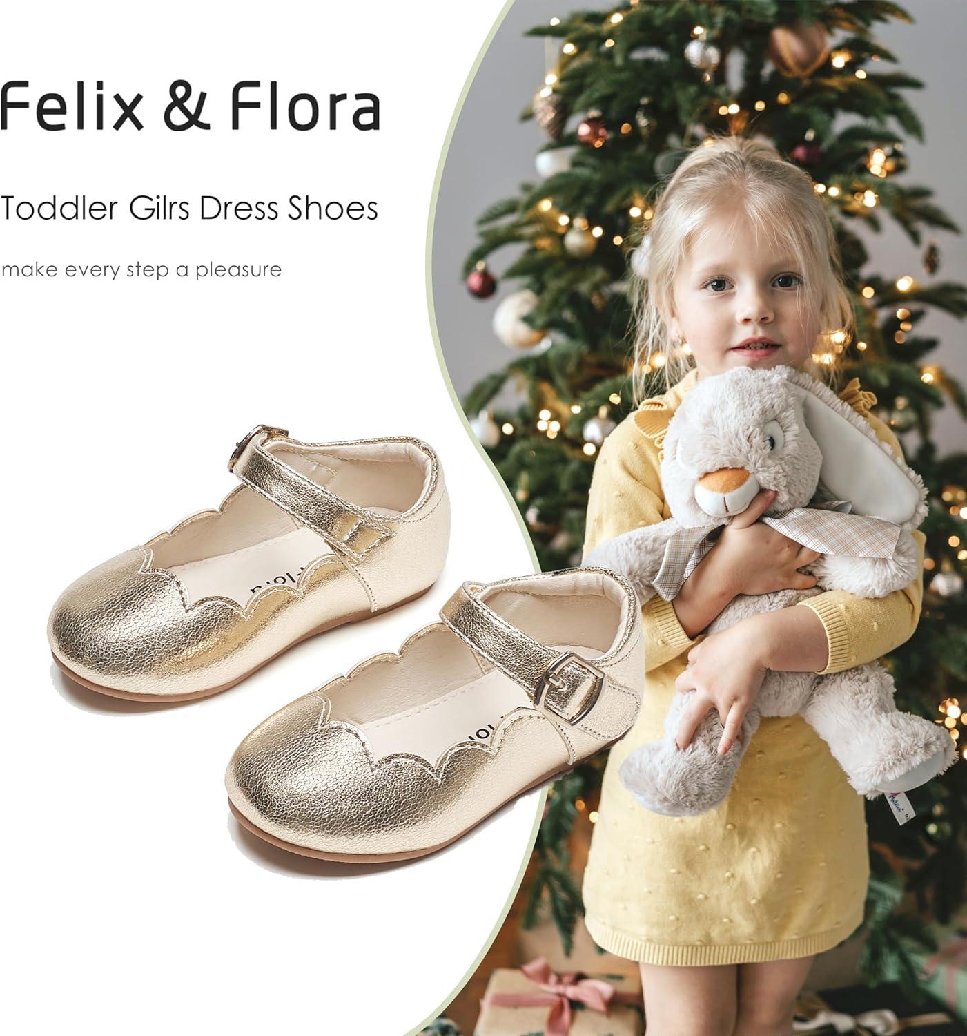 Felix & Flora Toddler Flower Girl Dress Shoes – Baby Girl Ballet Mary Jane Flats for Party School Wedding(B902-gold)