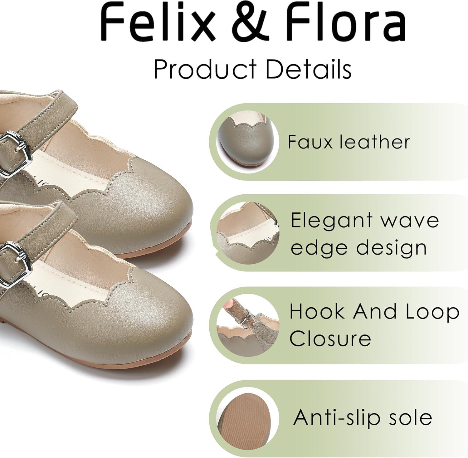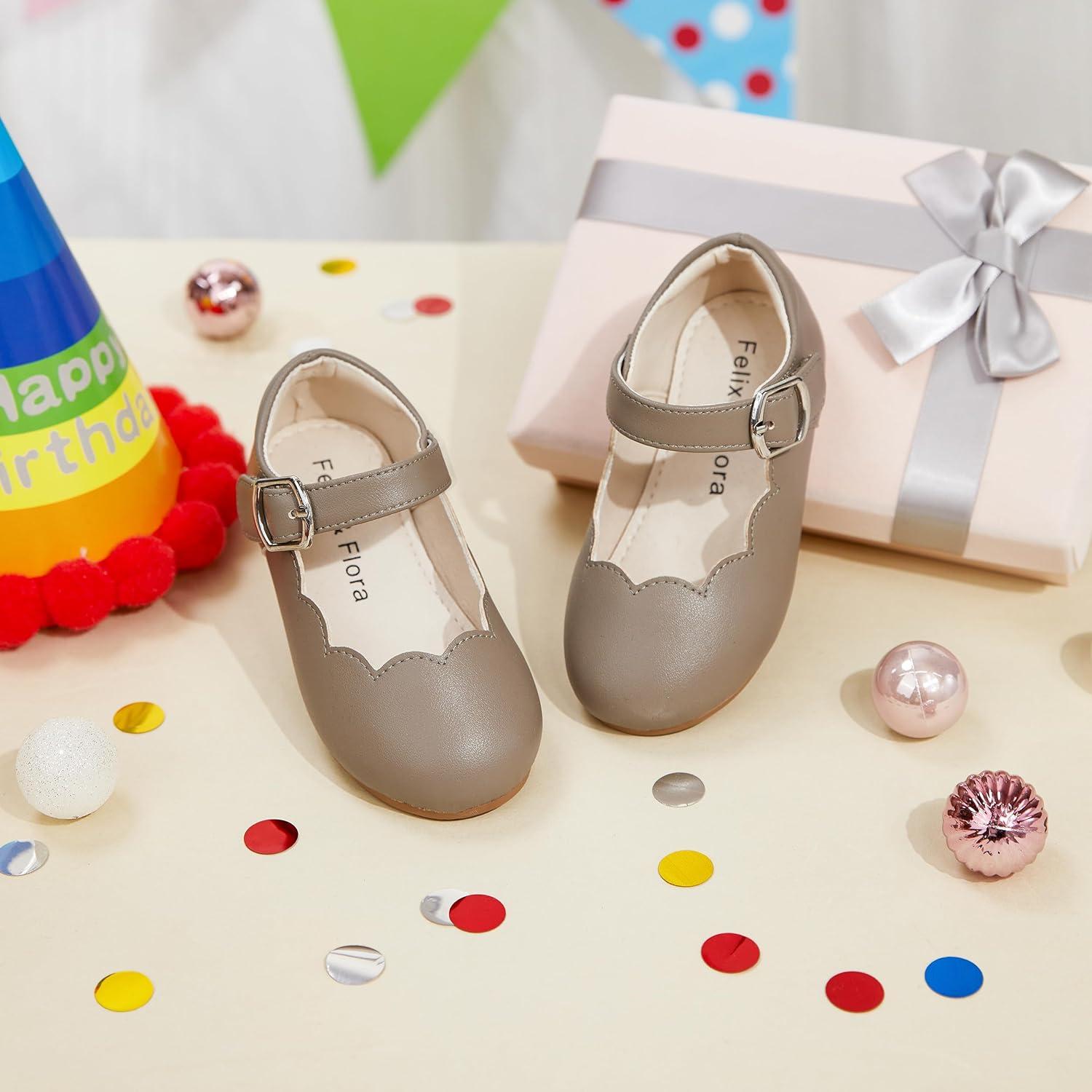 Felix & Flora Toddler Flower Girl Dress Shoes – Baby Girl Ballet Mary Jane Flats for Party School Wedding(B902-grey)