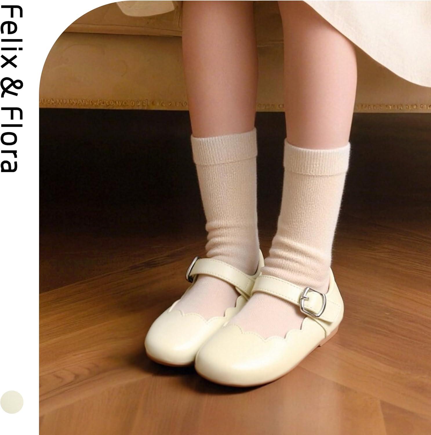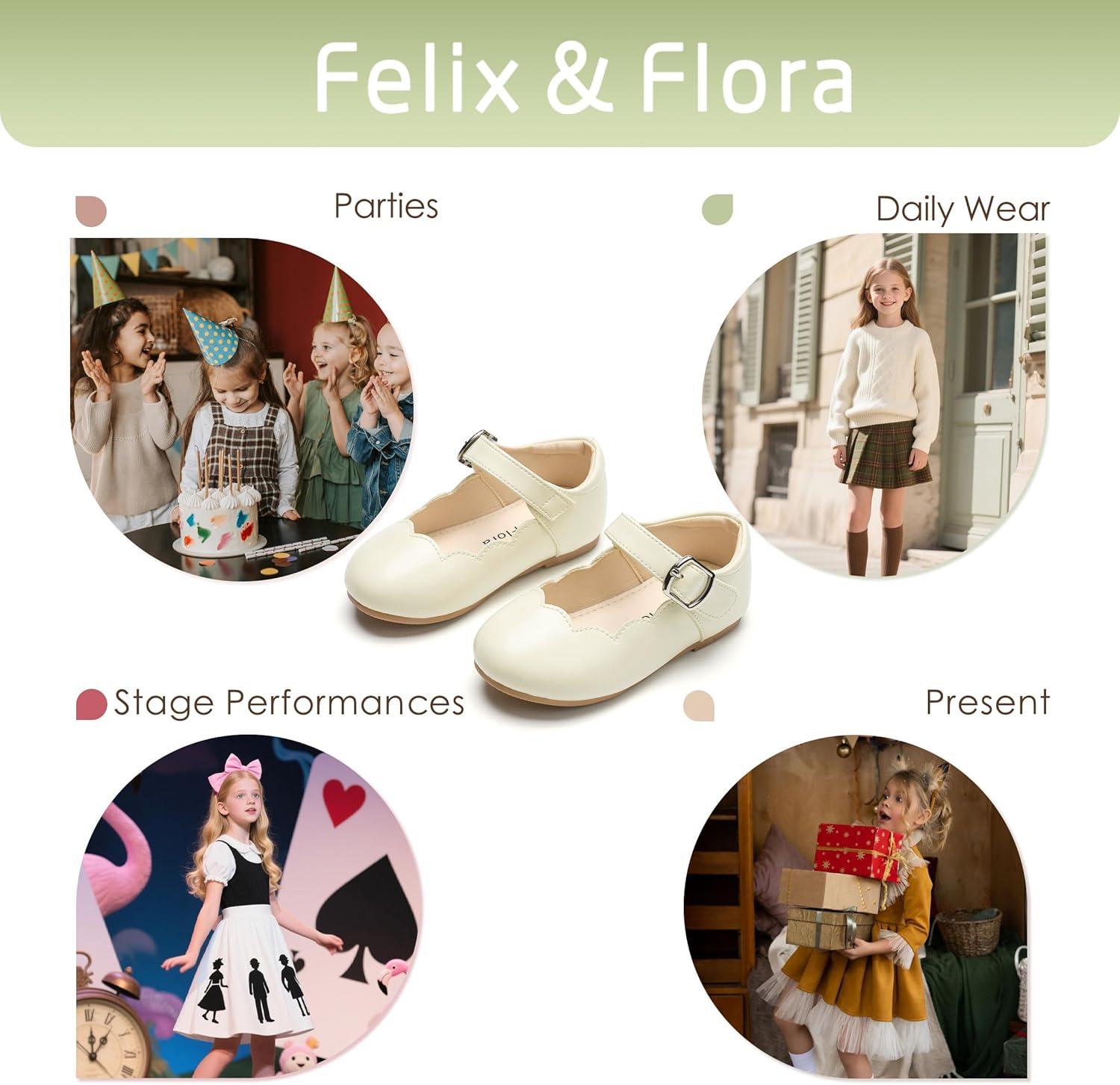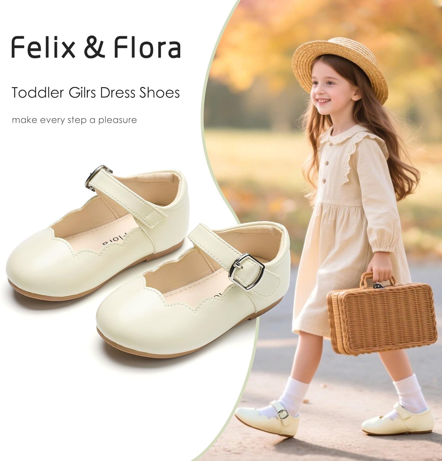 Felix & Flora Toddler Flower Girl Dress Shoes – Baby Girl Ballet Mary Jane Flats for Party School Wedding(B902-ivory White)