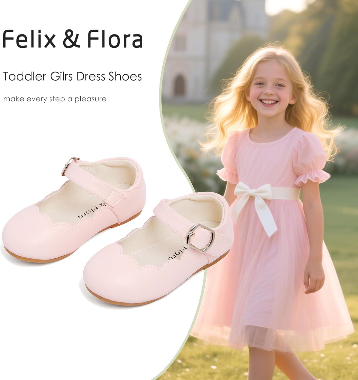 Felix & Flora Toddler Flower Girl Dress Shoes – Baby Girl Ballet Mary Jane Flats for Party School Wedding(B902-light Pink)