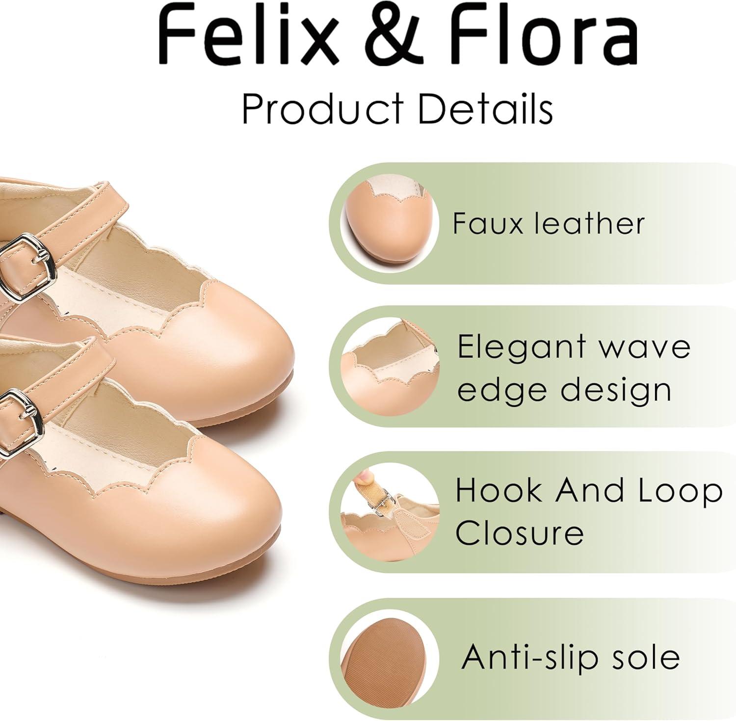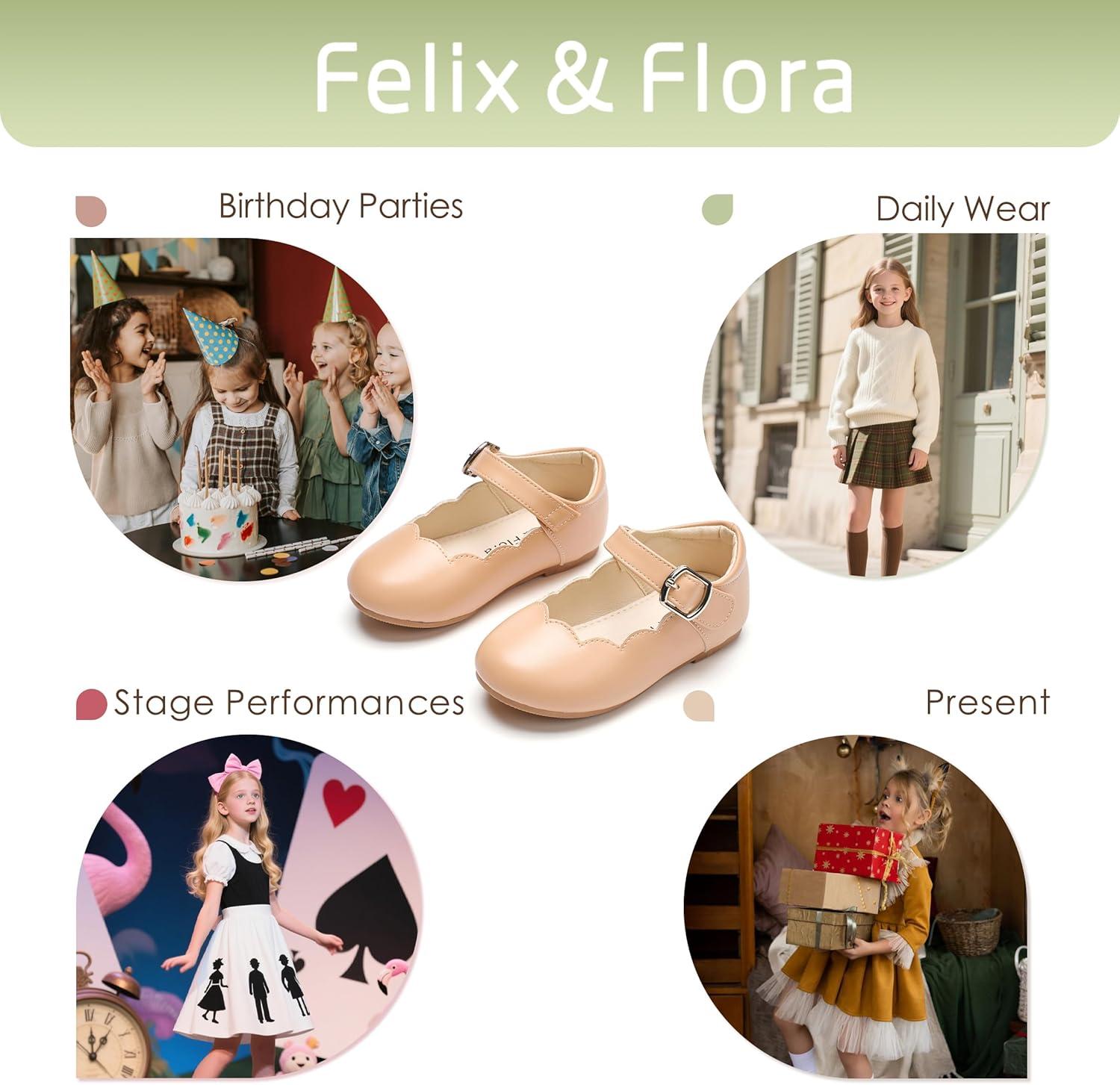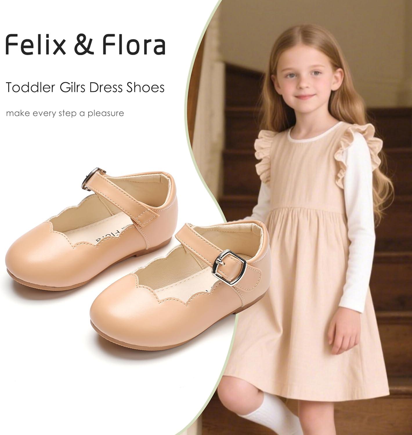 Felix & Flora Toddler Flower Girl Dress Shoes – Baby Girl Ballet Mary Jane Flats for Party School Wedding(B902-nude)