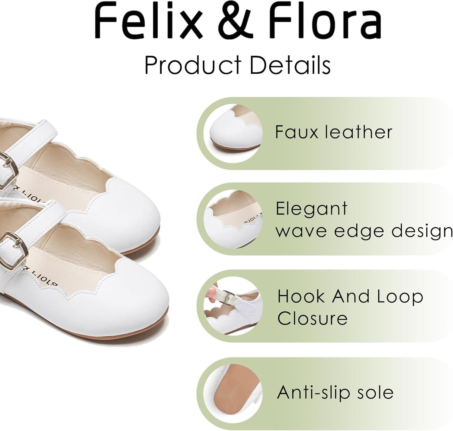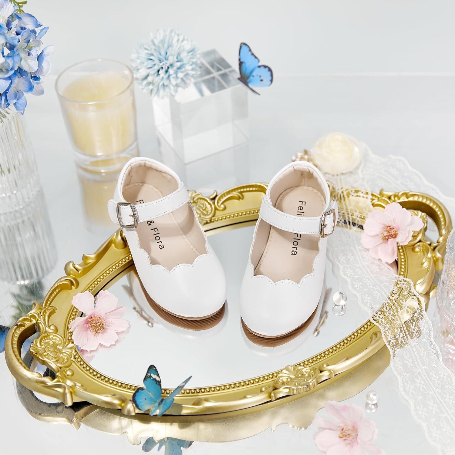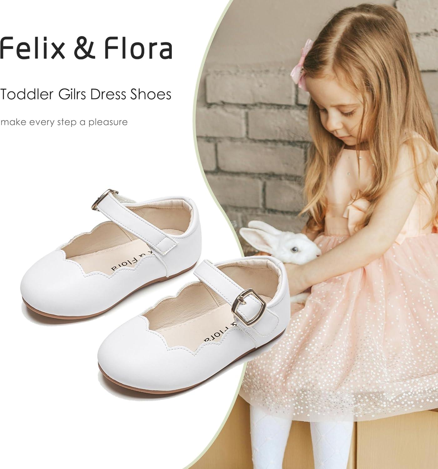 Felix & Flora Toddler Flower Girl Dress Shoes – Baby Girl Ballet Mary Jane Flats for Party School Wedding(B902-white)