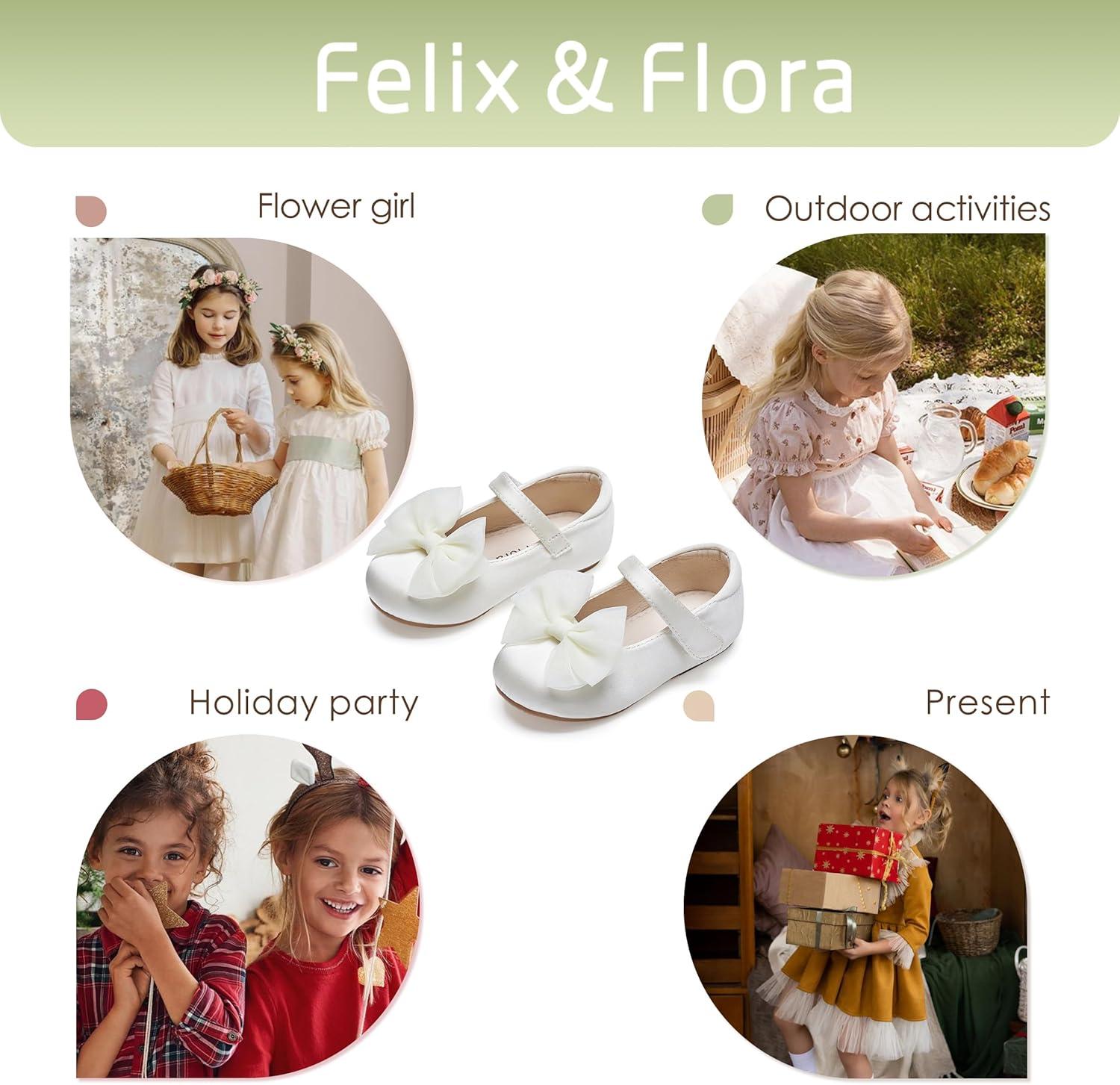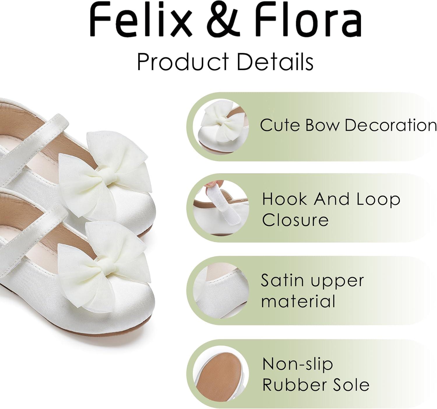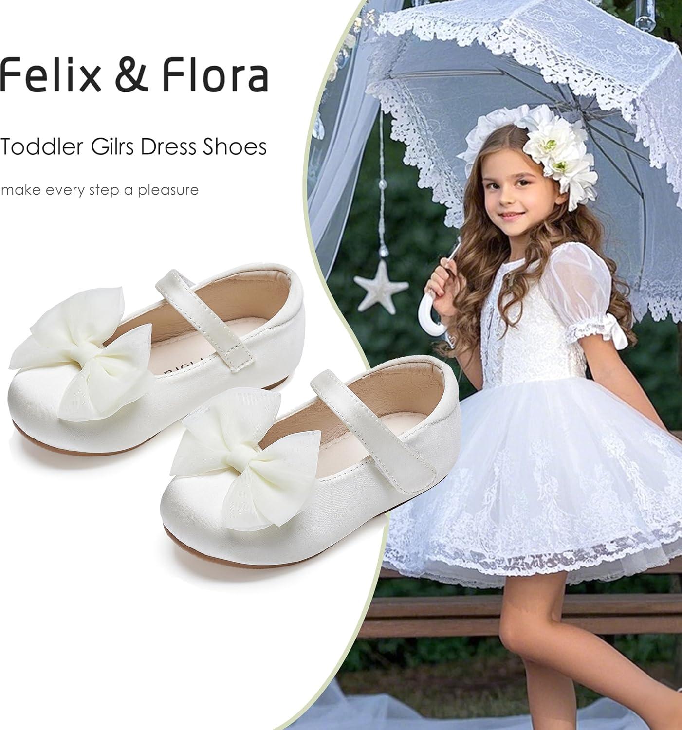 Felix & Flora Toddler Flower Girl Dress Shoes – Baby Girl Ballet Mary Jane Flats for Party School Wedding(Bf04-s Ivory White)
