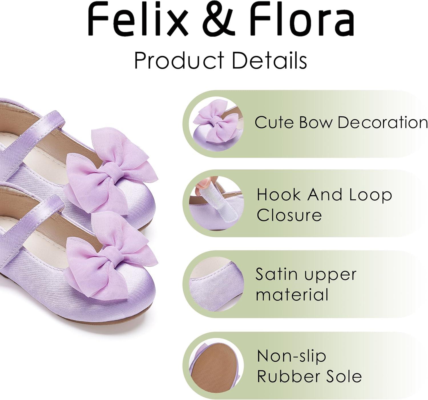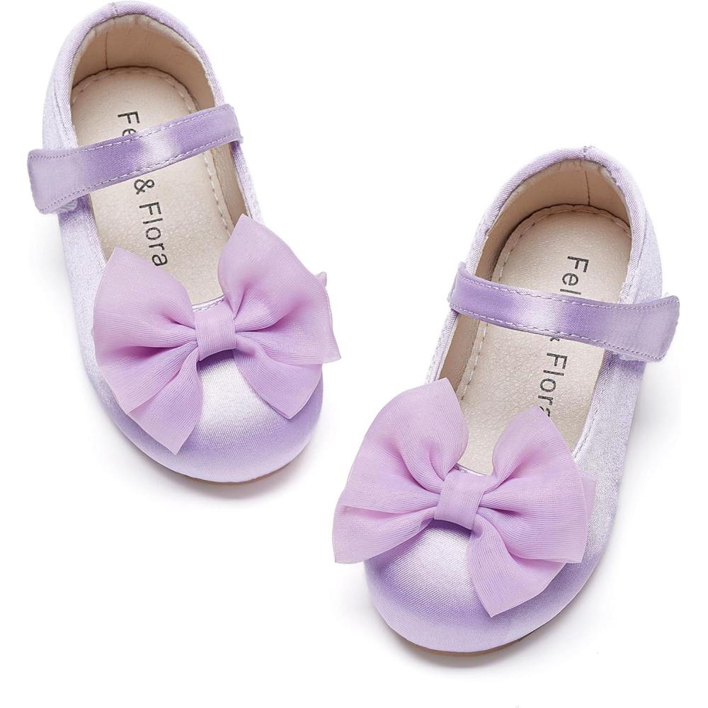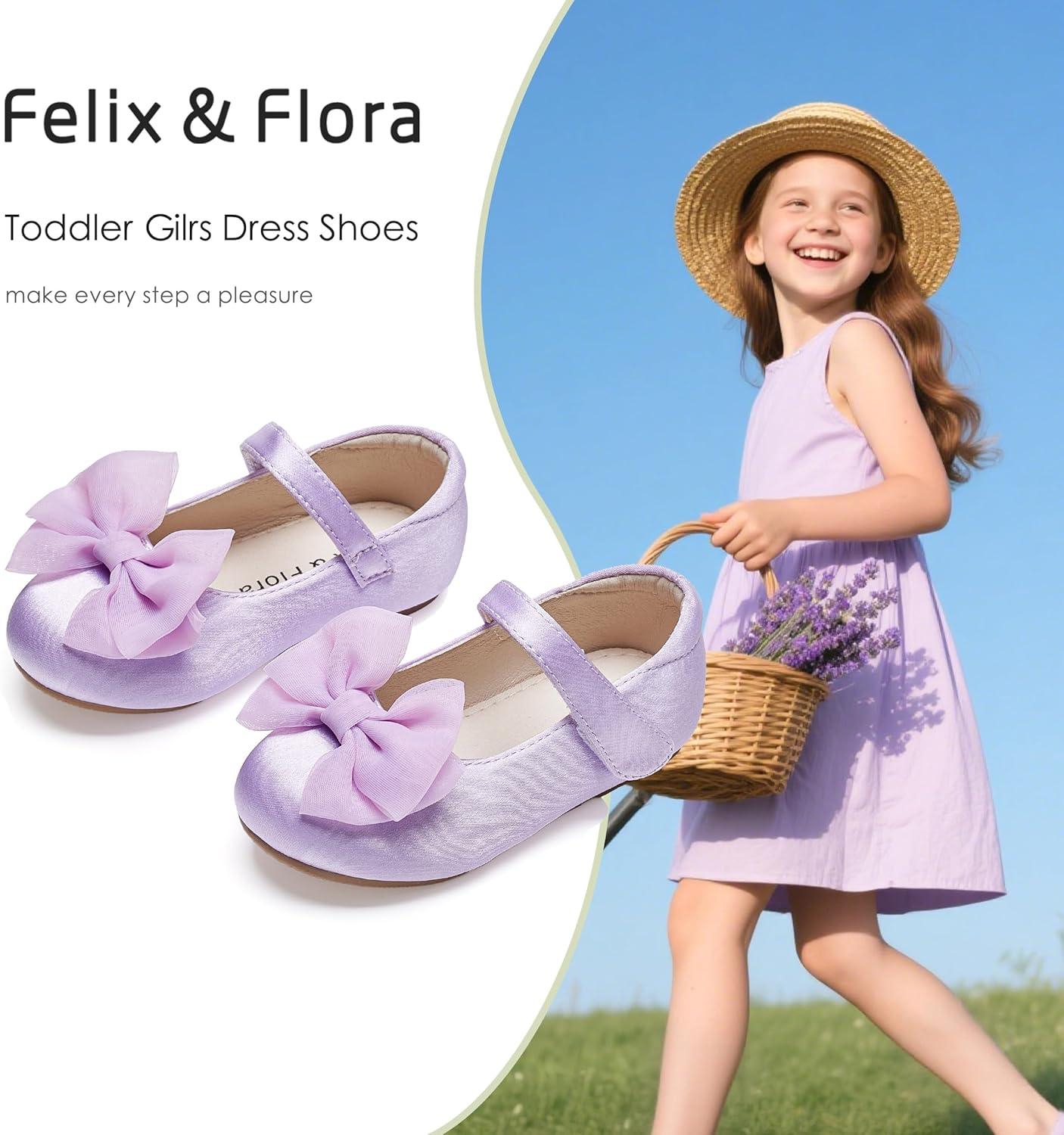 Felix & Flora Toddler Flower Girl Dress Shoes – Baby Girl Ballet Mary Jane Flats for Party School Wedding(Bf04-s Purple)