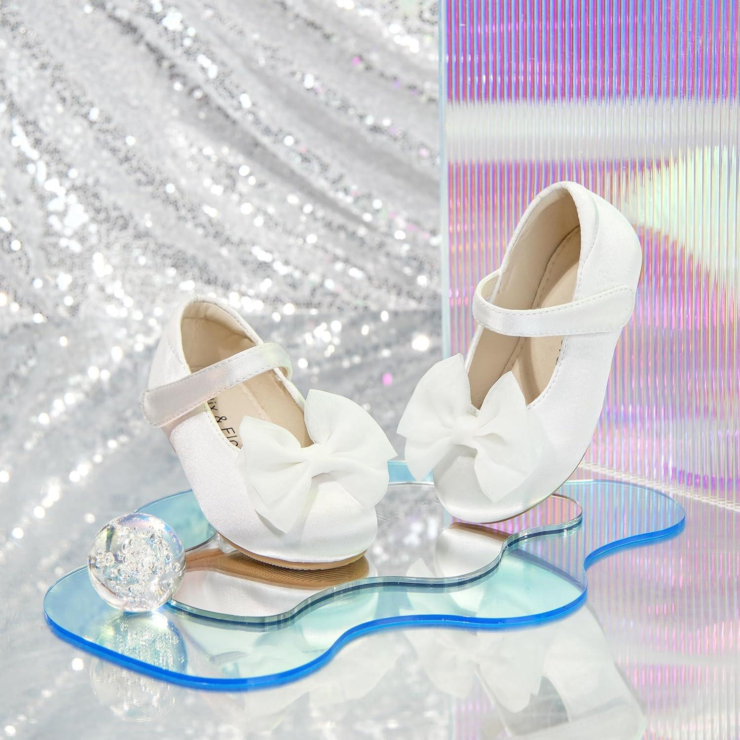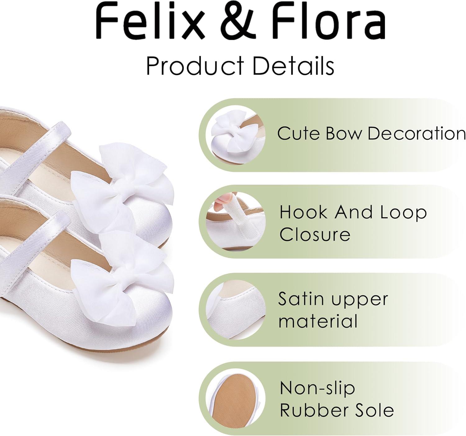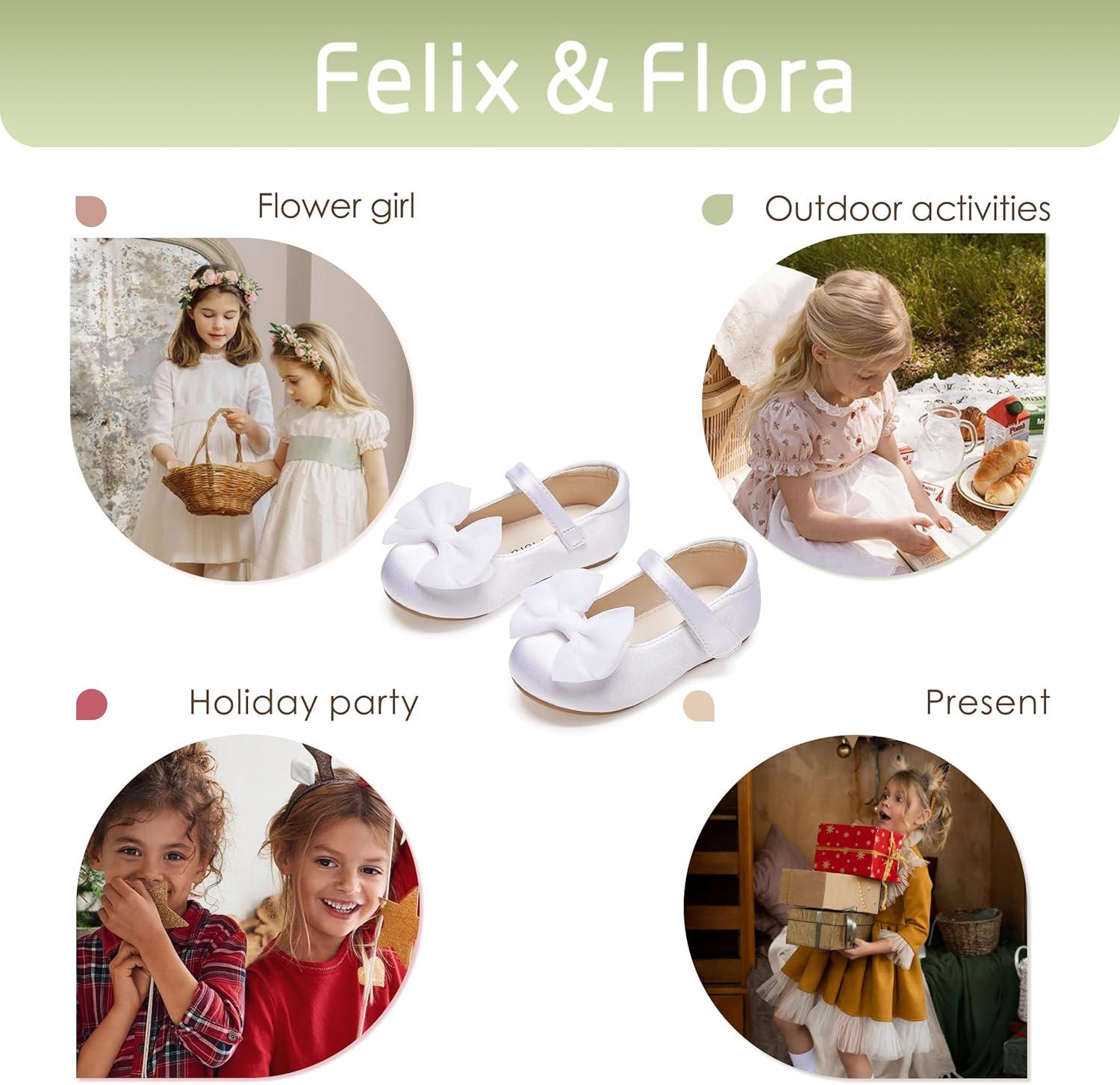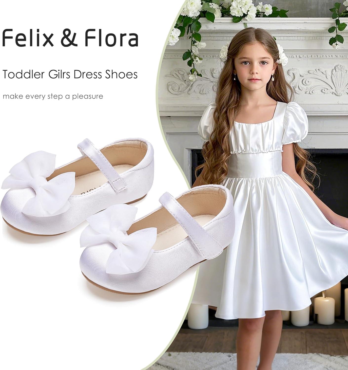 Felix & Flora Toddler Flower Girl Dress Shoes – Baby Girl Ballet Mary Jane Flats for Party School Wedding(Bf04-s White)