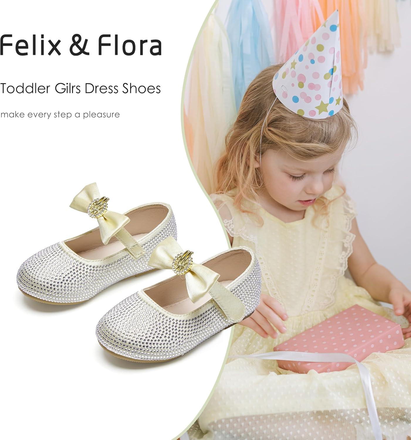 Felix & Flora Toddler Flower Girl Dress Shoes – Baby Girl Ballet Mary Jane Flats for Party School Wedding(Bf08-s Gold)