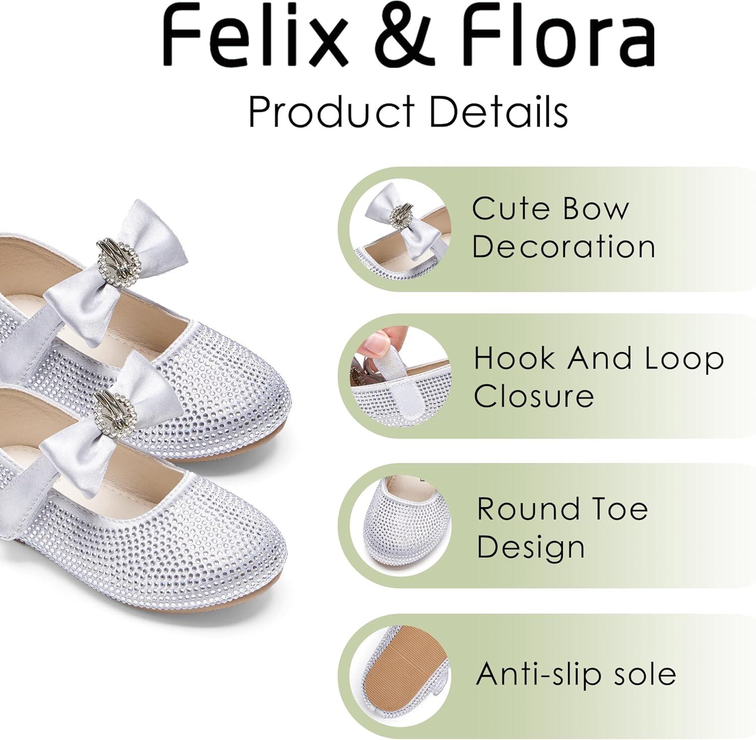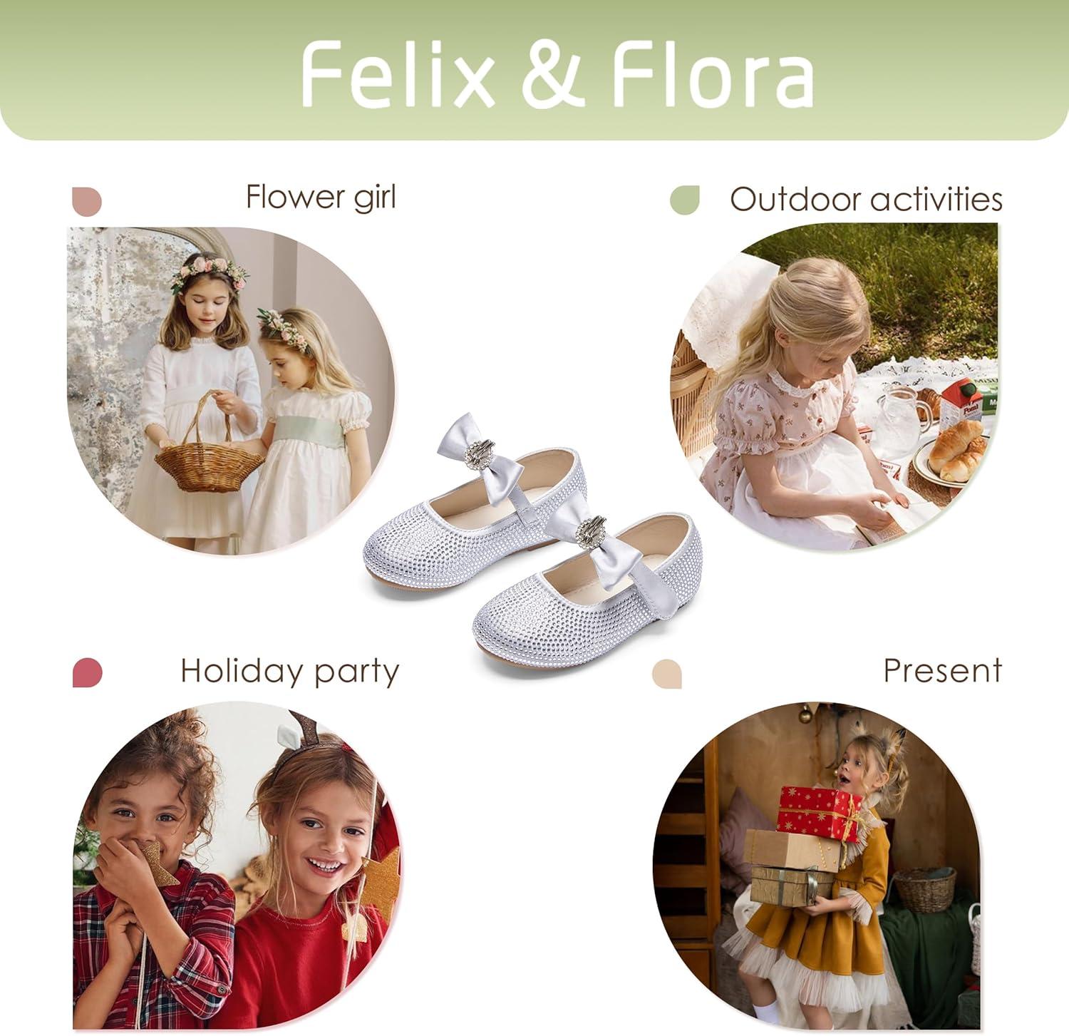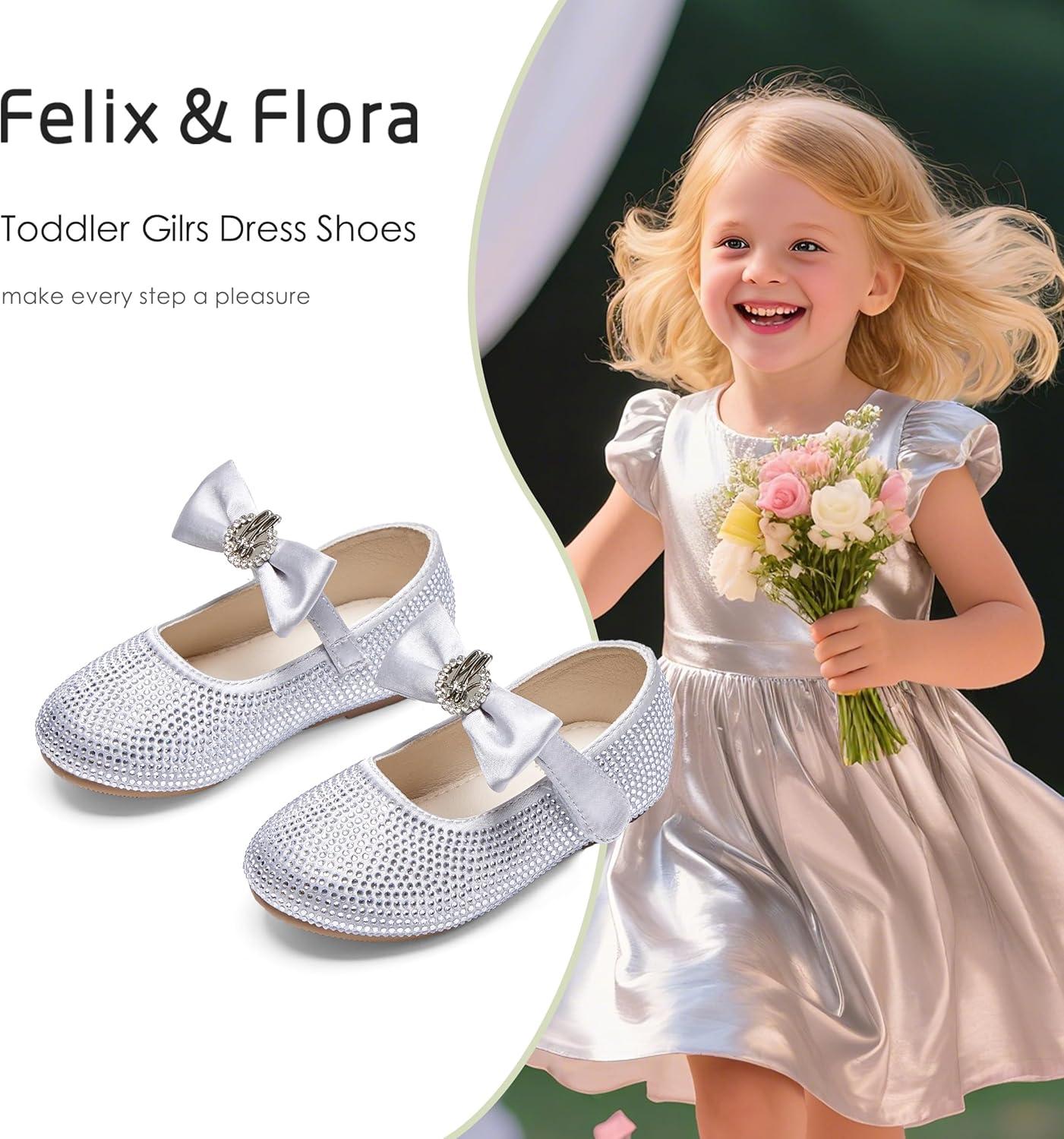 Felix & Flora Toddler Flower Girl Dress Shoes – Baby Girl Ballet Mary Jane Flats for Party School Wedding(Bf08-s Grey)