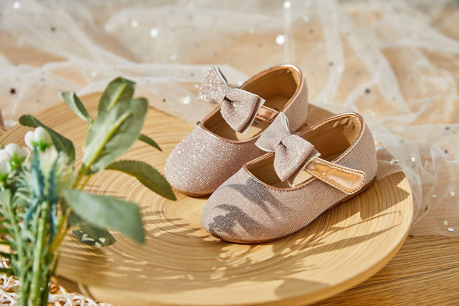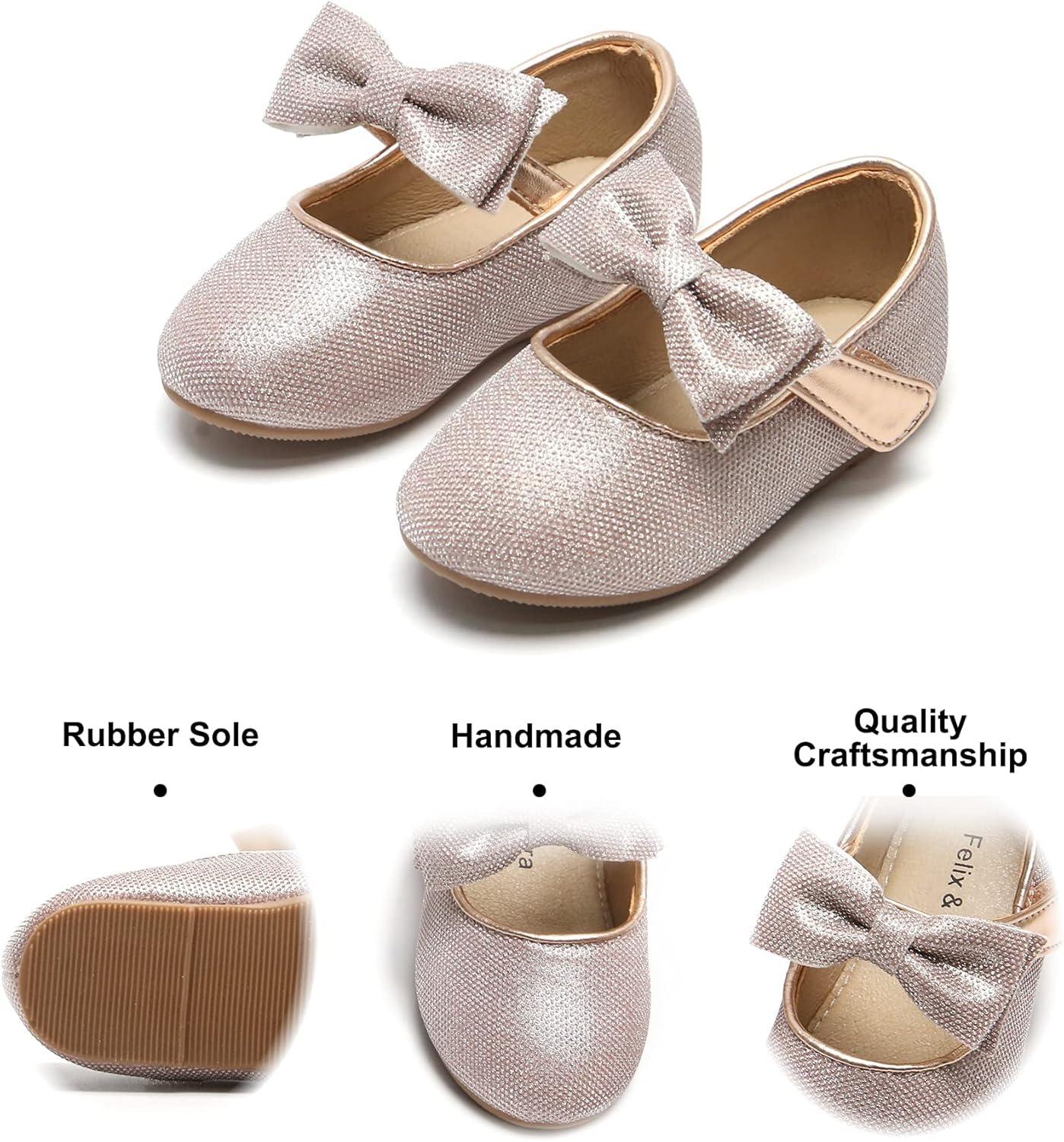 Felix & Flora Toddler Flower Girl Dress Shoes – Girl Ballet Flats Party School Shoes Wedding(B317 Glitter Pink)