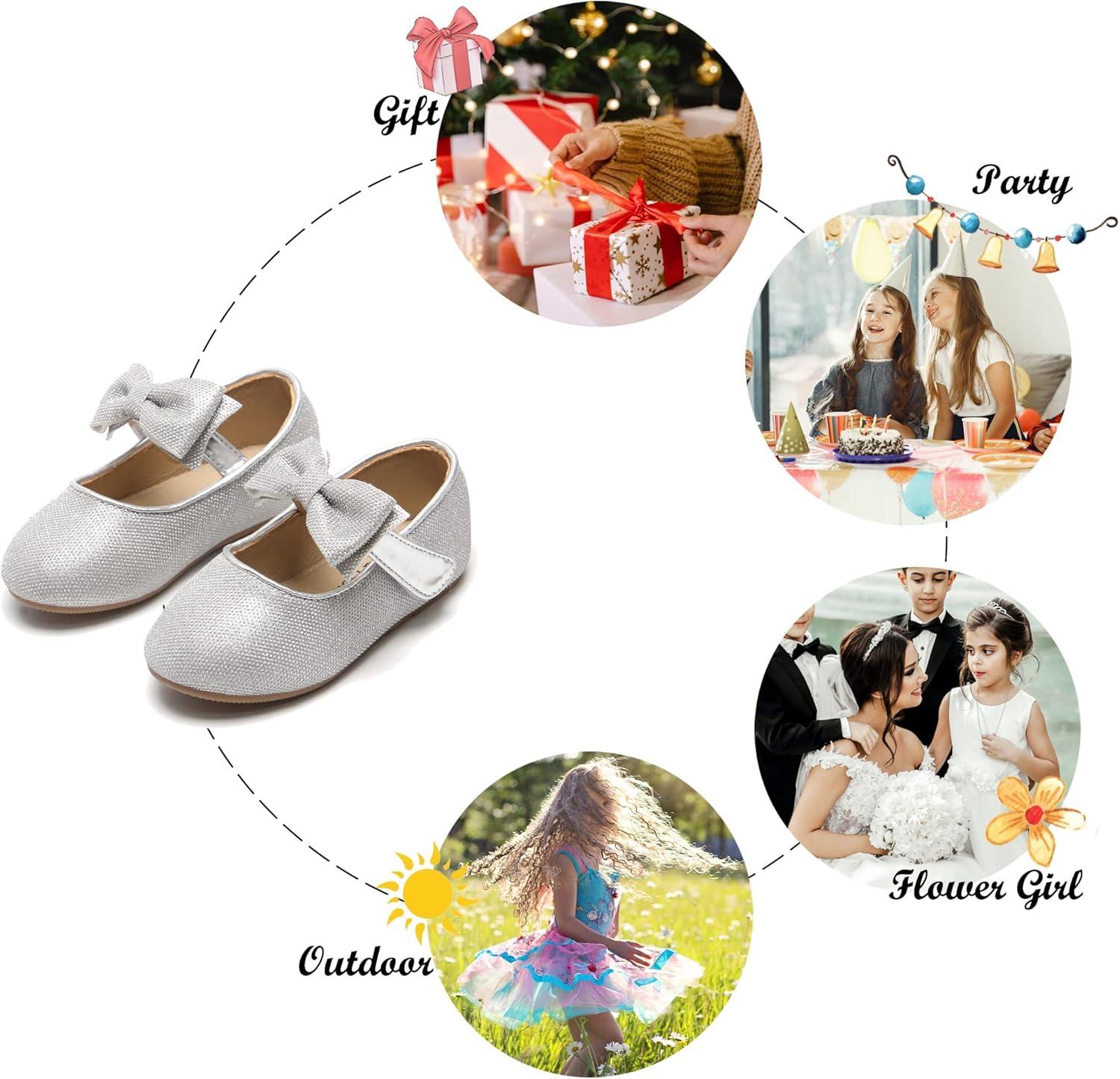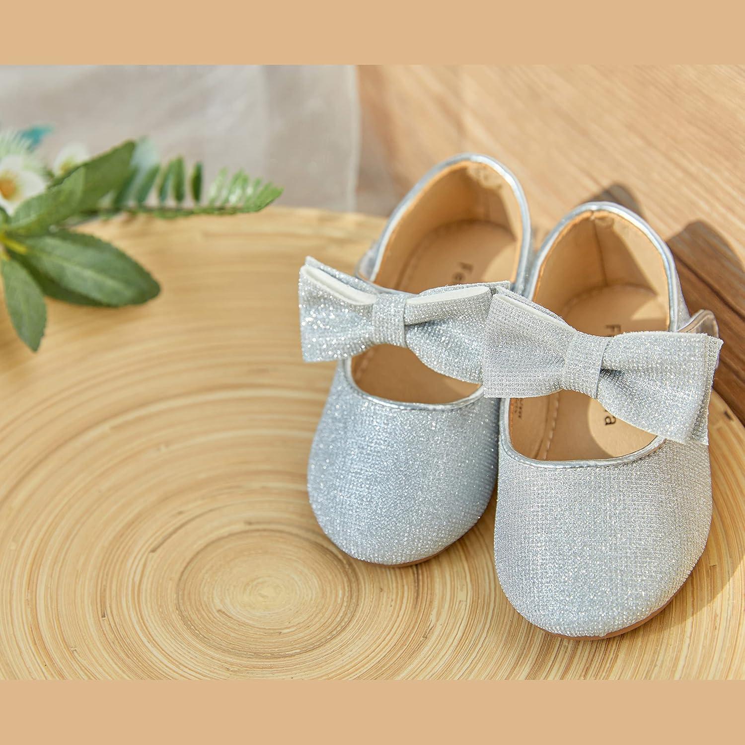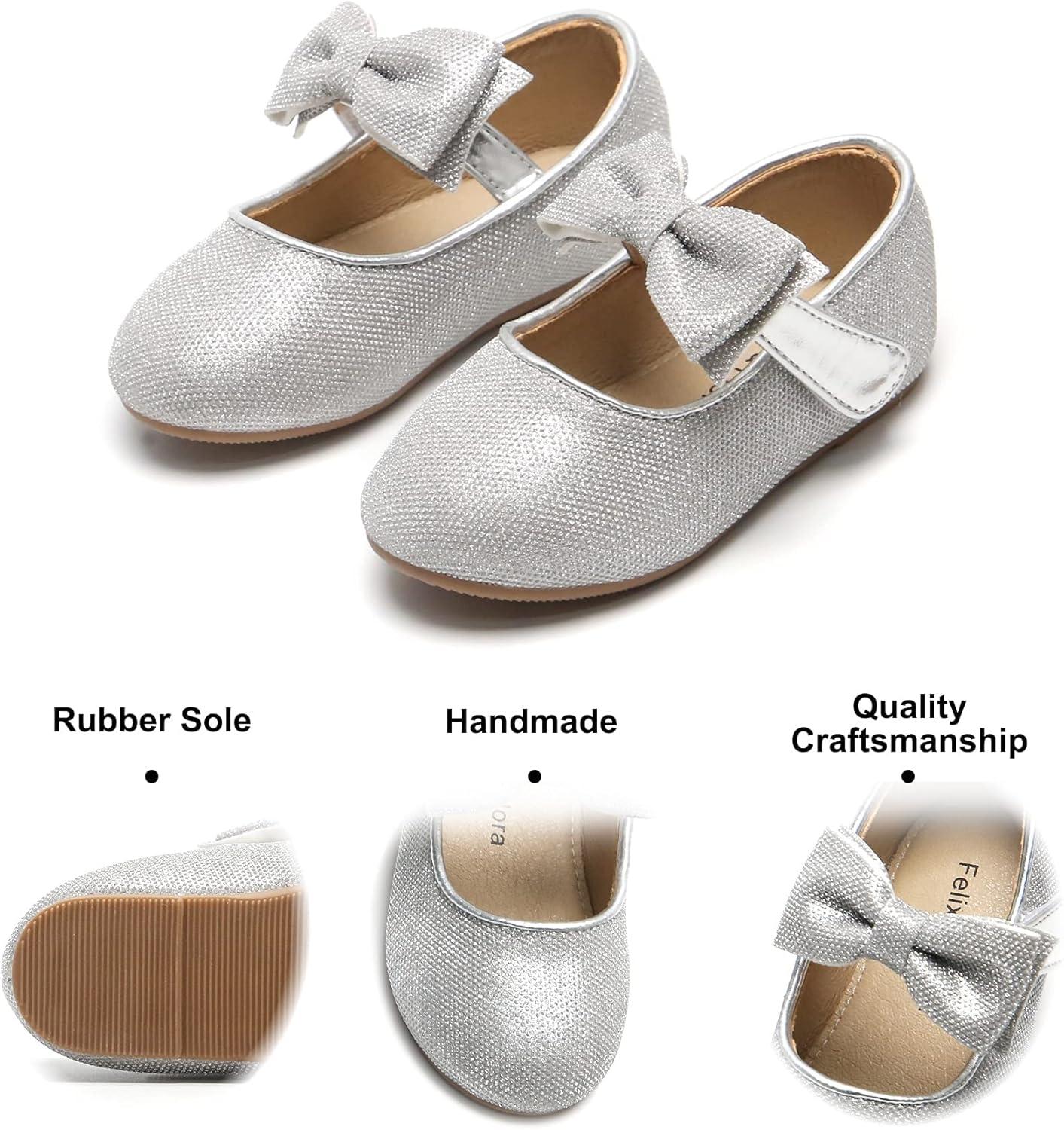 Felix & Flora Toddler Flower Girl Dress Shoes – Girl Ballet Flats Party School Shoes Wedding(B317 Glitter Silver)