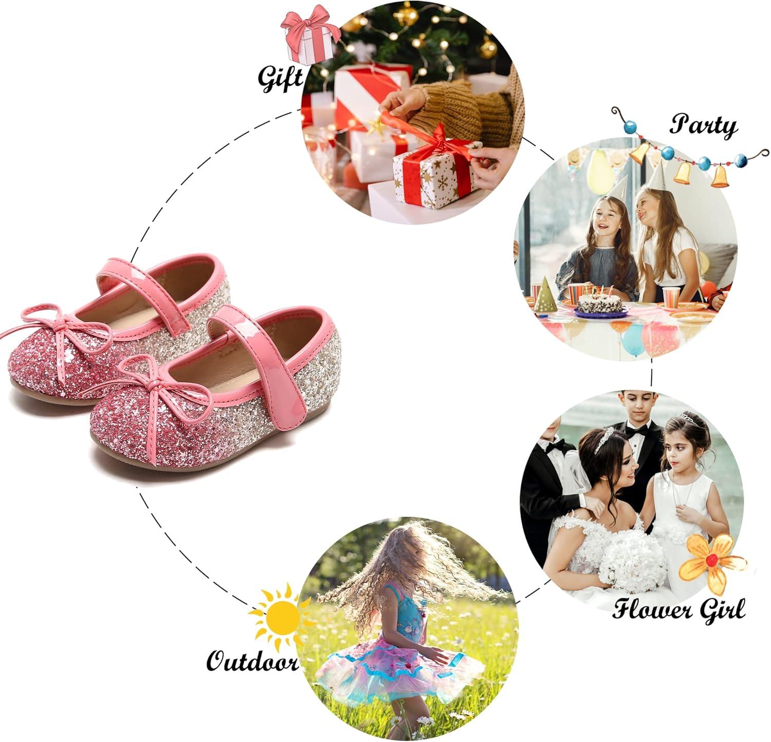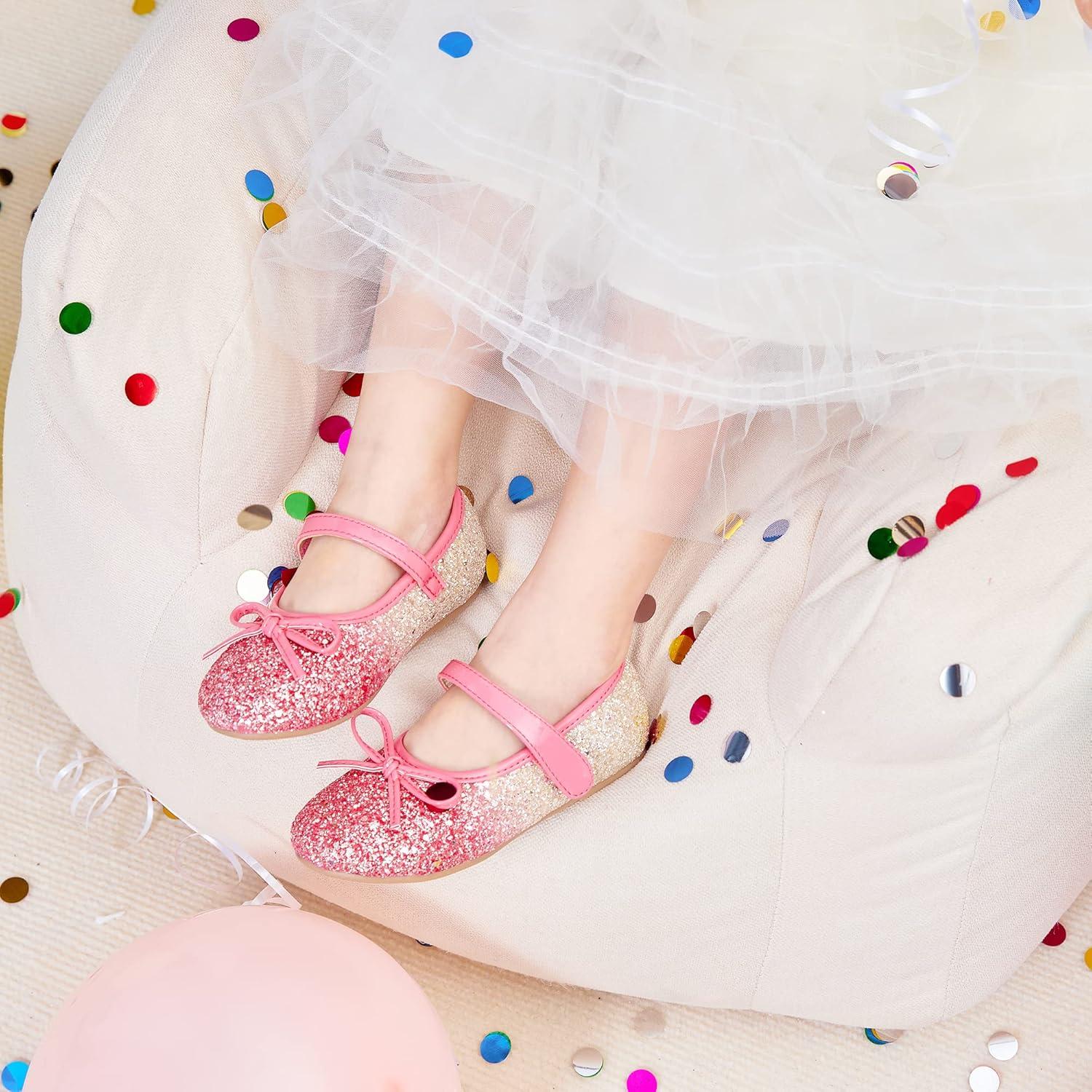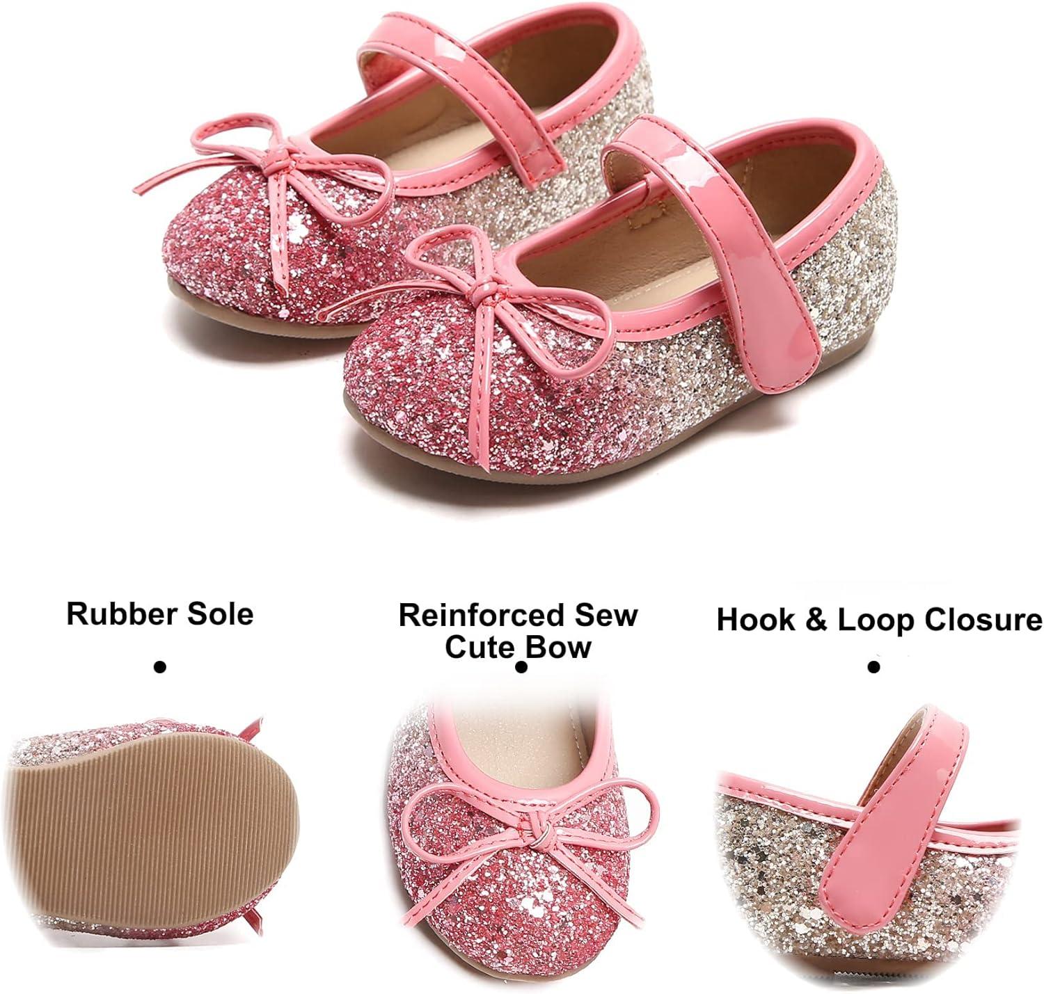 Felix & Flora Toddler Flower Girl Dress Shoes – Girl Ballet Flats Party School Shoes Wedding(B358-pink)