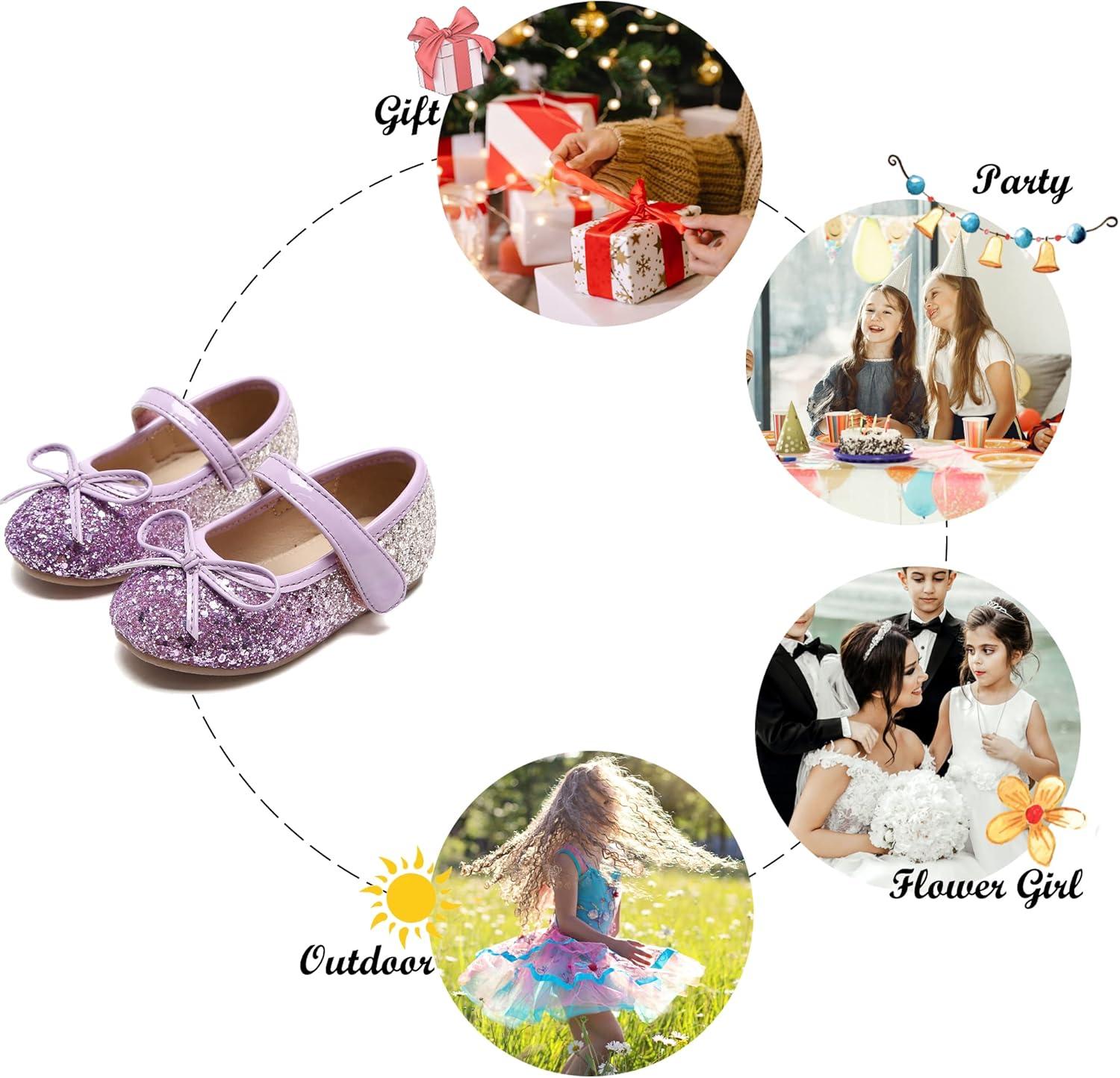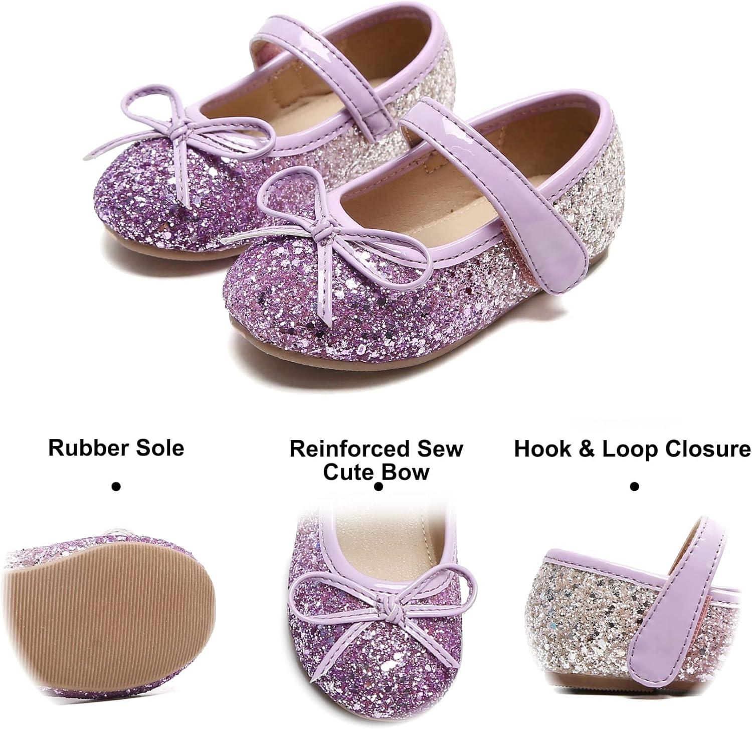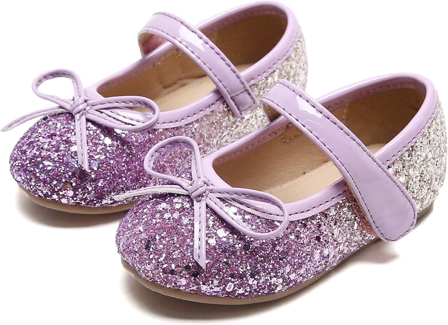 Felix & Flora Toddler Flower Girl Dress Shoes – Girl Ballet Flats Party School Shoes Wedding(B358-purple)