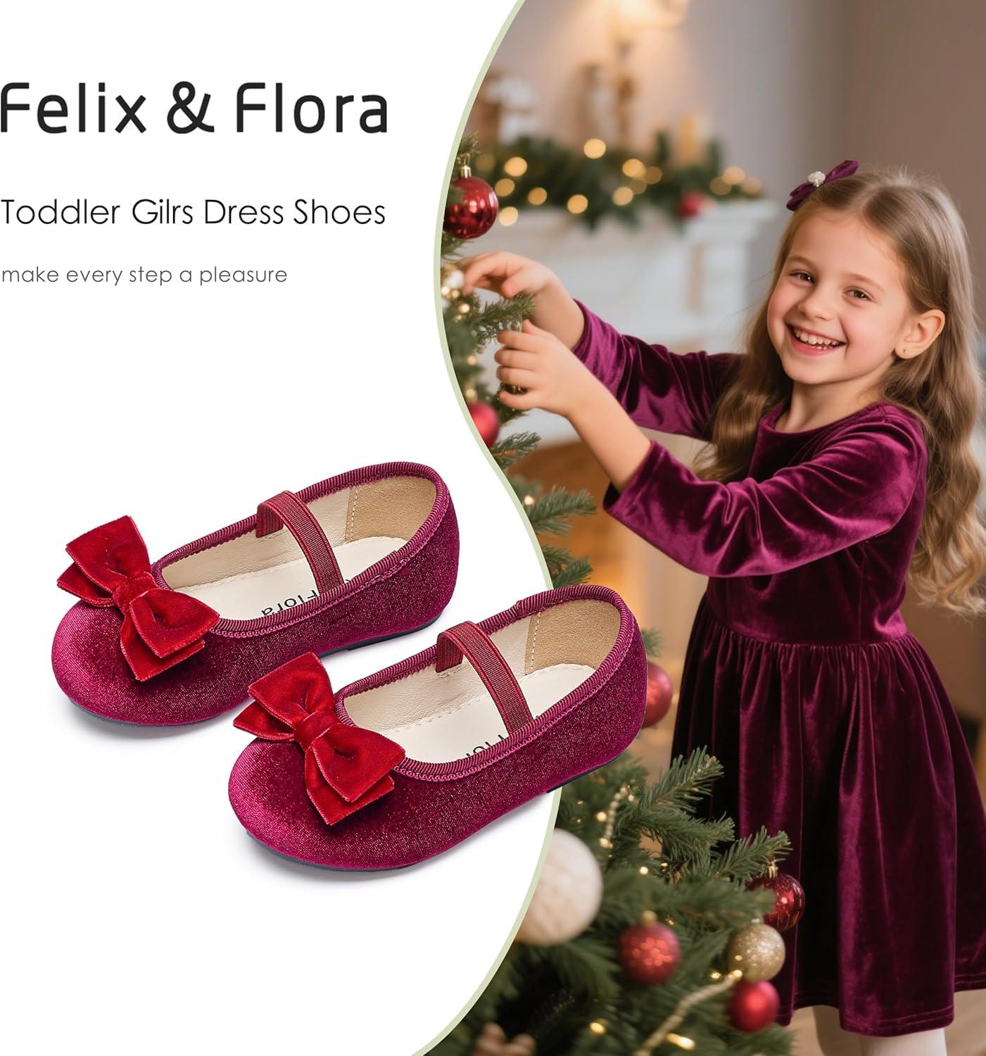 Felix & Flora Toddler Flower Girl Dress Shoes – Girl Ballet Flats Party School Shoes Wedding(B803-purple)