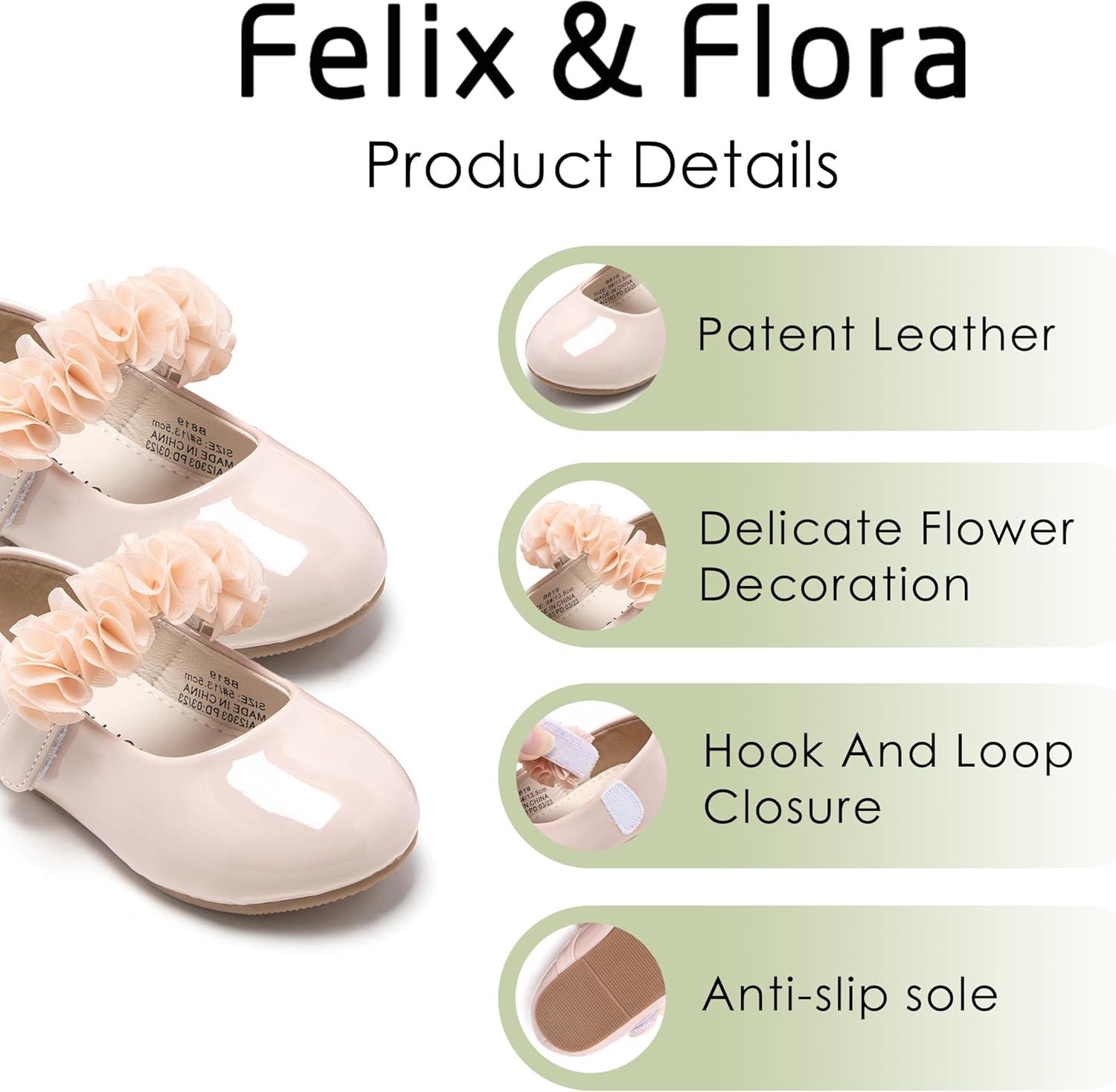 Felix & Flora Toddler Flower Girl Dress Shoes – Girl Ballet Flats Party School Shoes Wedding(B819-nude)