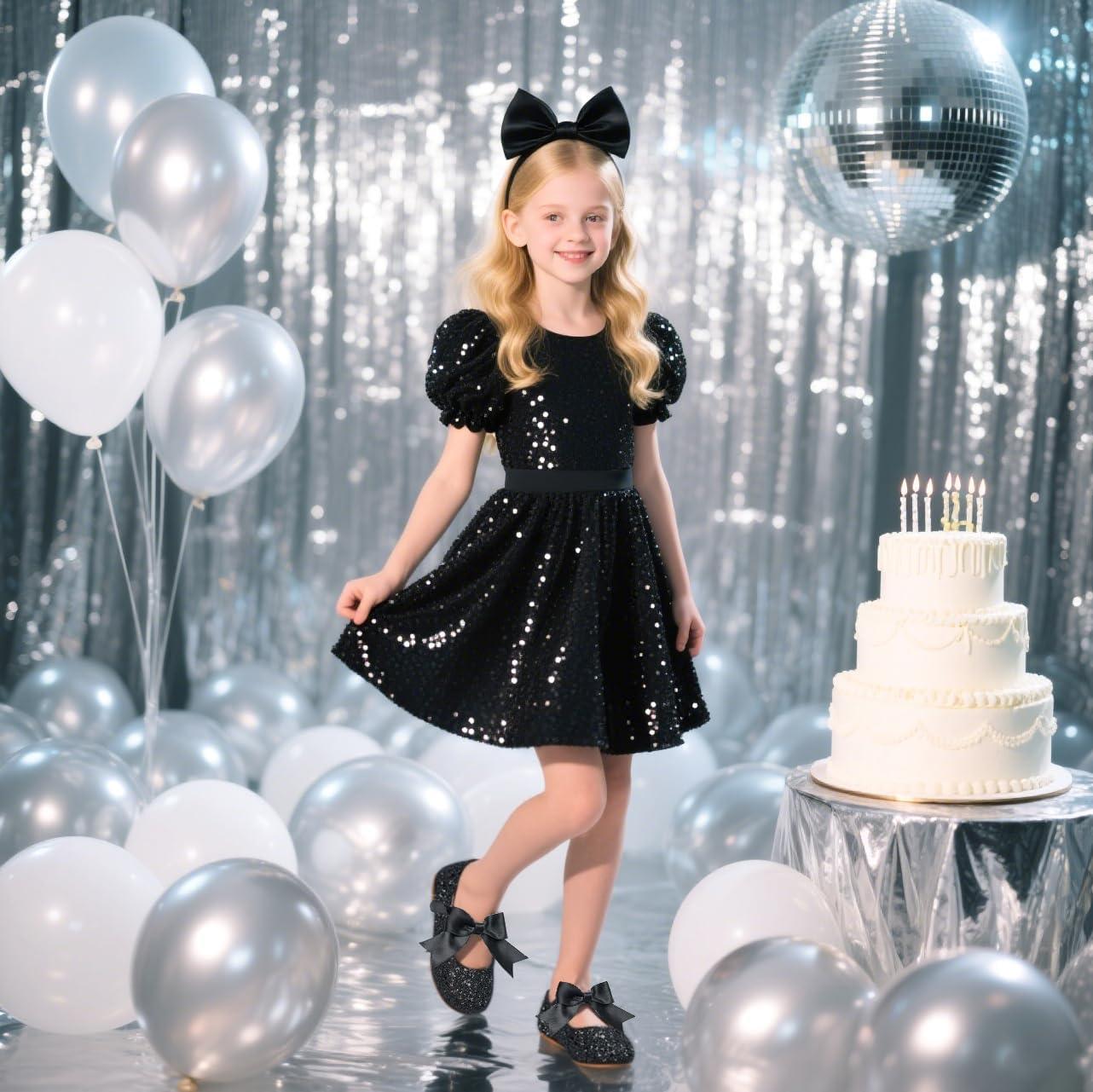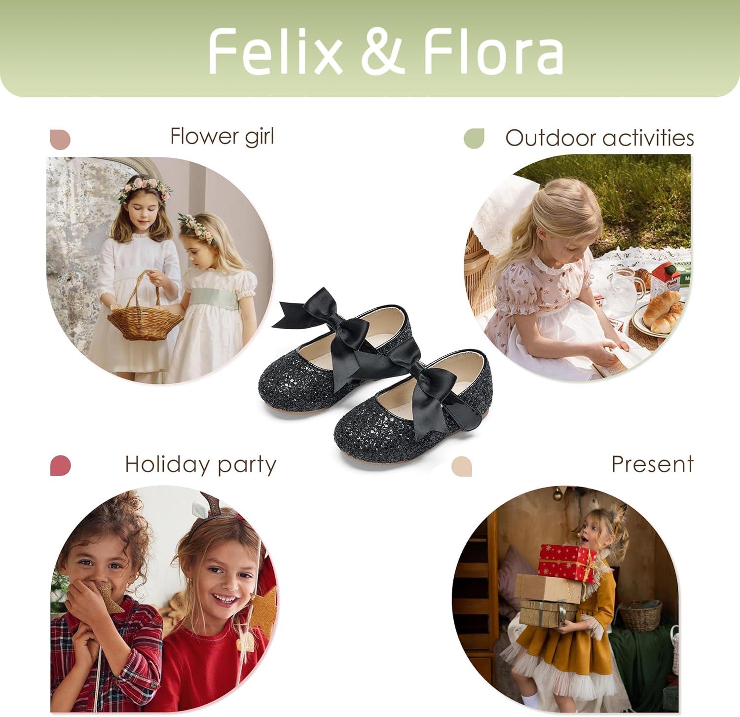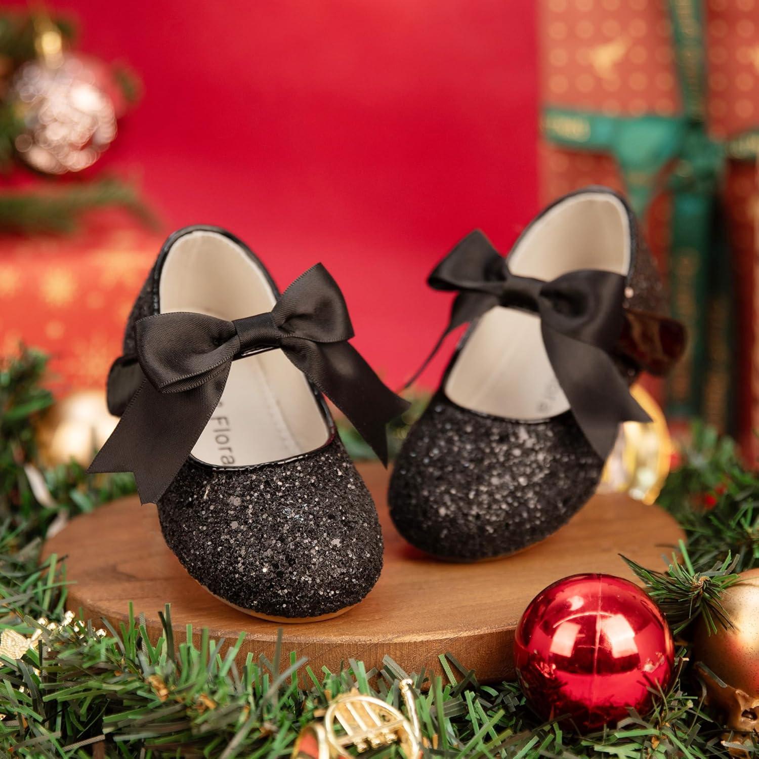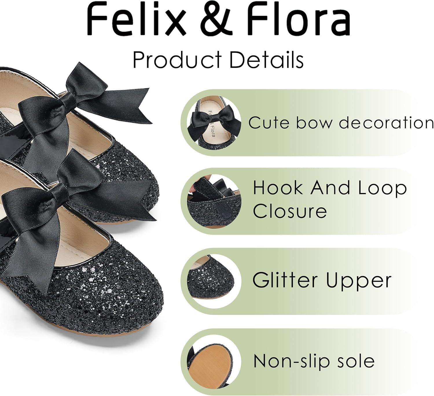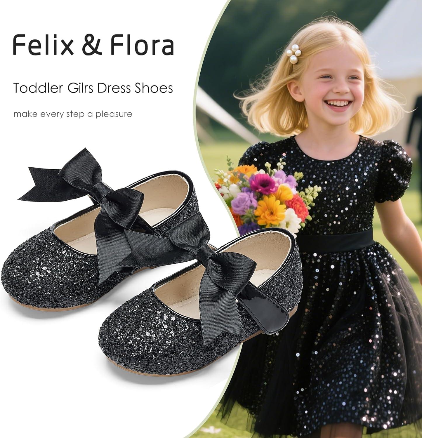 Felix & Flora Toddler Flower Girl Dress Shoes – Girl Ballet Flats Party School Shoes Wedding(B821-glitter Black)