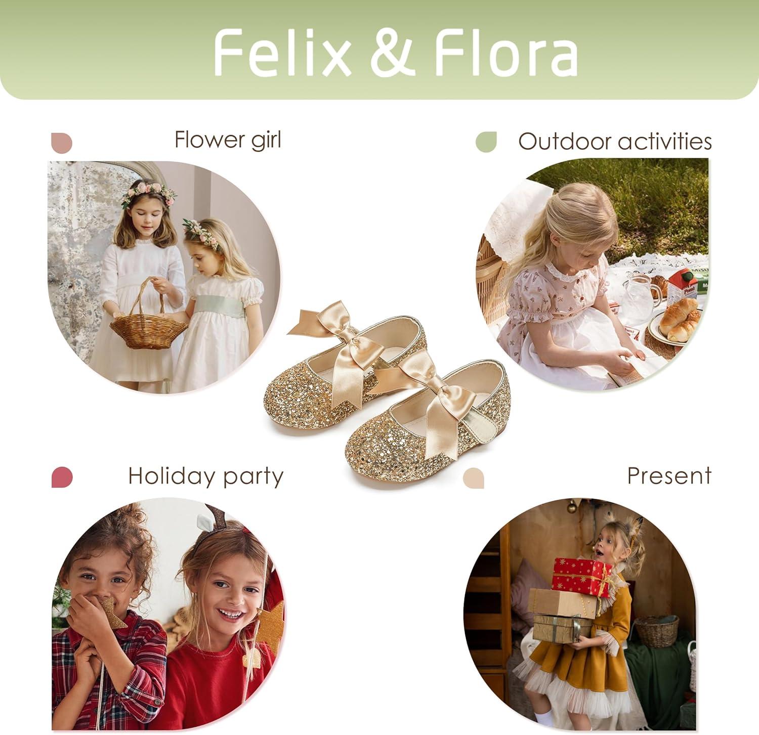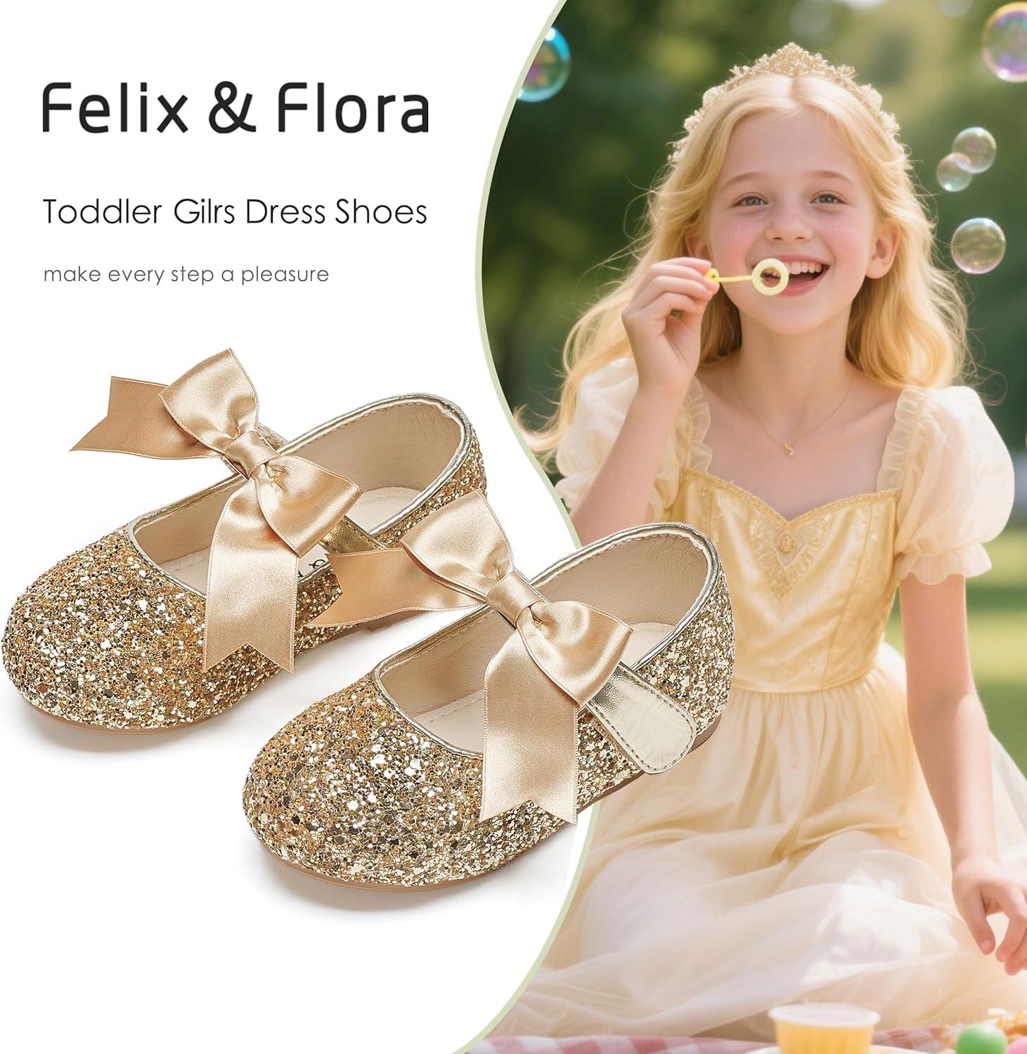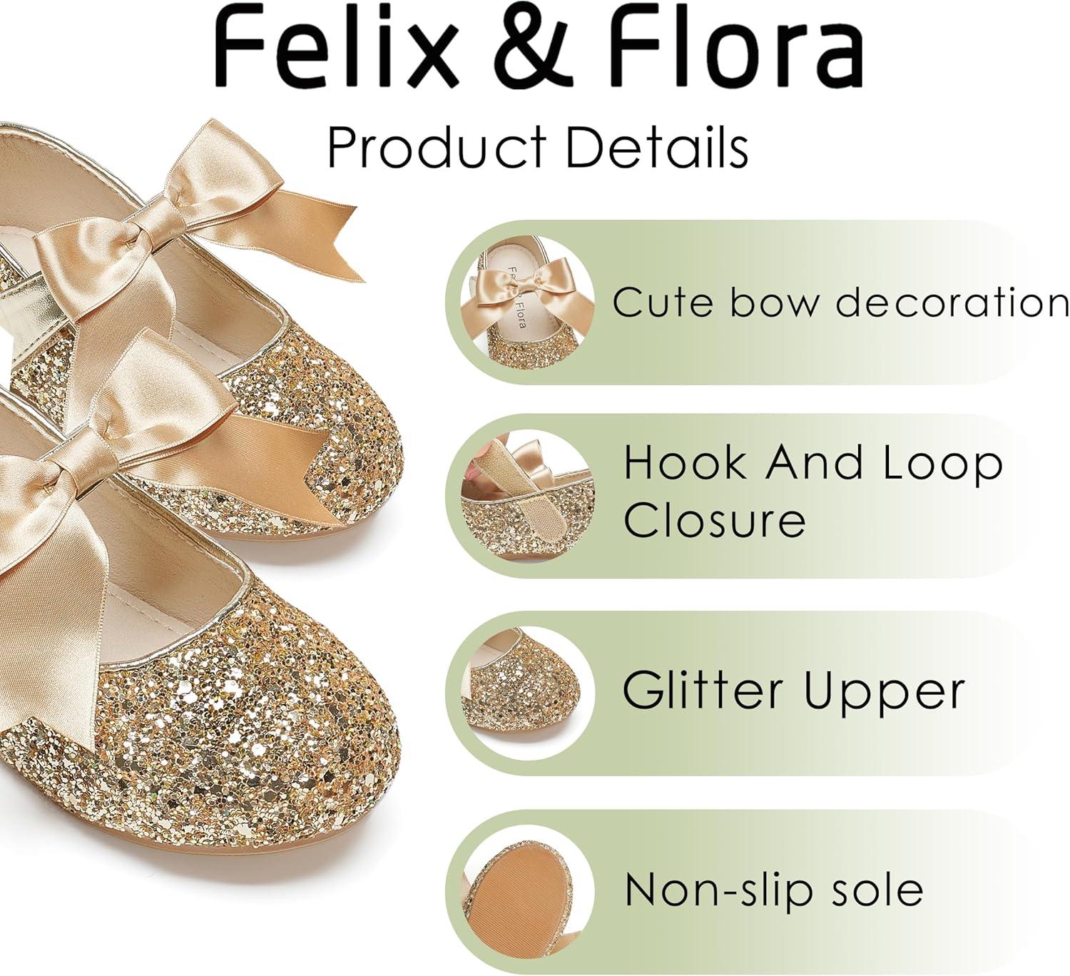 Felix & Flora Toddler Flower Girl Dress Shoes – Girl Ballet Flats Party School Shoes Wedding(B821-glitter Gold)