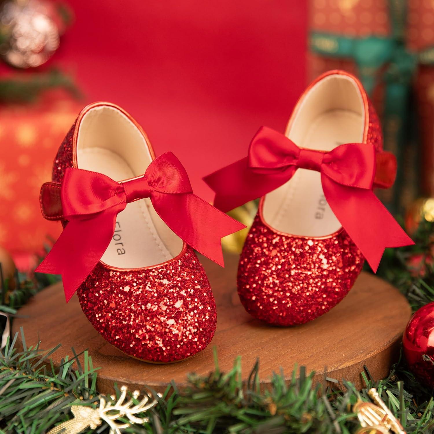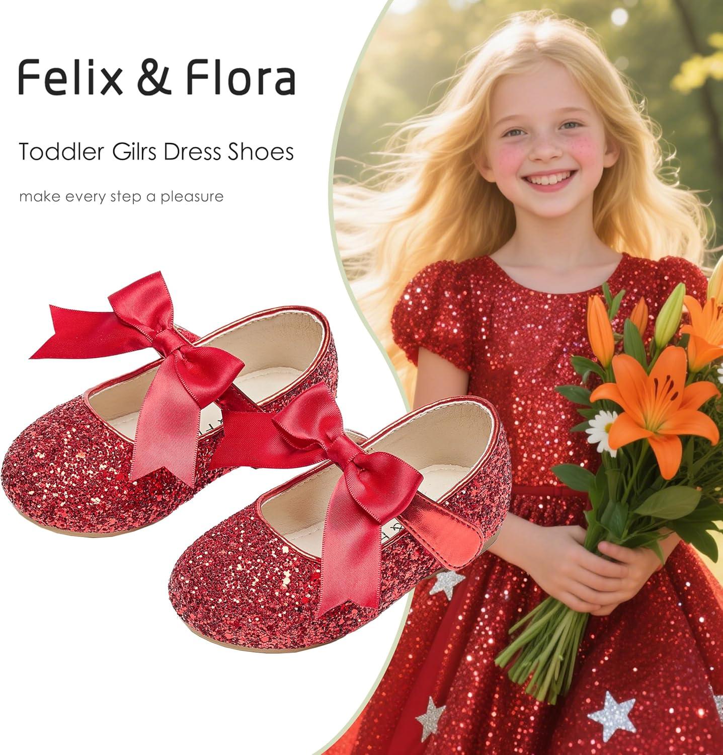 Felix & Flora Toddler Flower Girl Dress Shoes – Girl Ballet Flats Party School Shoes Wedding(B821-glitter Red)