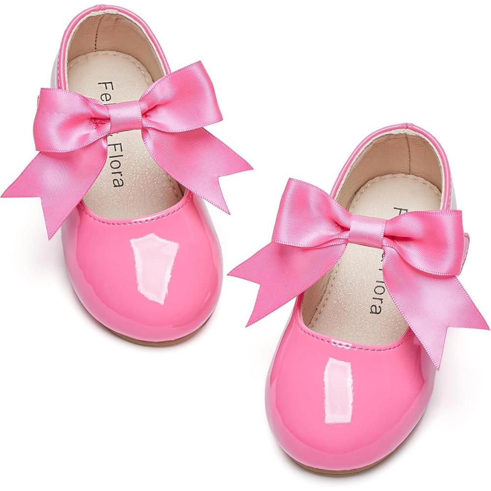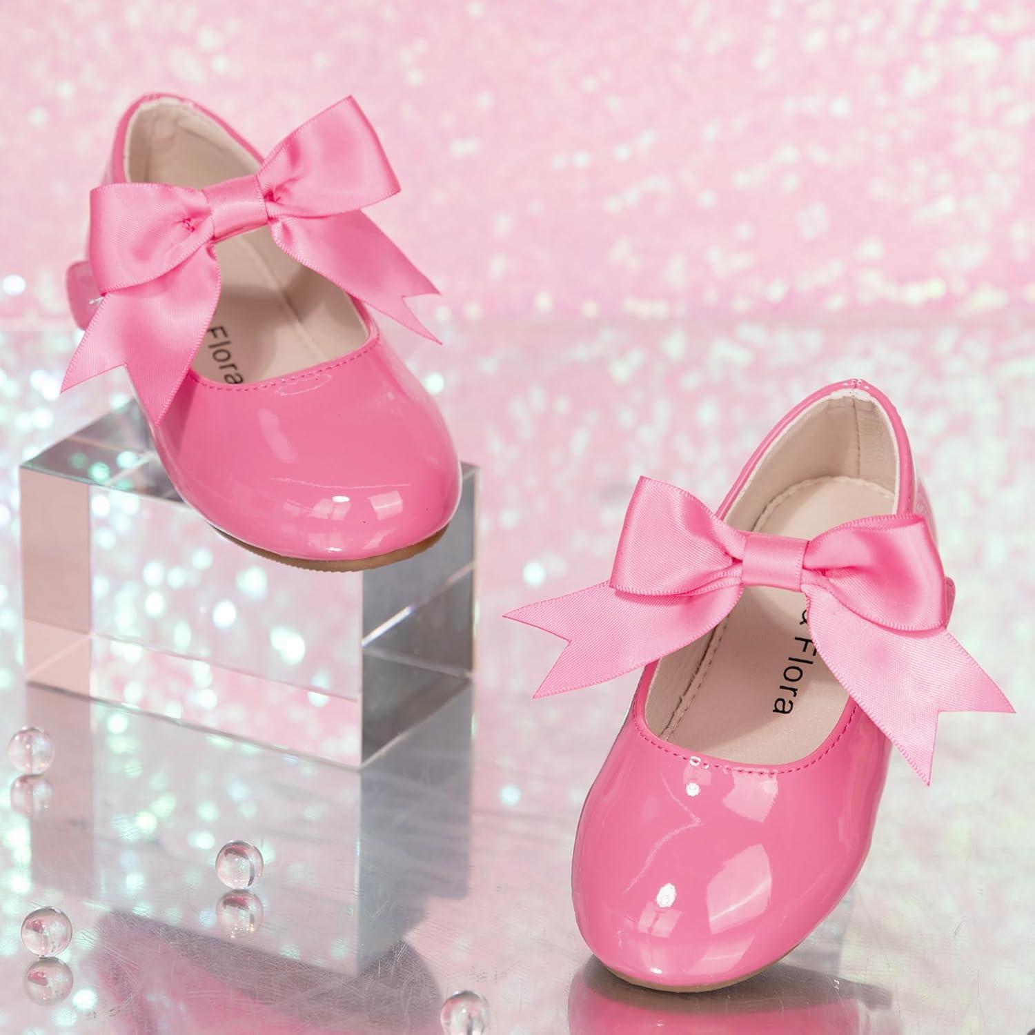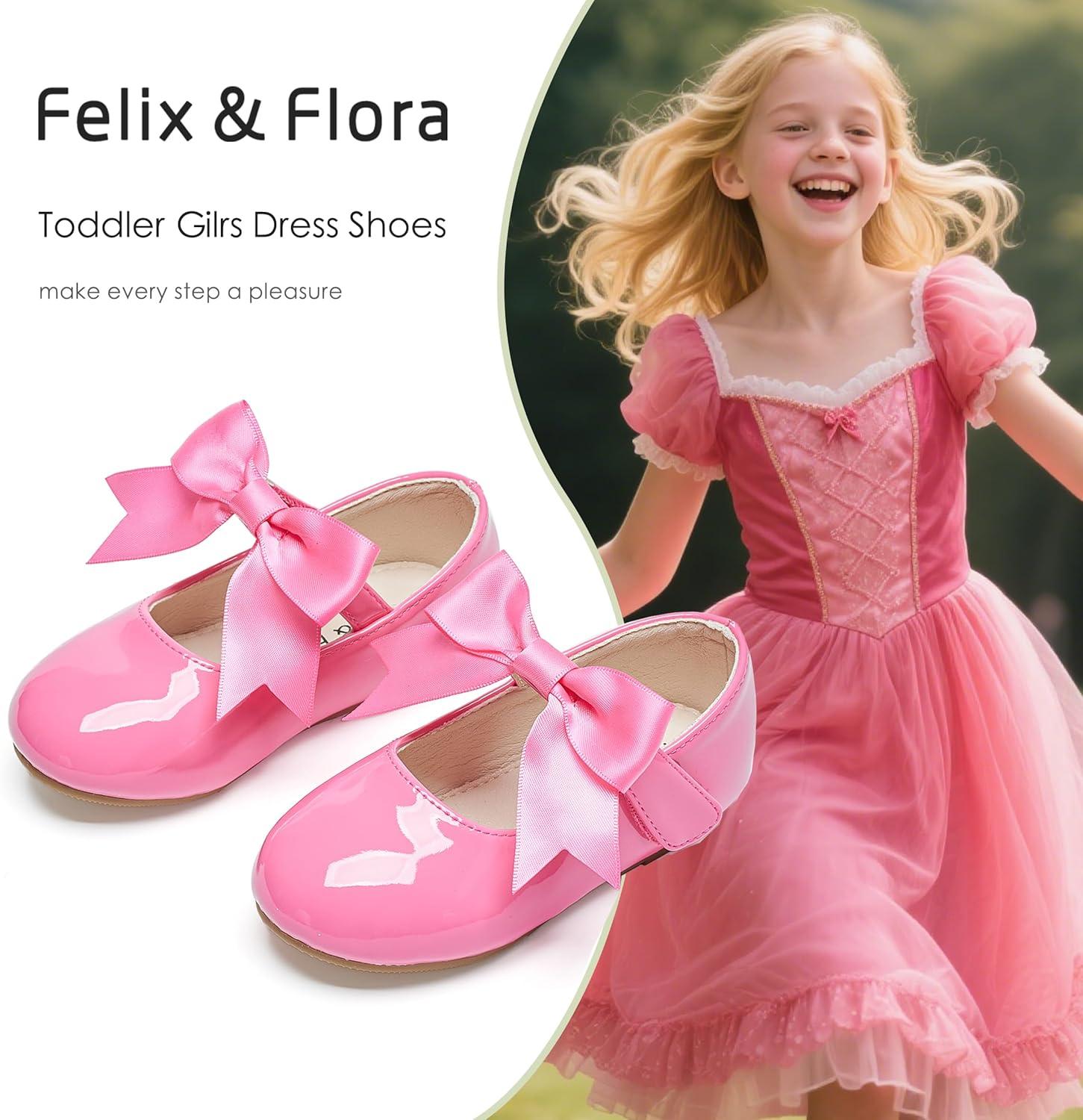 Felix & Flora Toddler Flower Girl Dress Shoes – Girl Ballet Flats Party School Shoes Wedding(B821-hot Pink)