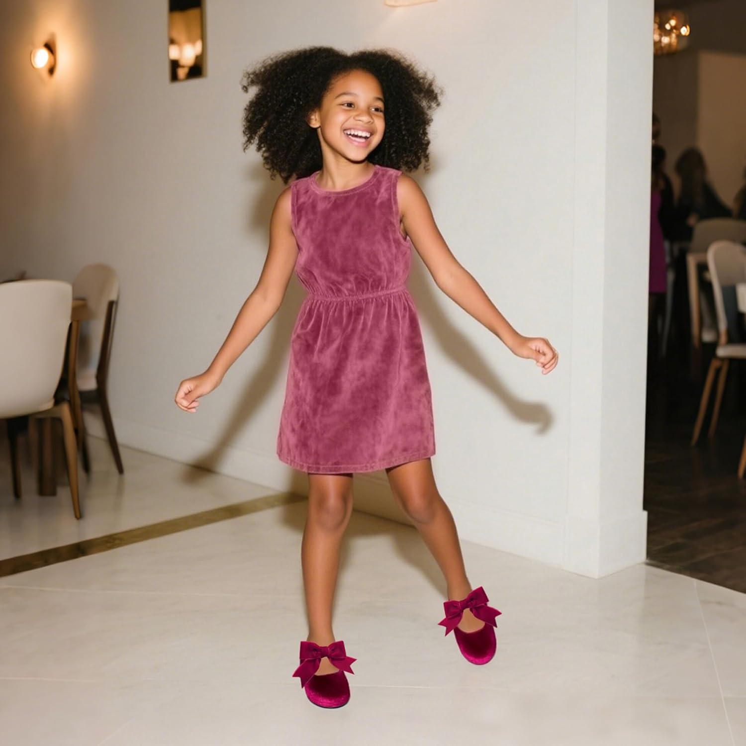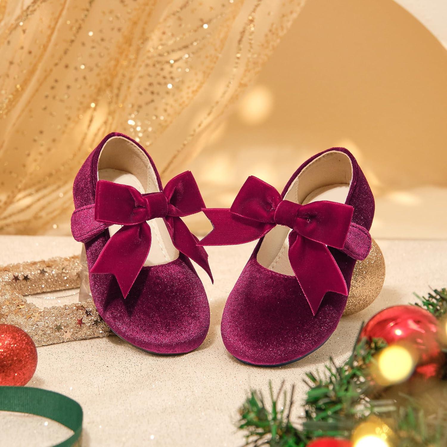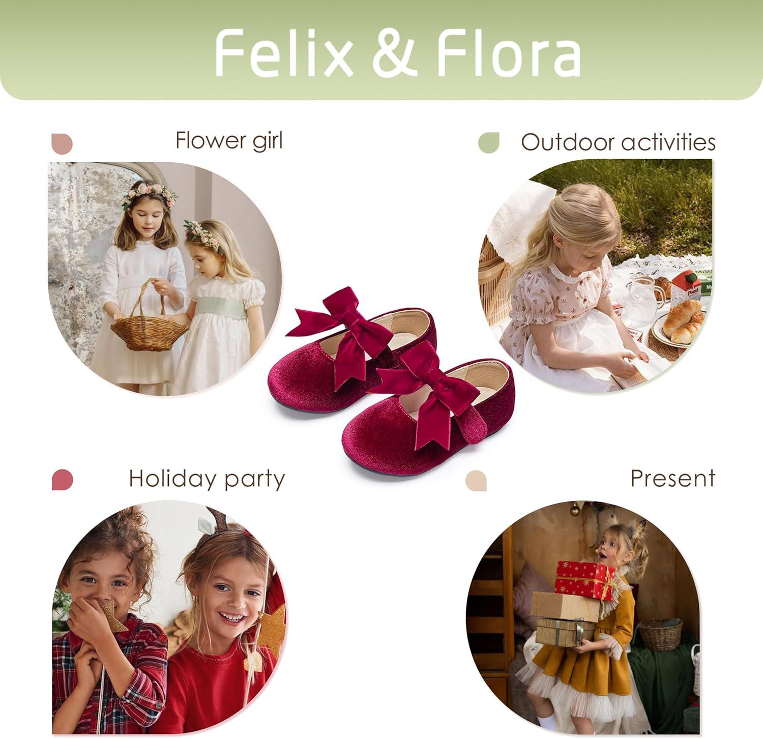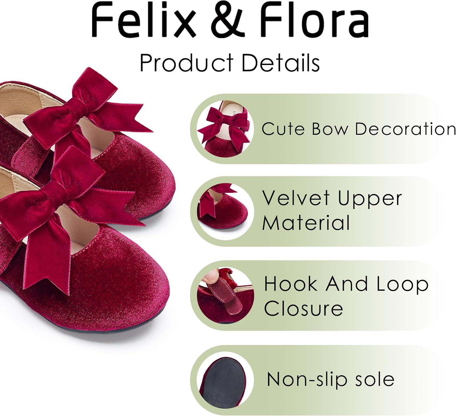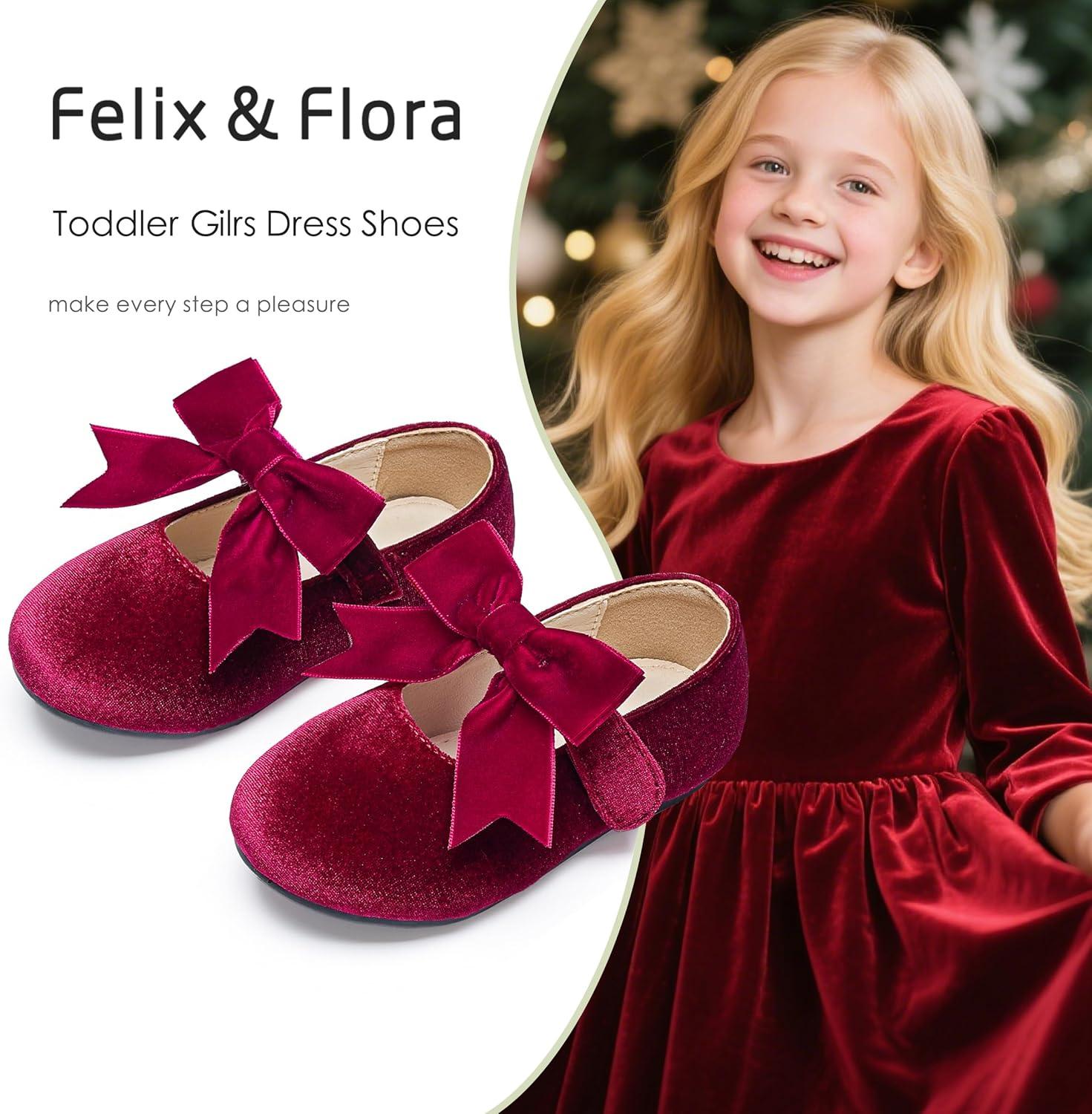 Felix & Flora Toddler Flower Girl Dress Shoes – Girl Ballet Flats Party School Shoes Wedding(B821-velvet Burgundy)