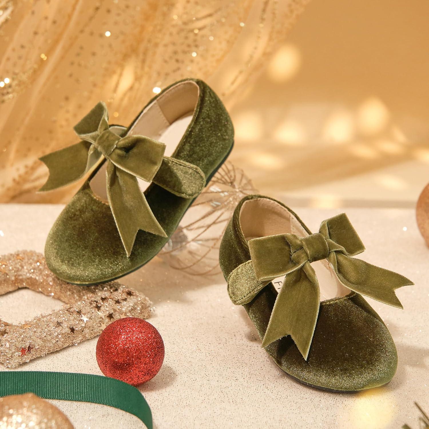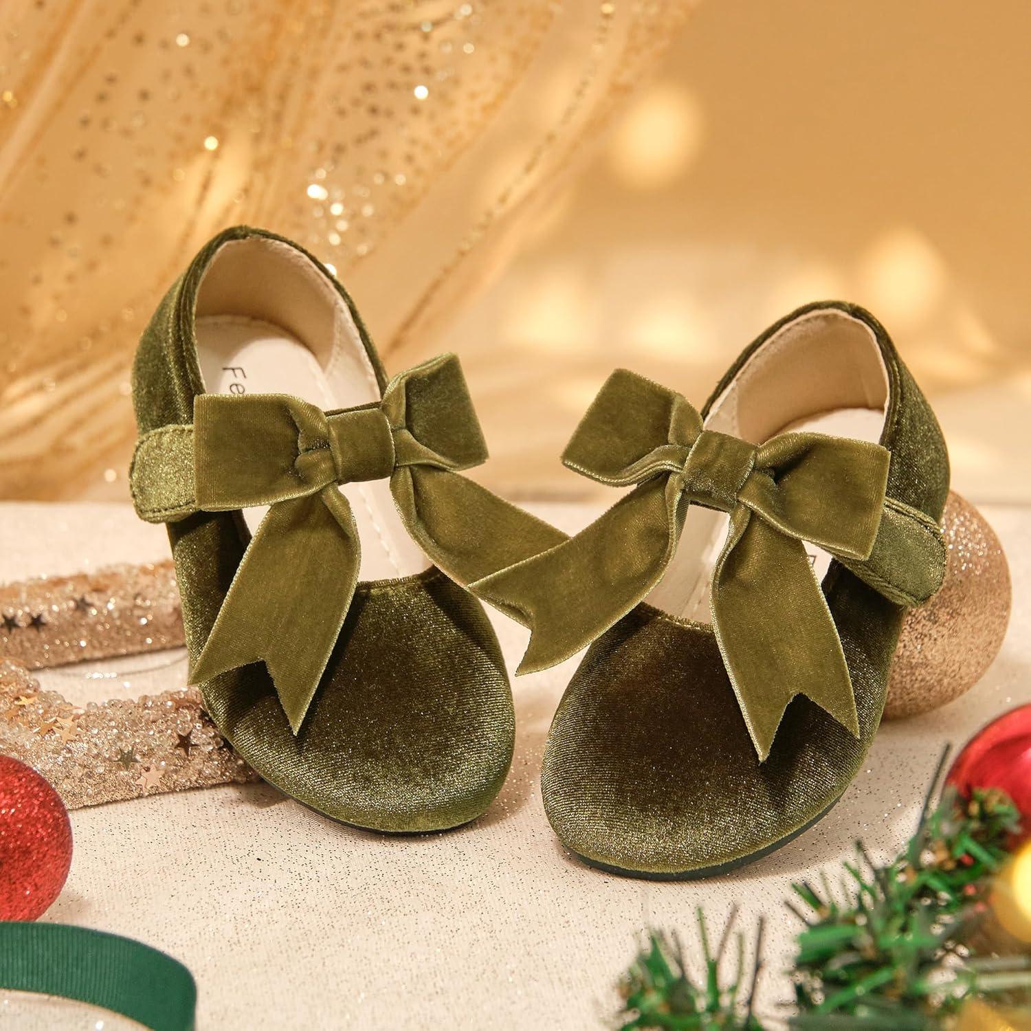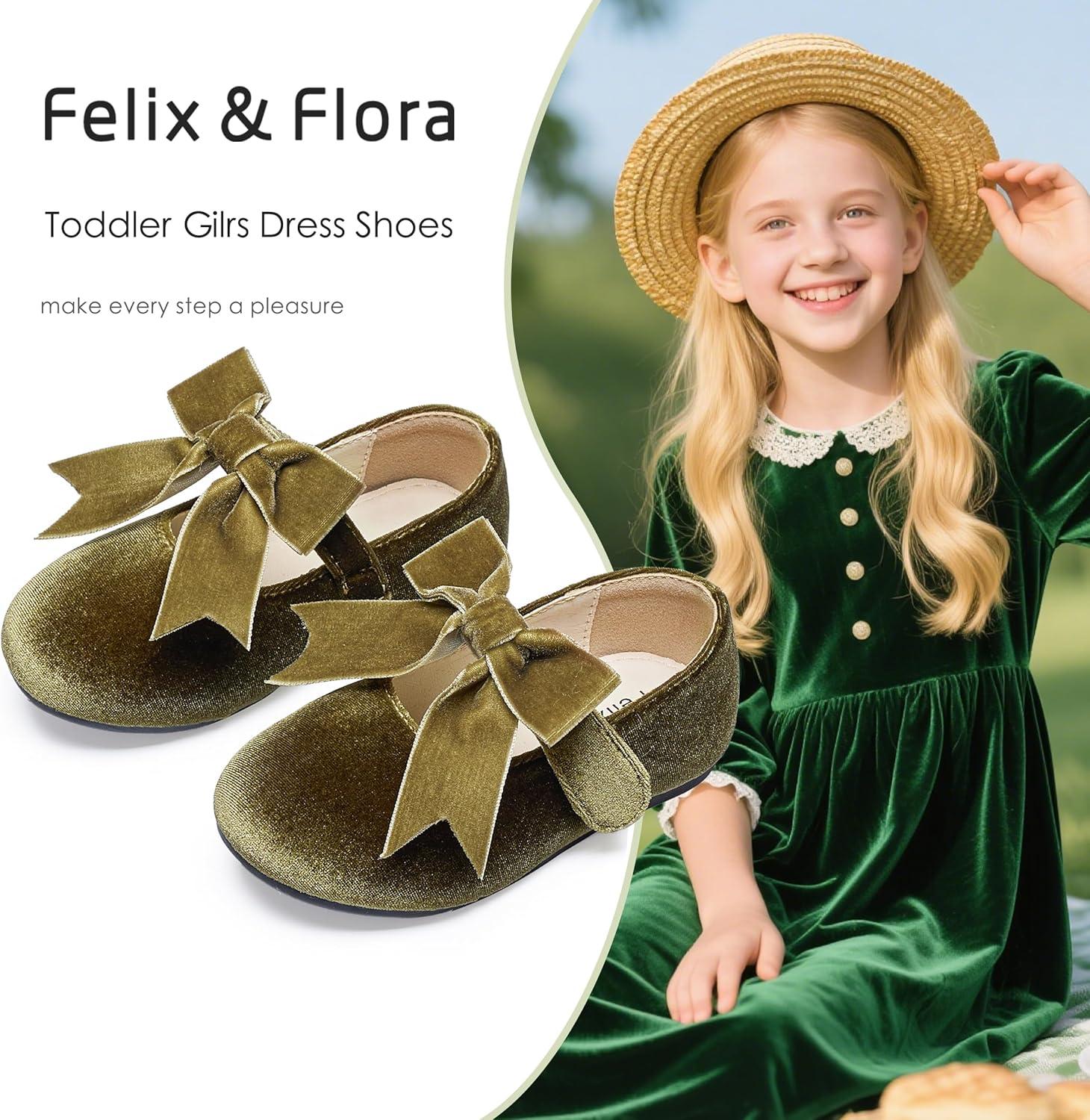 Felix & Flora Toddler Flower Girl Dress Shoes – Girl Ballet Flats Party School Shoes Wedding(B821-velvet Green)