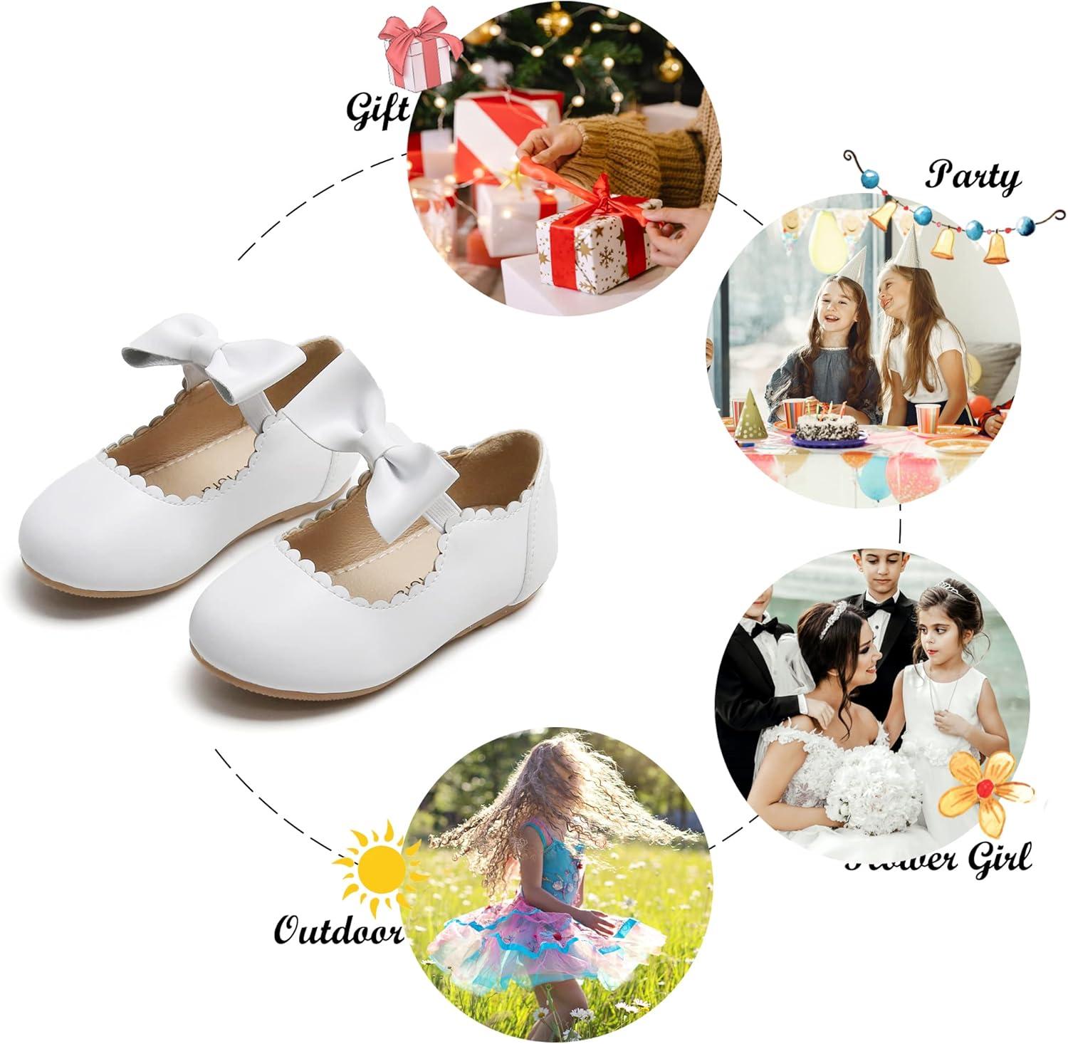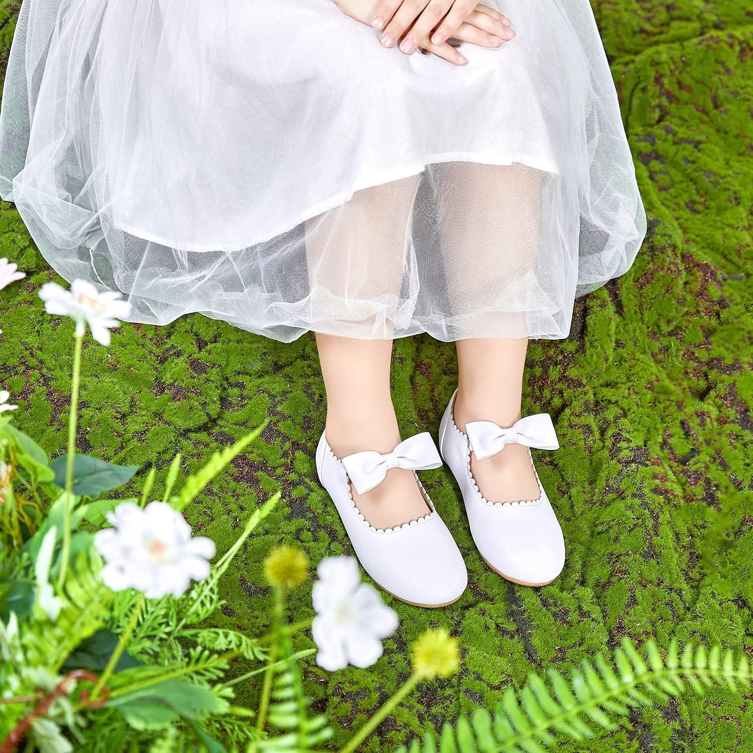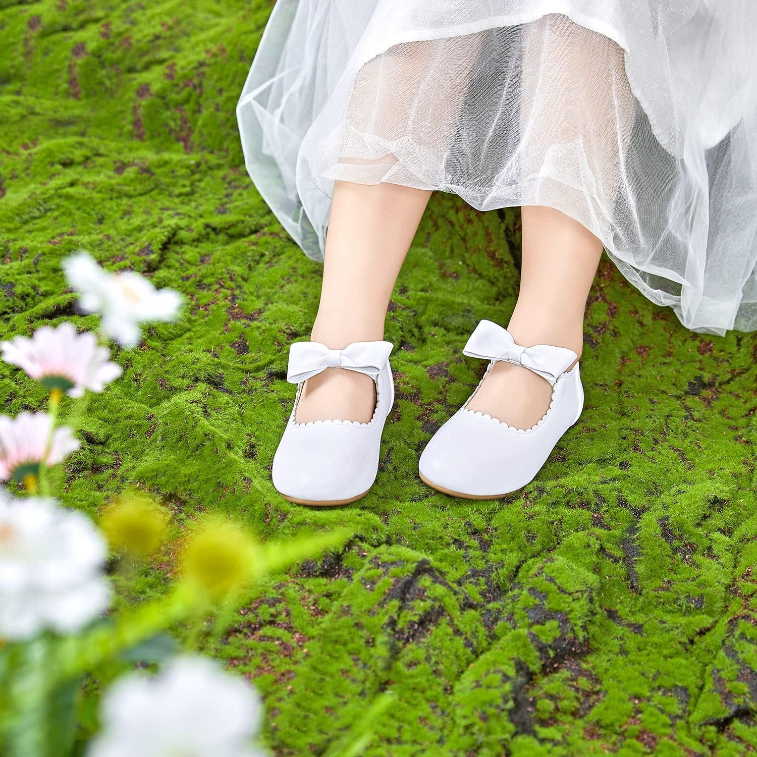 Felix & Flora Toddler Flower Girl Dress Shoes – Girl Ballet Flats Party School Shoes Wedding(B838-white)