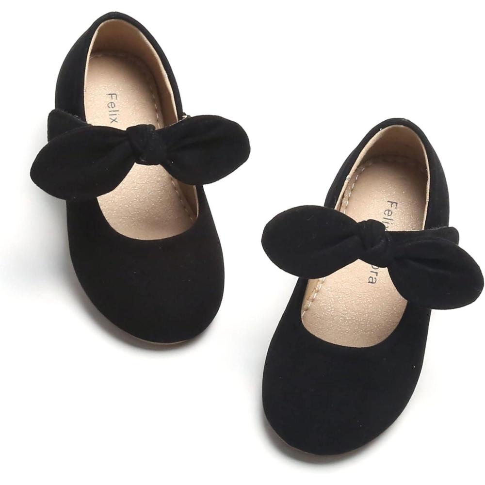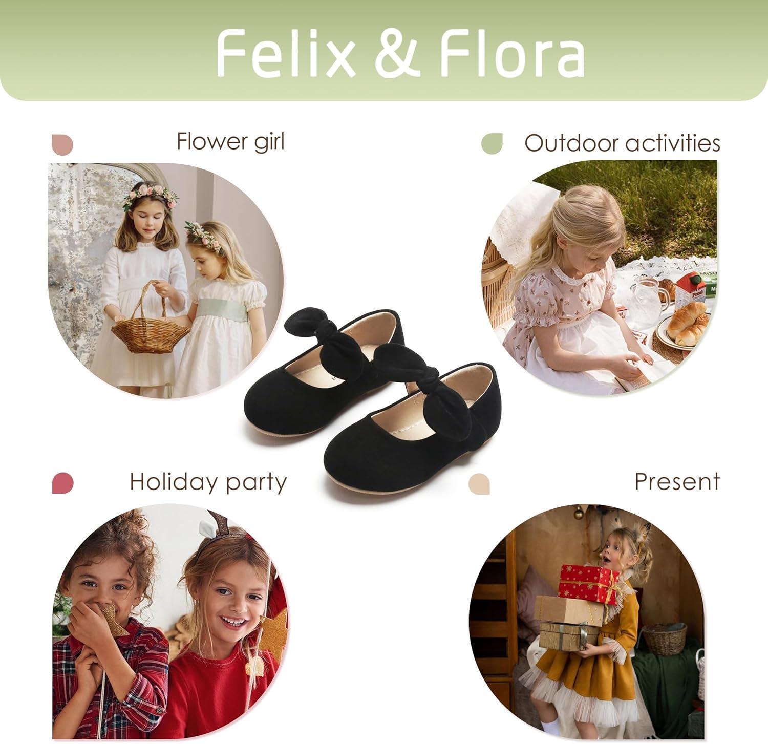 Felix & Flora Toddler Flower Girl Dress Shoes – Girl Ballet Flats Party School Shoes Wedding(B839-black)