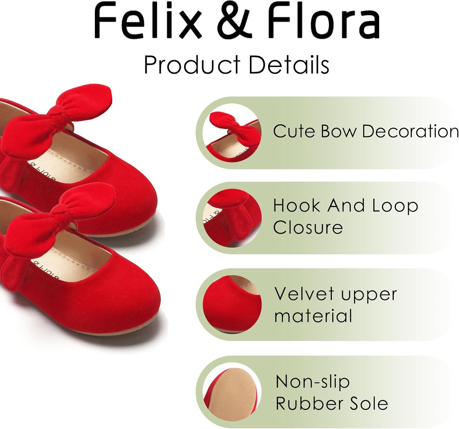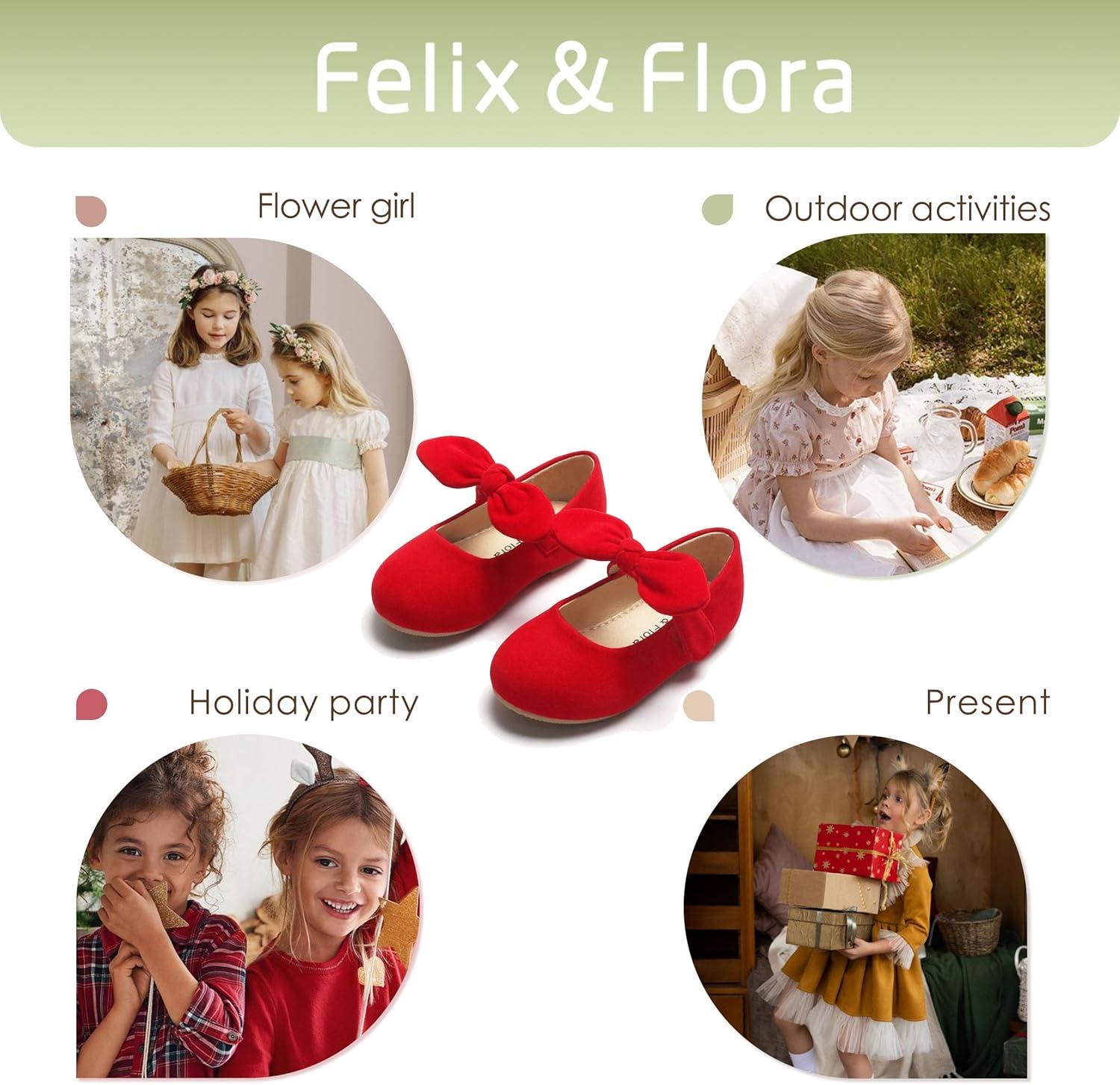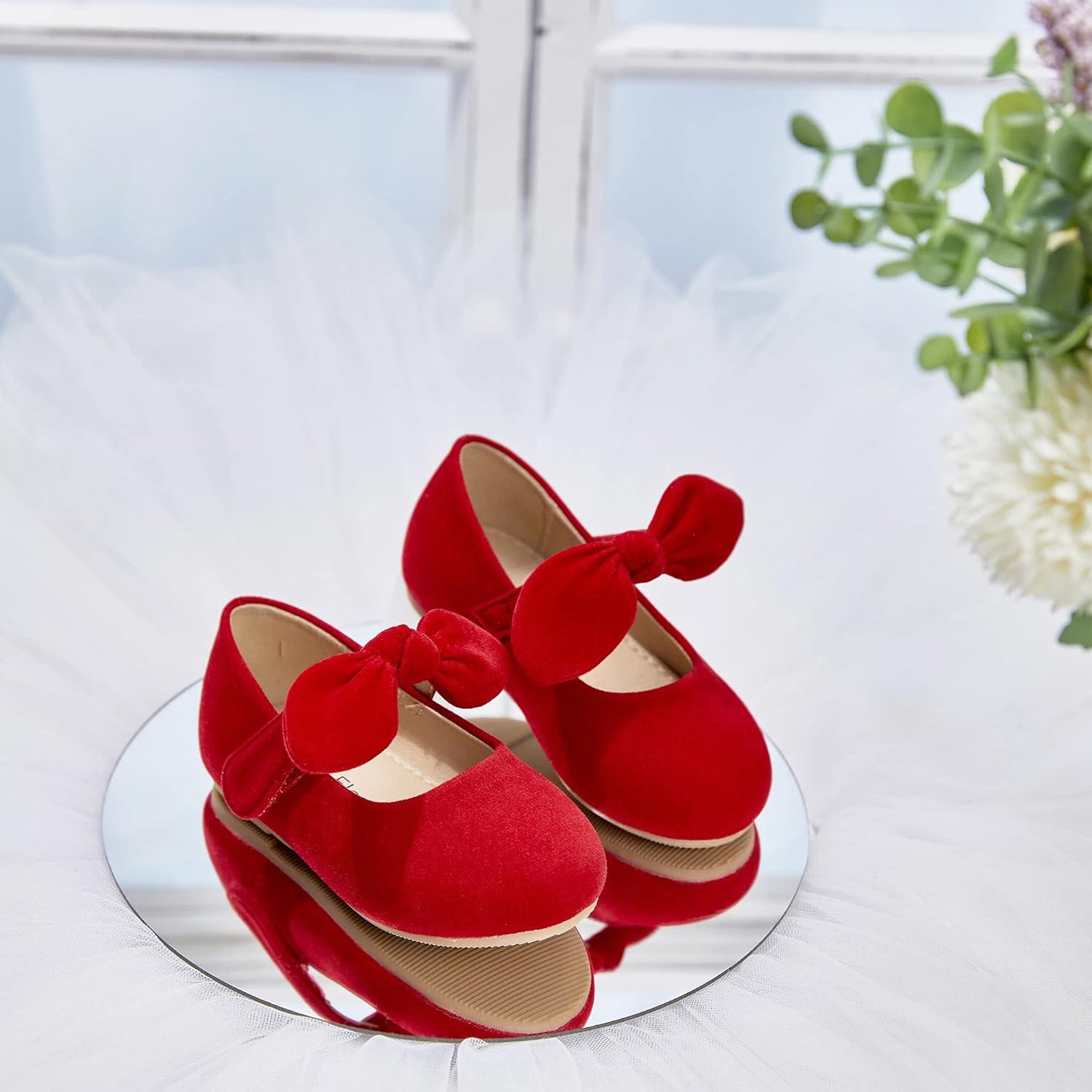 Felix & Flora Toddler Flower Girl Dress Shoes – Girl Ballet Flats Party School Shoes Wedding(B839-red)