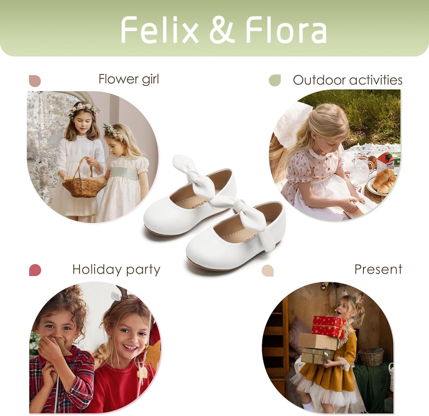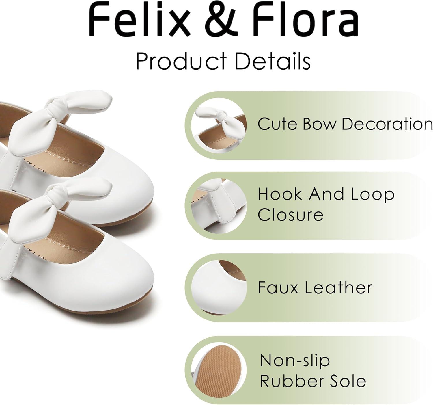 Felix & Flora Toddler Flower Girl Dress Shoes – Girl Ballet Flats Party School Shoes Wedding(B839-white)
