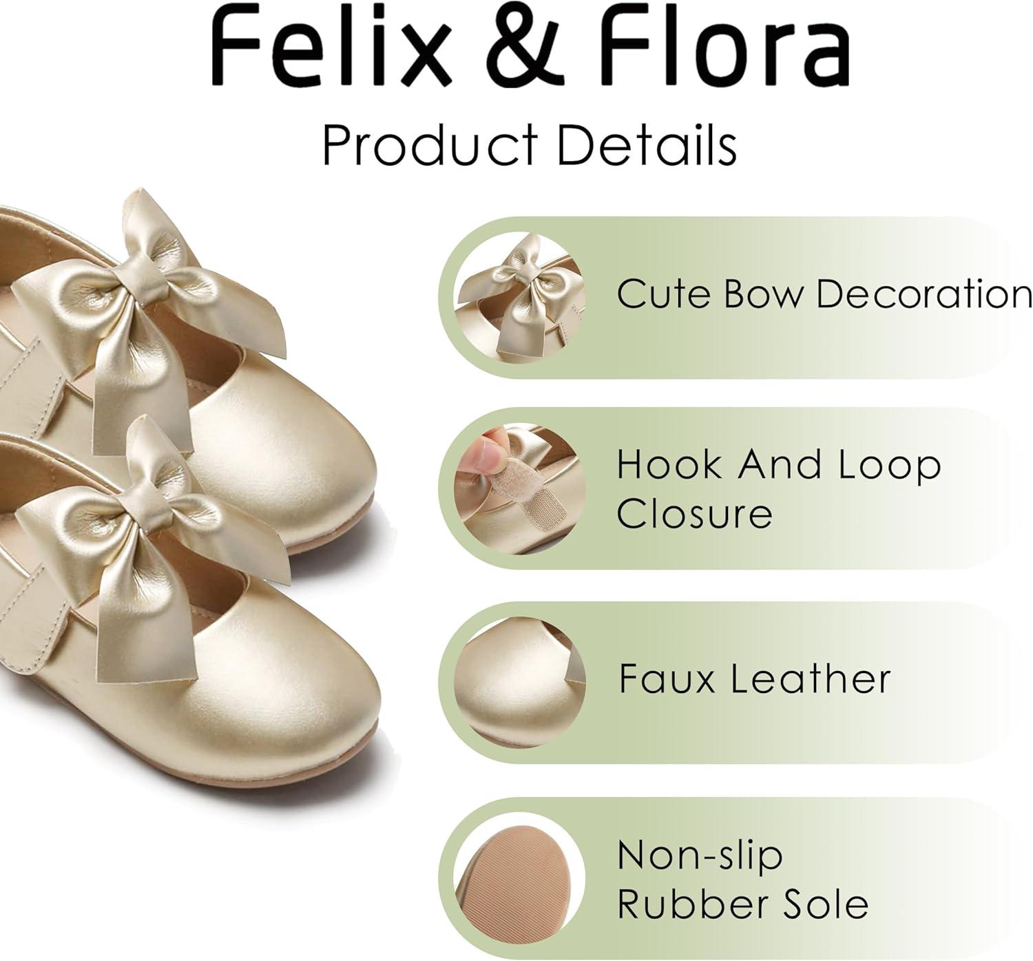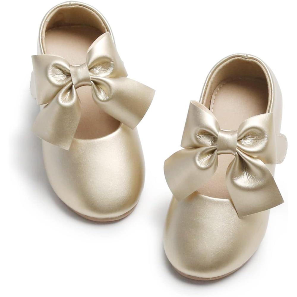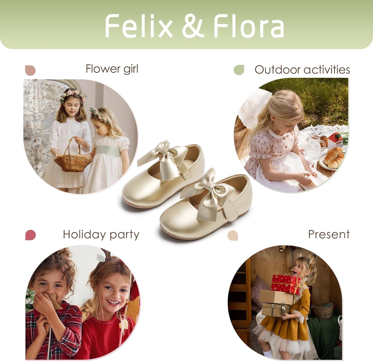 Felix & Flora Toddler Flower Girl Dress Shoes – Girl Ballet Flats Party School Shoes Wedding(B845-gold)