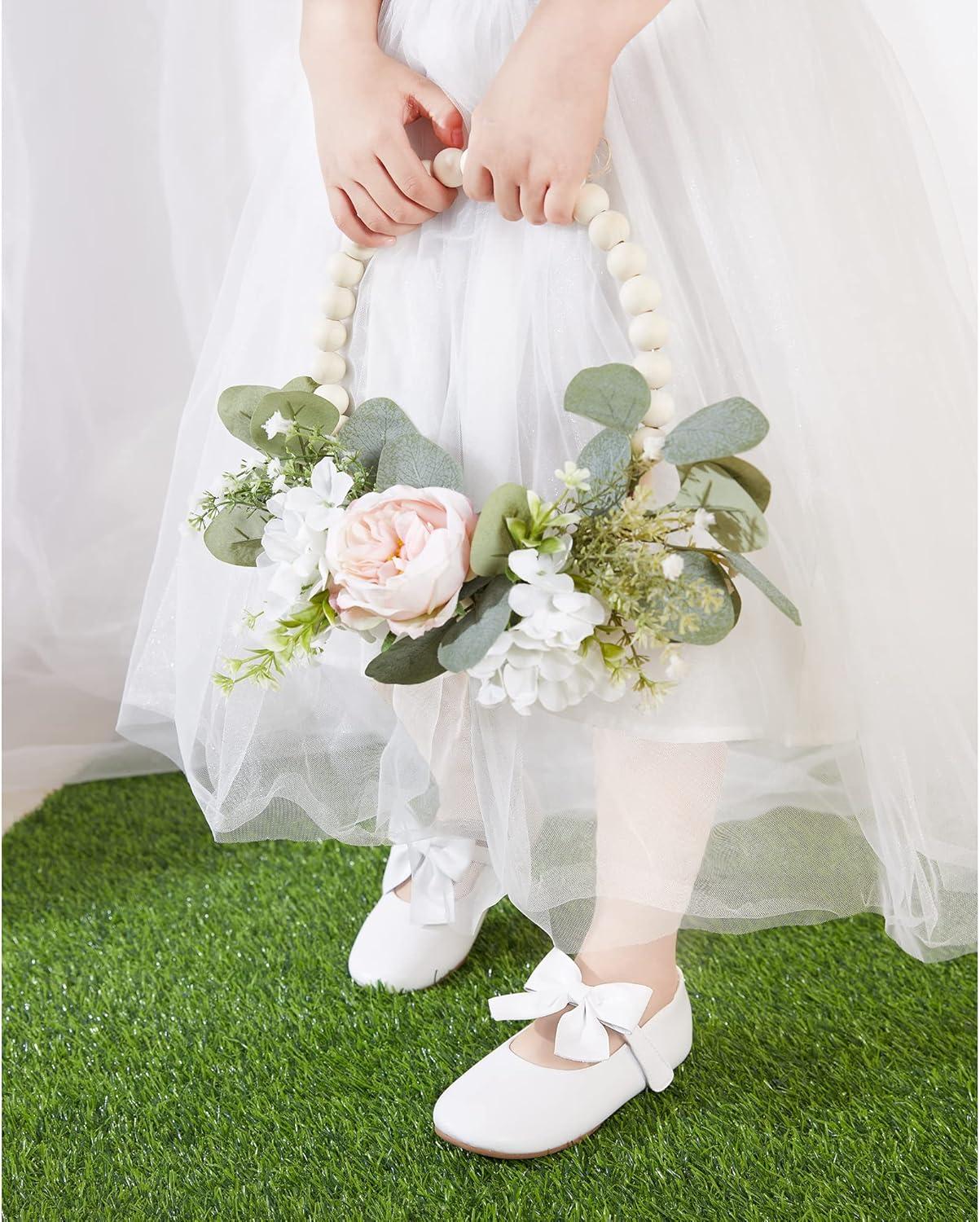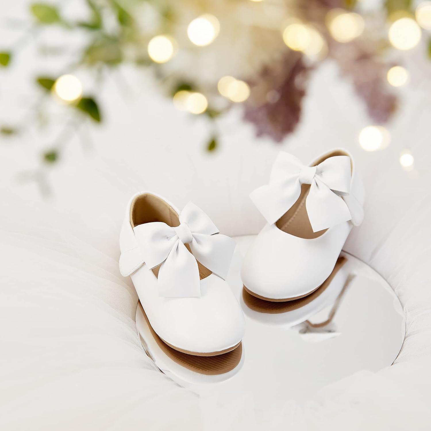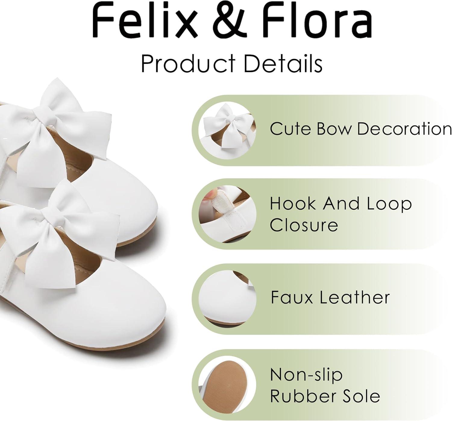 Felix & Flora Toddler Flower Girl Dress Shoes – Girl Ballet Flats Party School Shoes Wedding(B845-white)