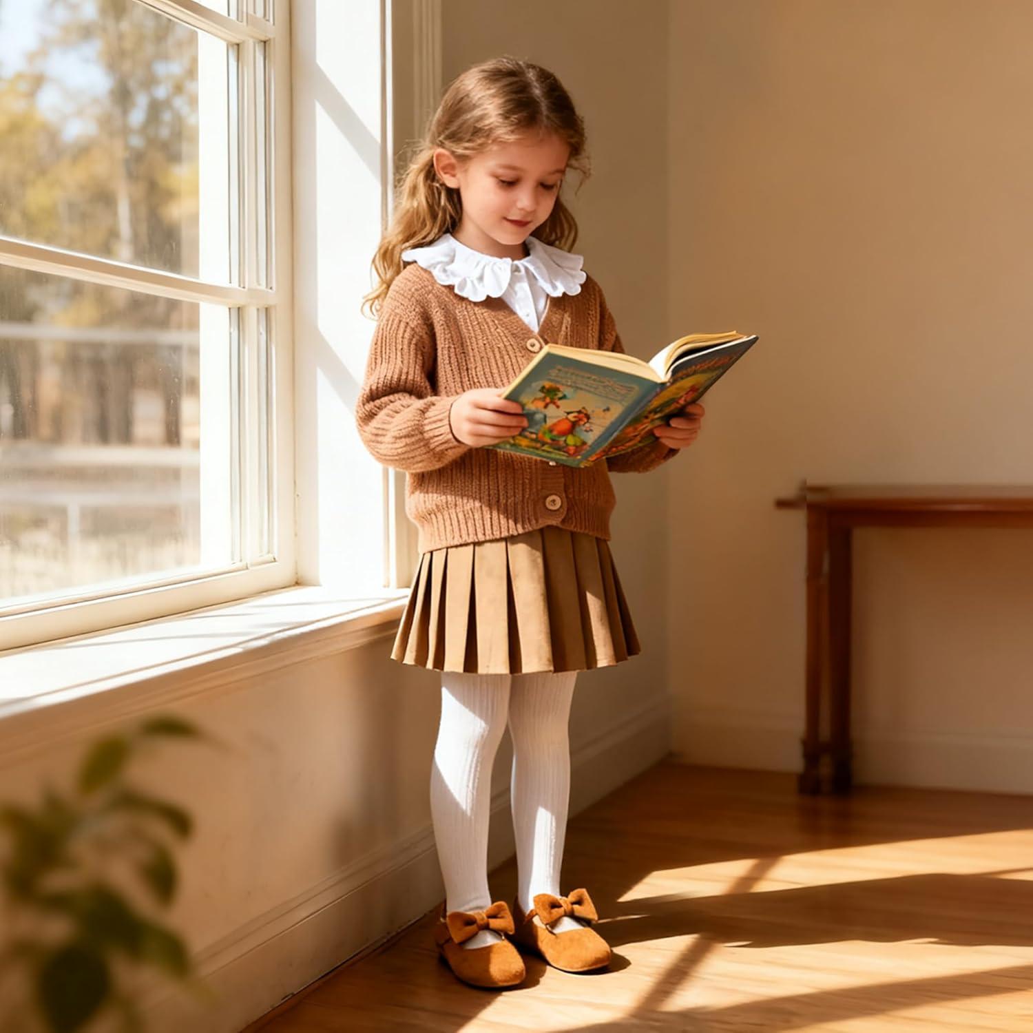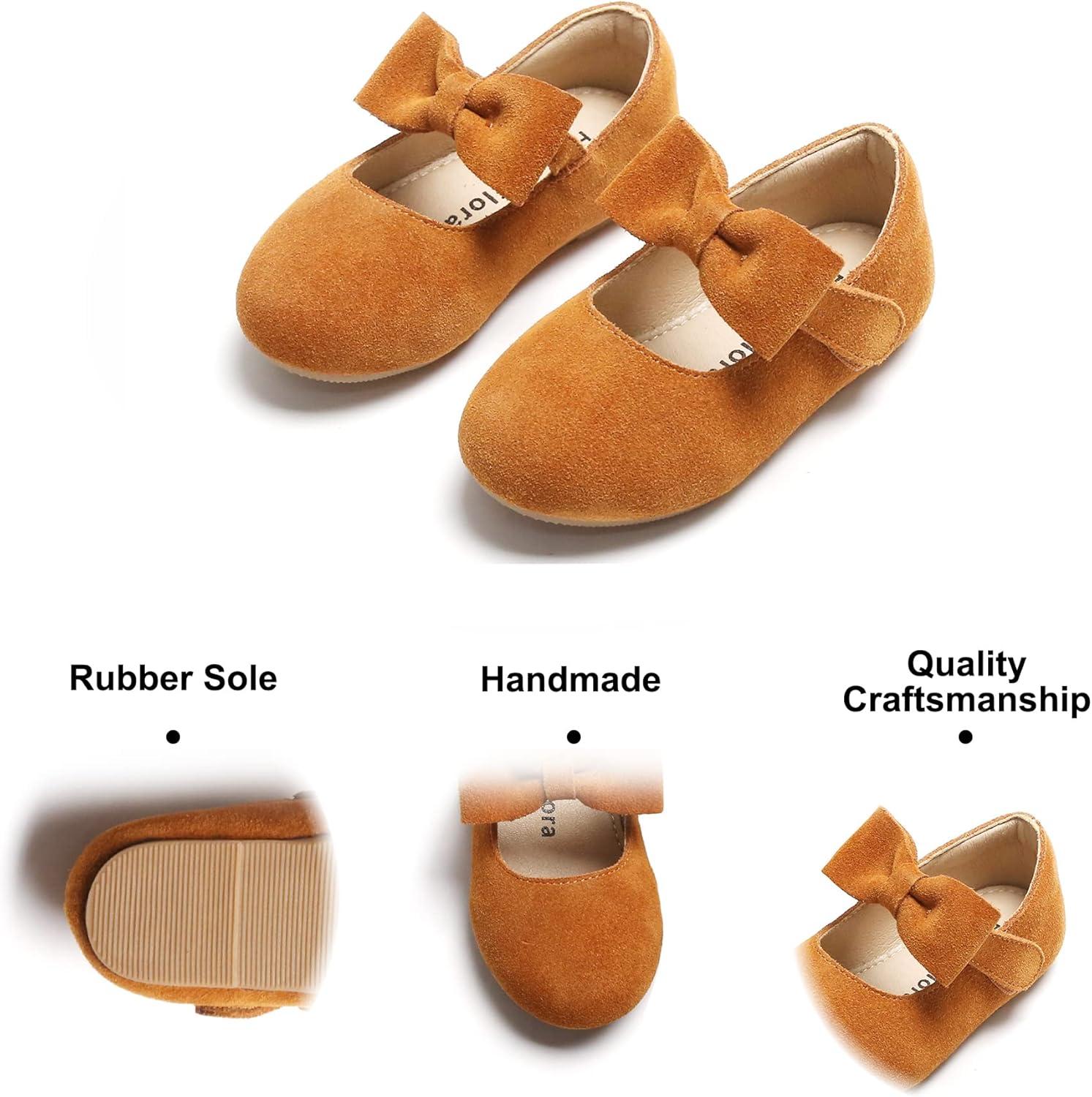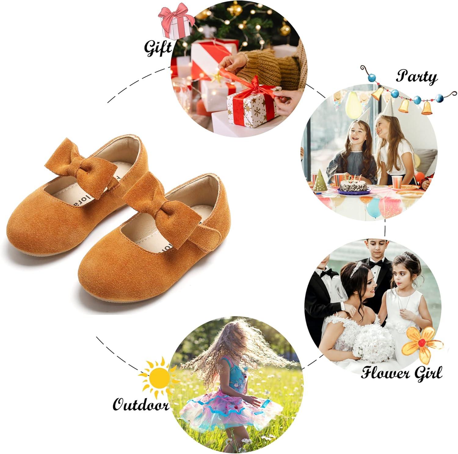 Felix & Flora Toddler Flower Girl Dress Shoes – Girl Ballet Flats Party School Shoes Wedding(B847-brown)