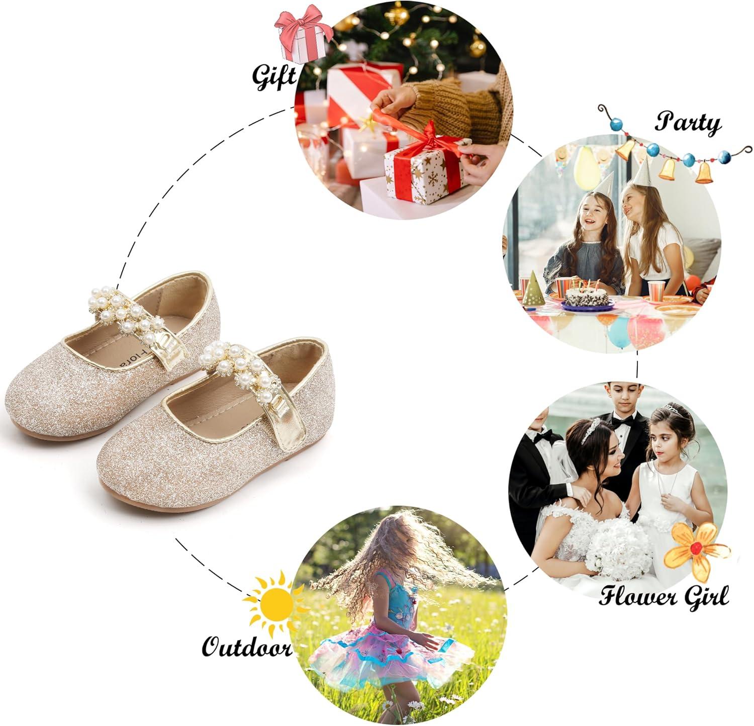 Felix & Flora Toddler Flower Girl Dress Shoes – Girl Ballet Flats Party School Shoes Wedding(B873-glitter Gold)