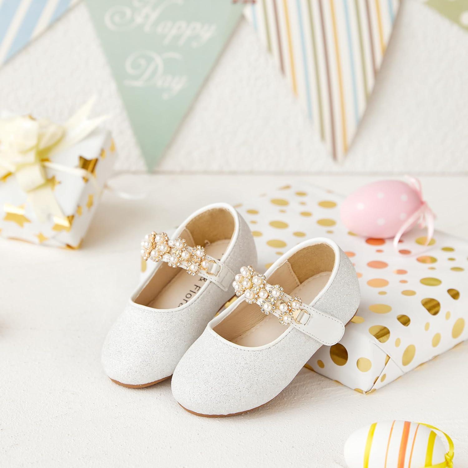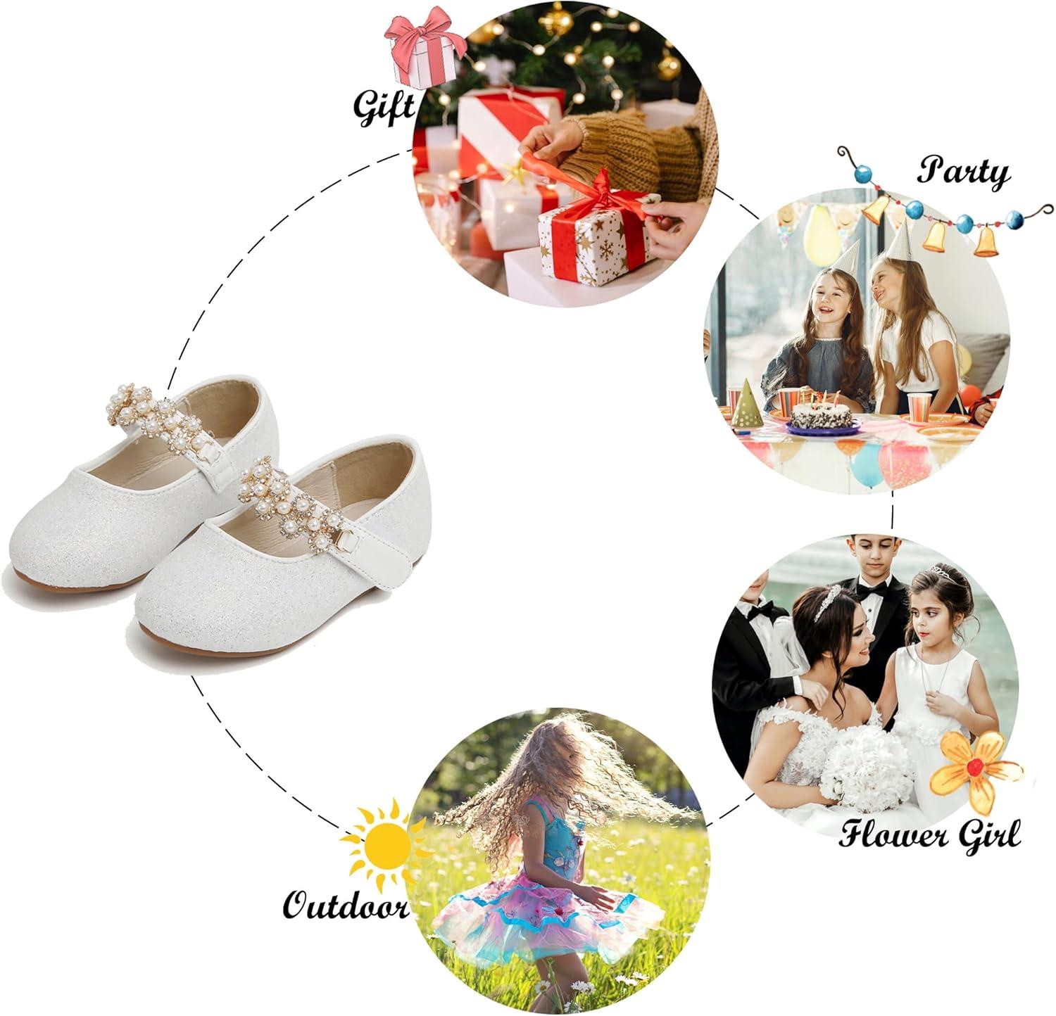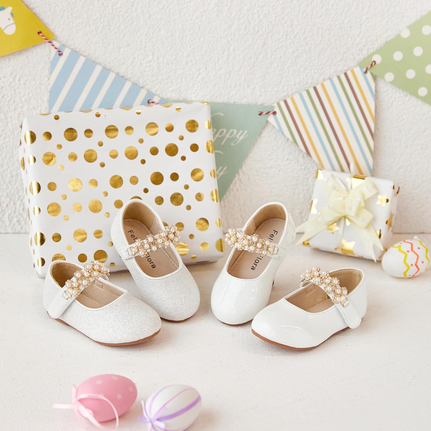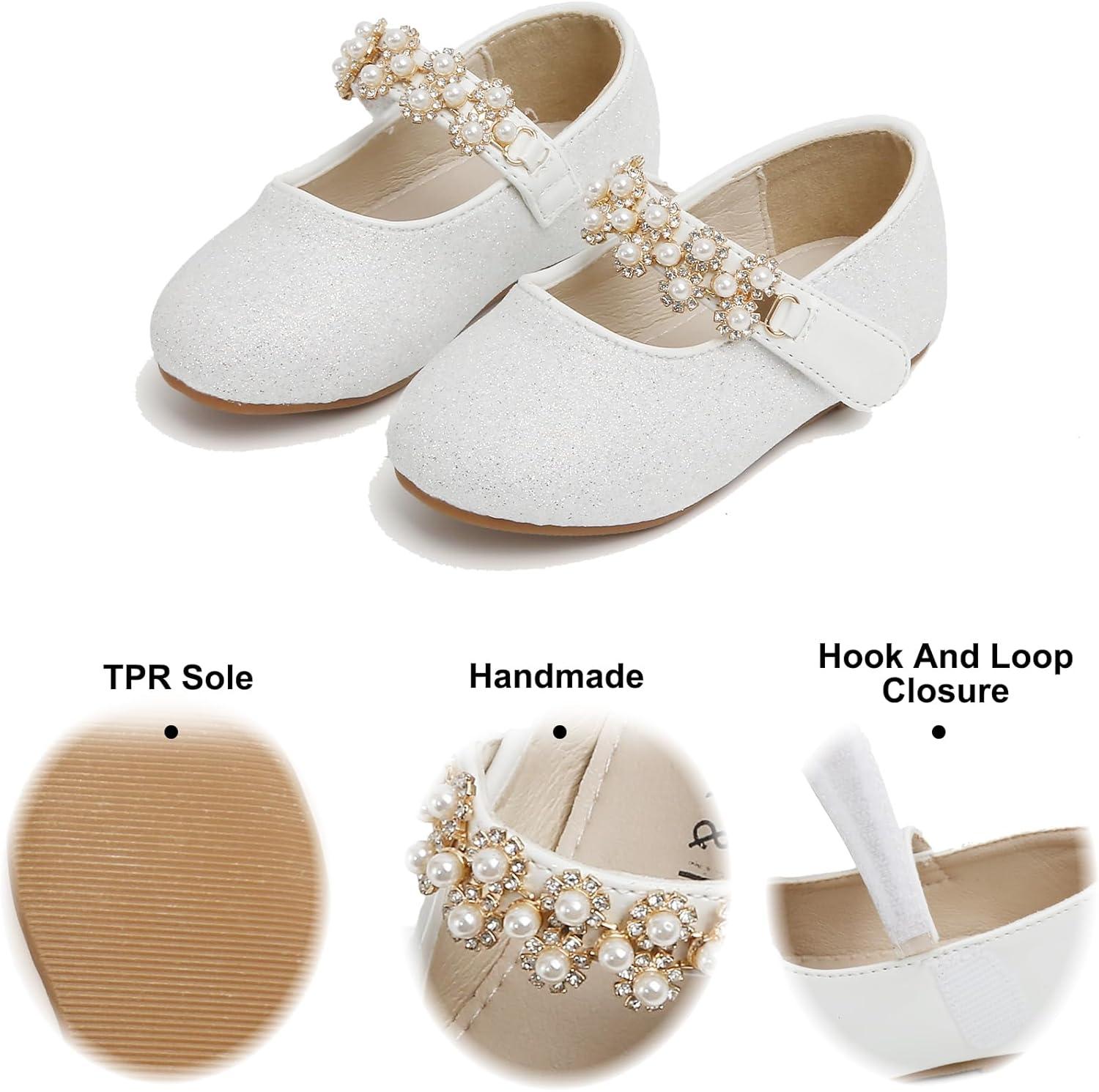 Felix & Flora Toddler Flower Girl Dress Shoes – Girl Ballet Flats Party School Shoes Wedding(B873-glitter White)