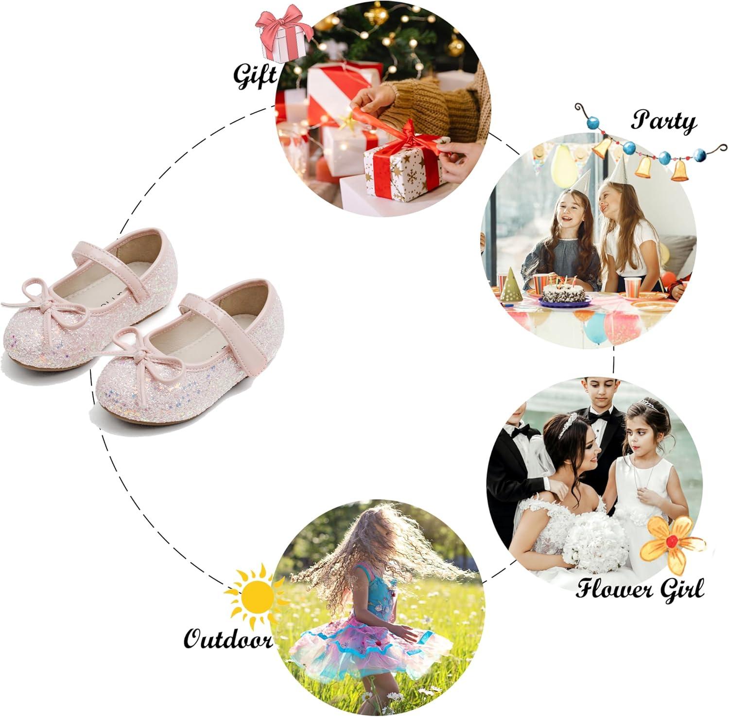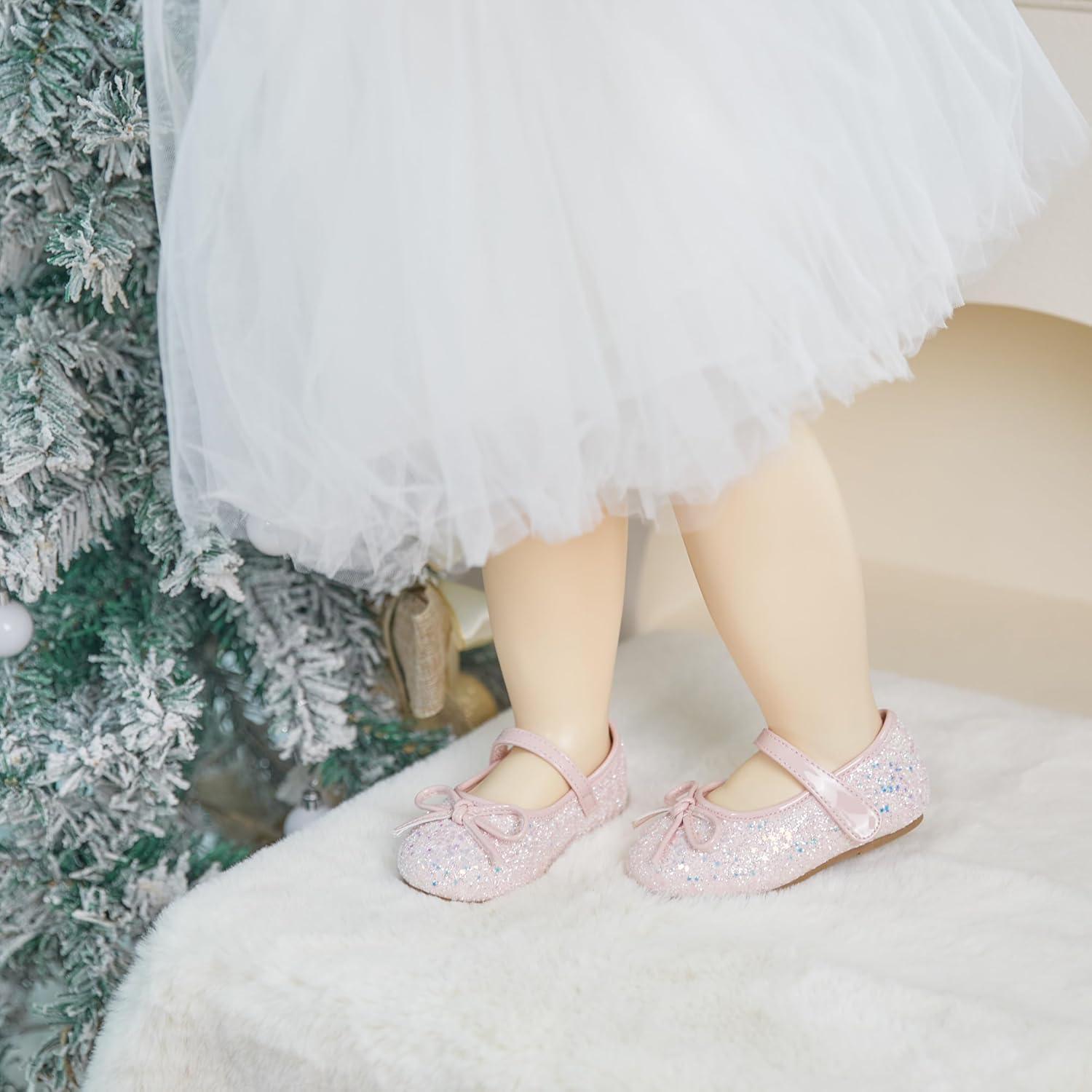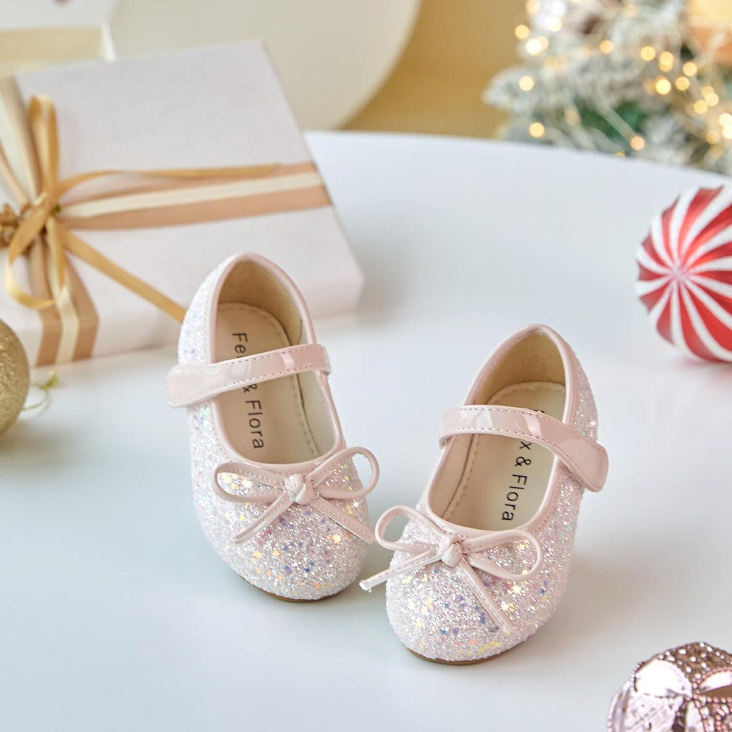Felix & Flora Toddler Flower Girl Dress Shoes – Girl Ballet Flats Party School Shoes Wedding(B880-glitter Pink)