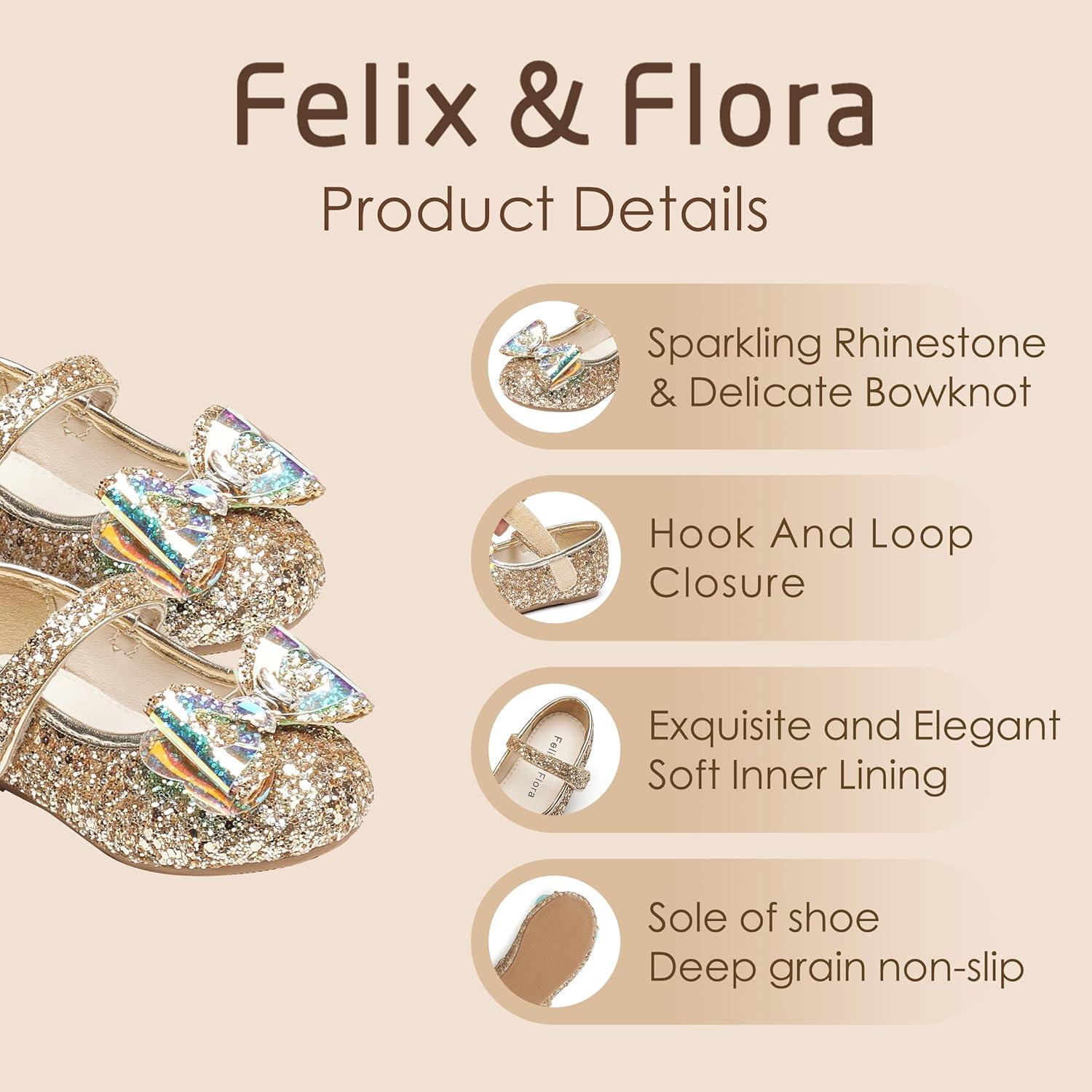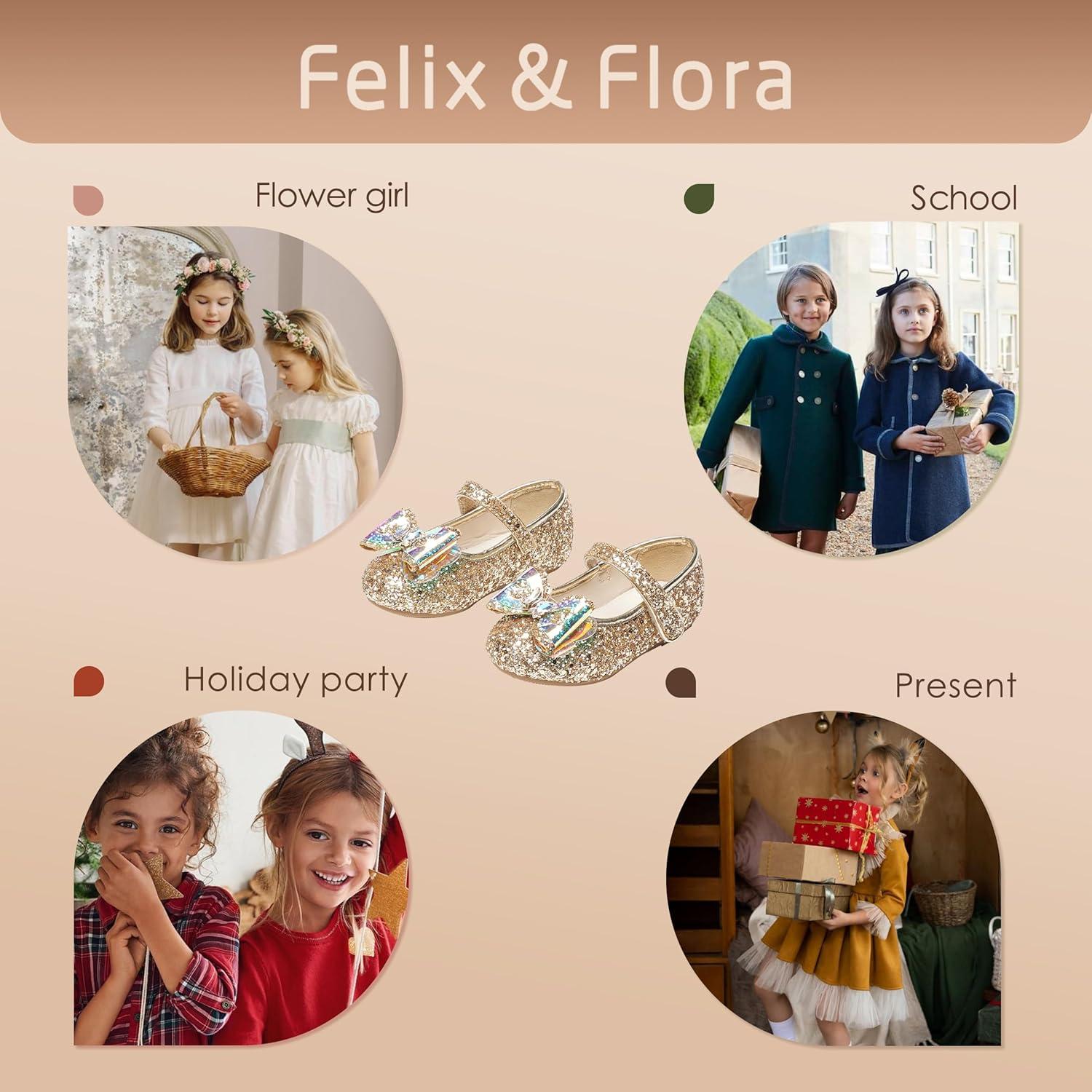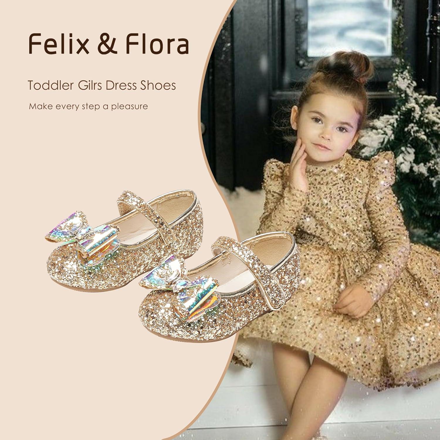 Felix & Flora Toddler Flower Girl Dress Shoes – Girl Ballet Flats Party School Shoes Wedding(B896-gold)