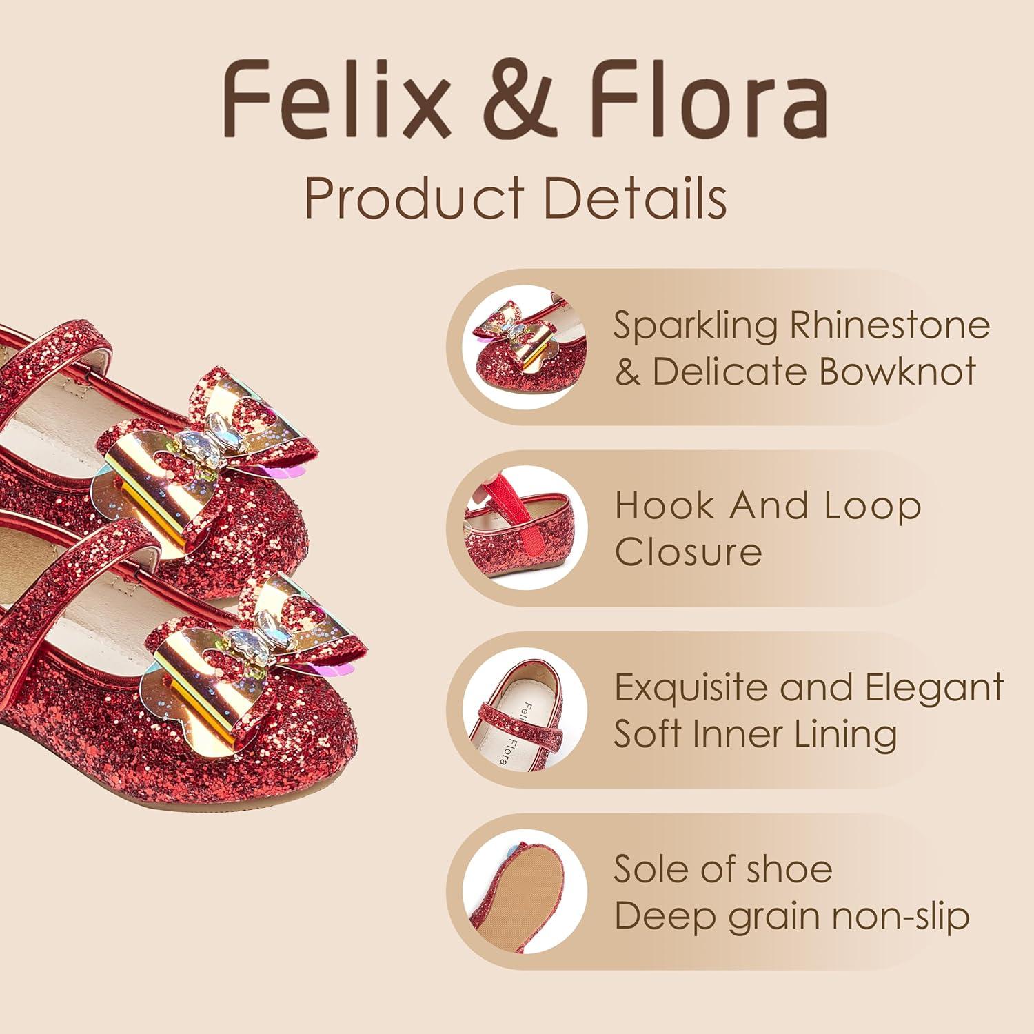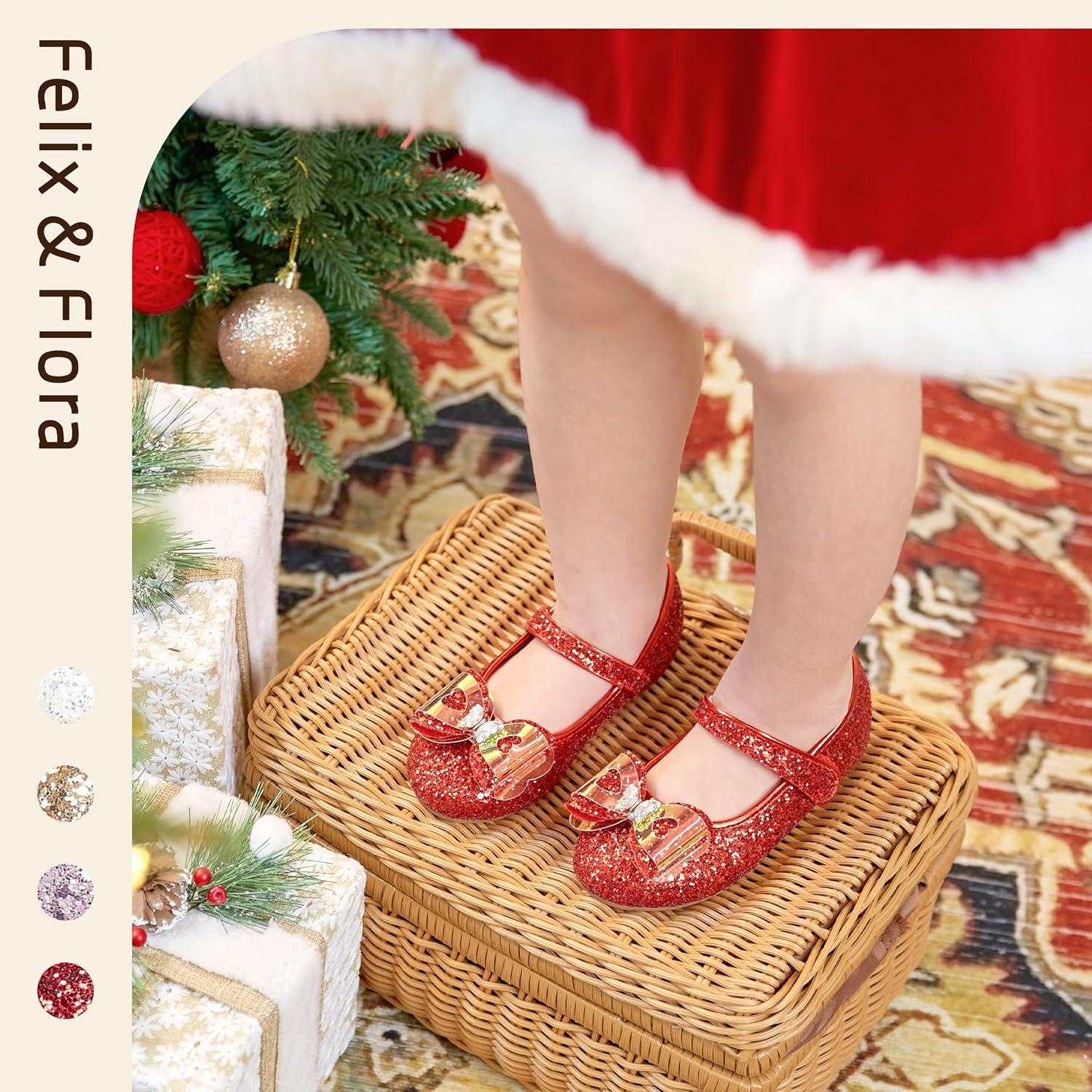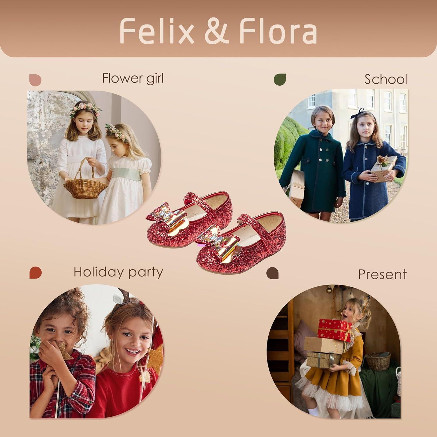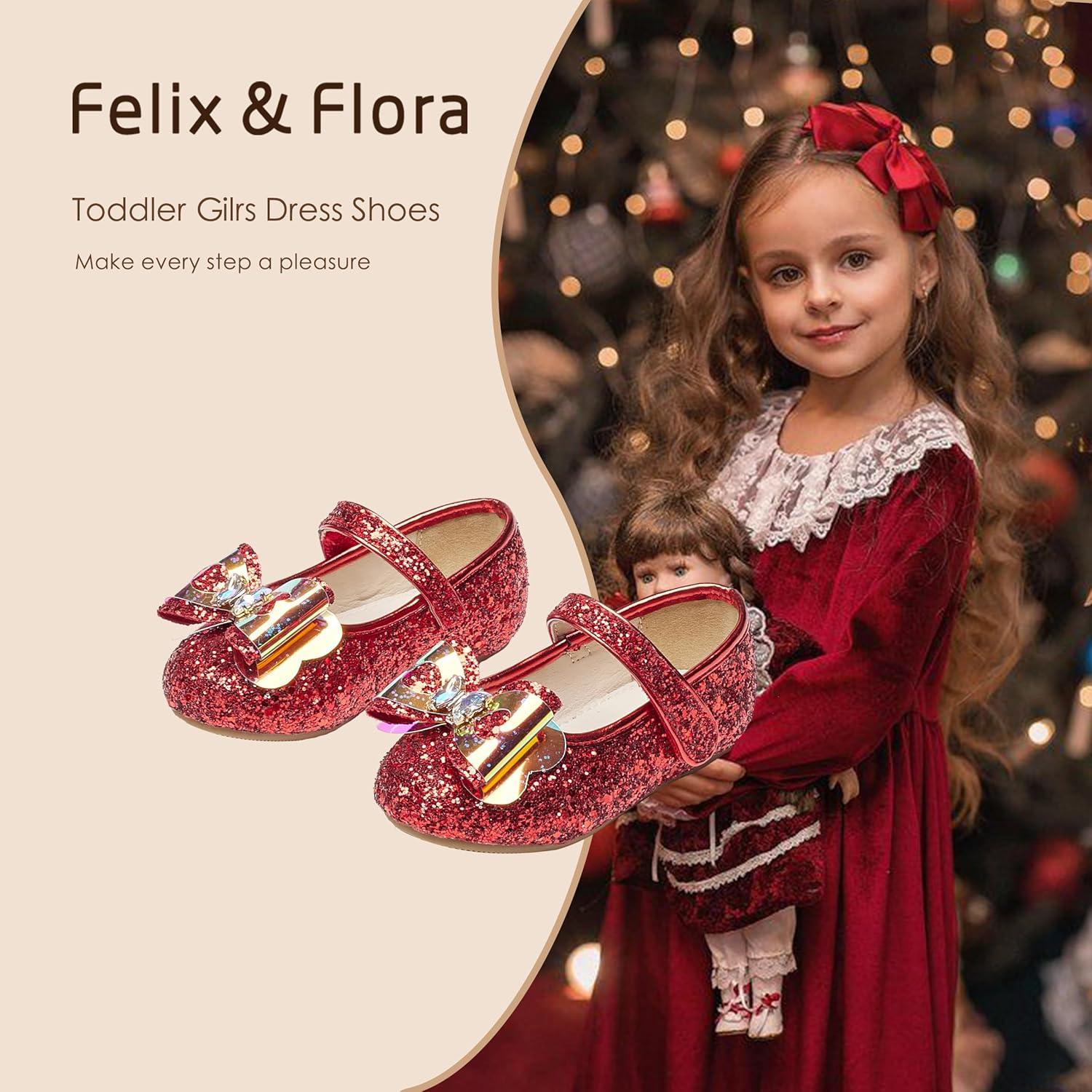 Felix & Flora Toddler Flower Girl Dress Shoes – Girl Ballet Flats Party School Shoes Wedding(B896-red)
