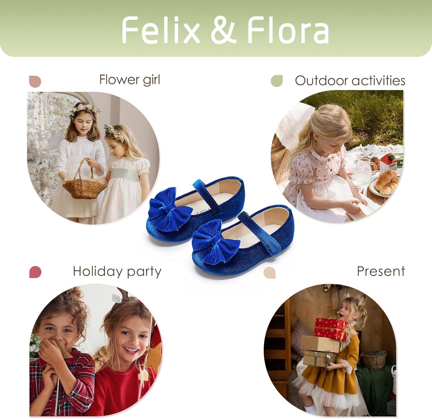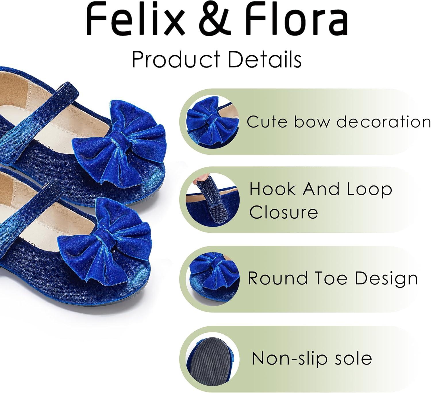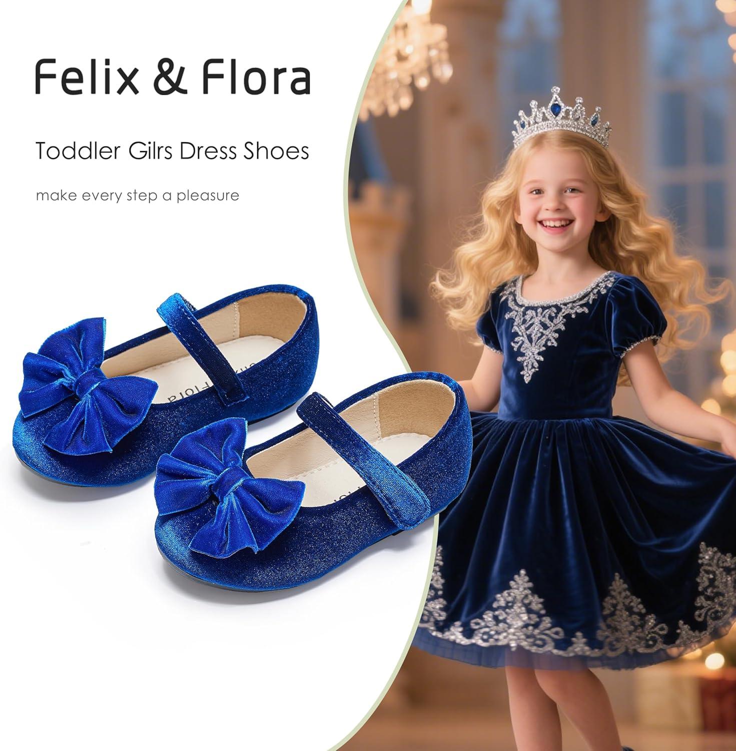 Felix & Flora Toddler Flower Girl Dress Shoes – Girl Ballet Flats Party School Shoes Wedding(B904-velvet Navy Blue)