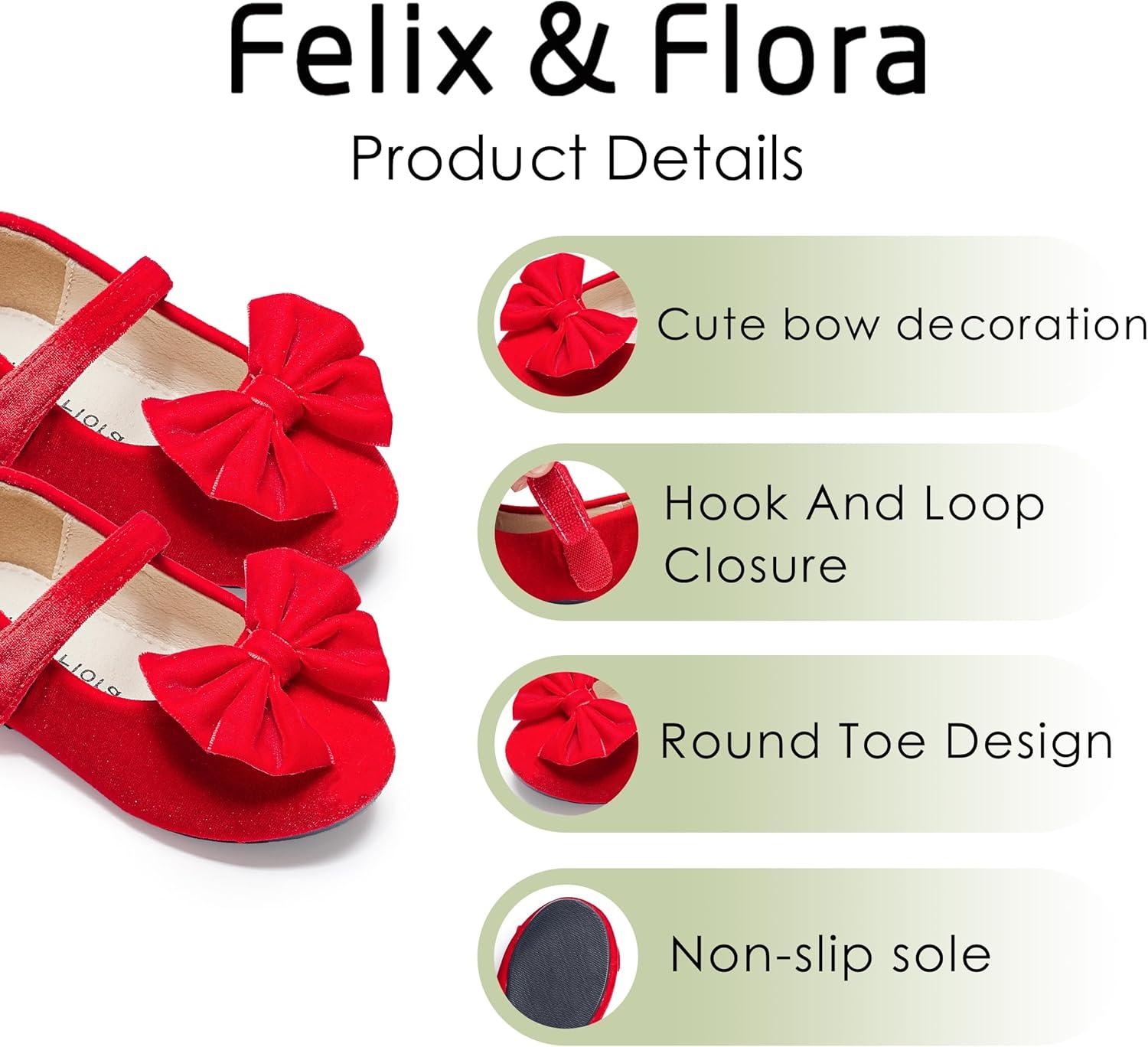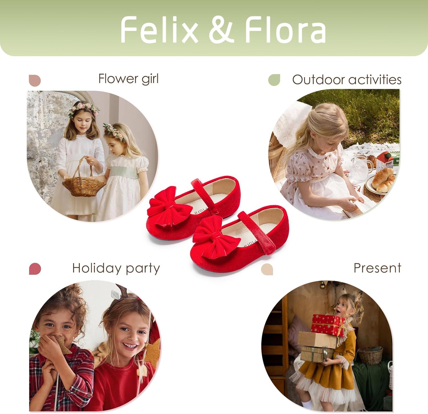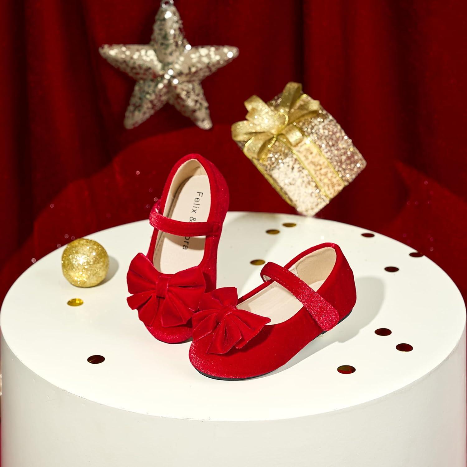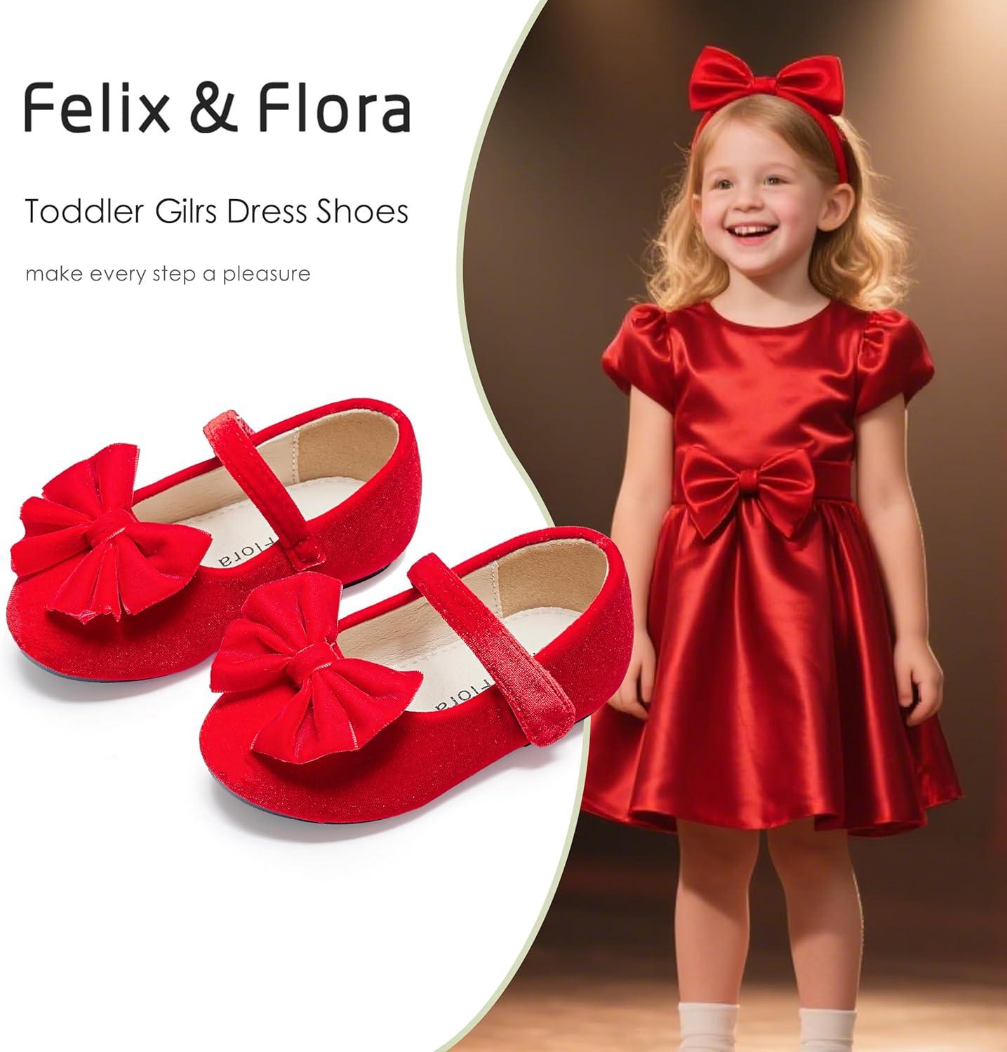 Felix & Flora Toddler Flower Girl Dress Shoes – Girl Ballet Flats Party School Shoes Wedding(B904-velvet Red)