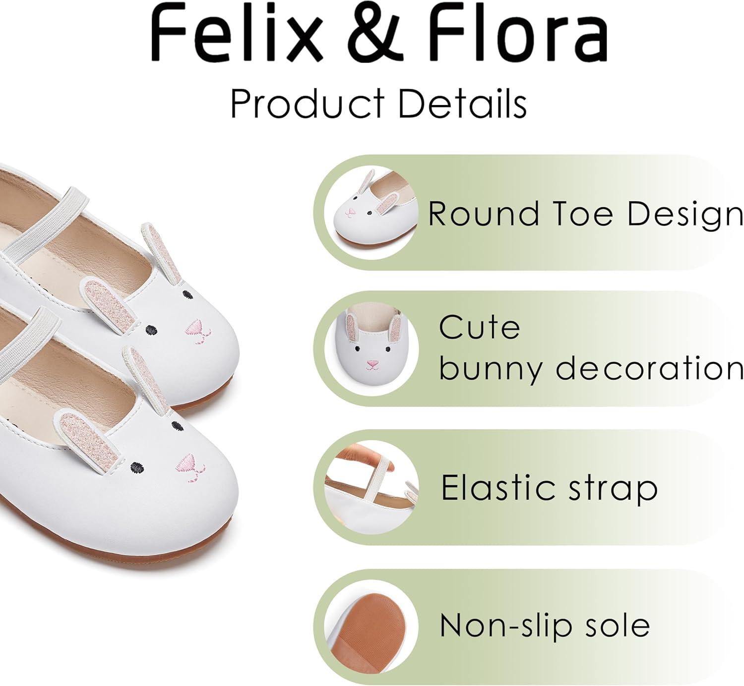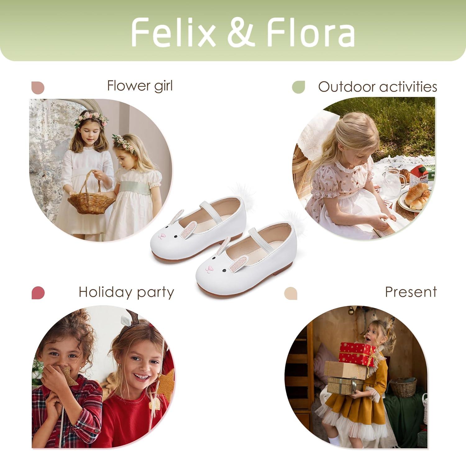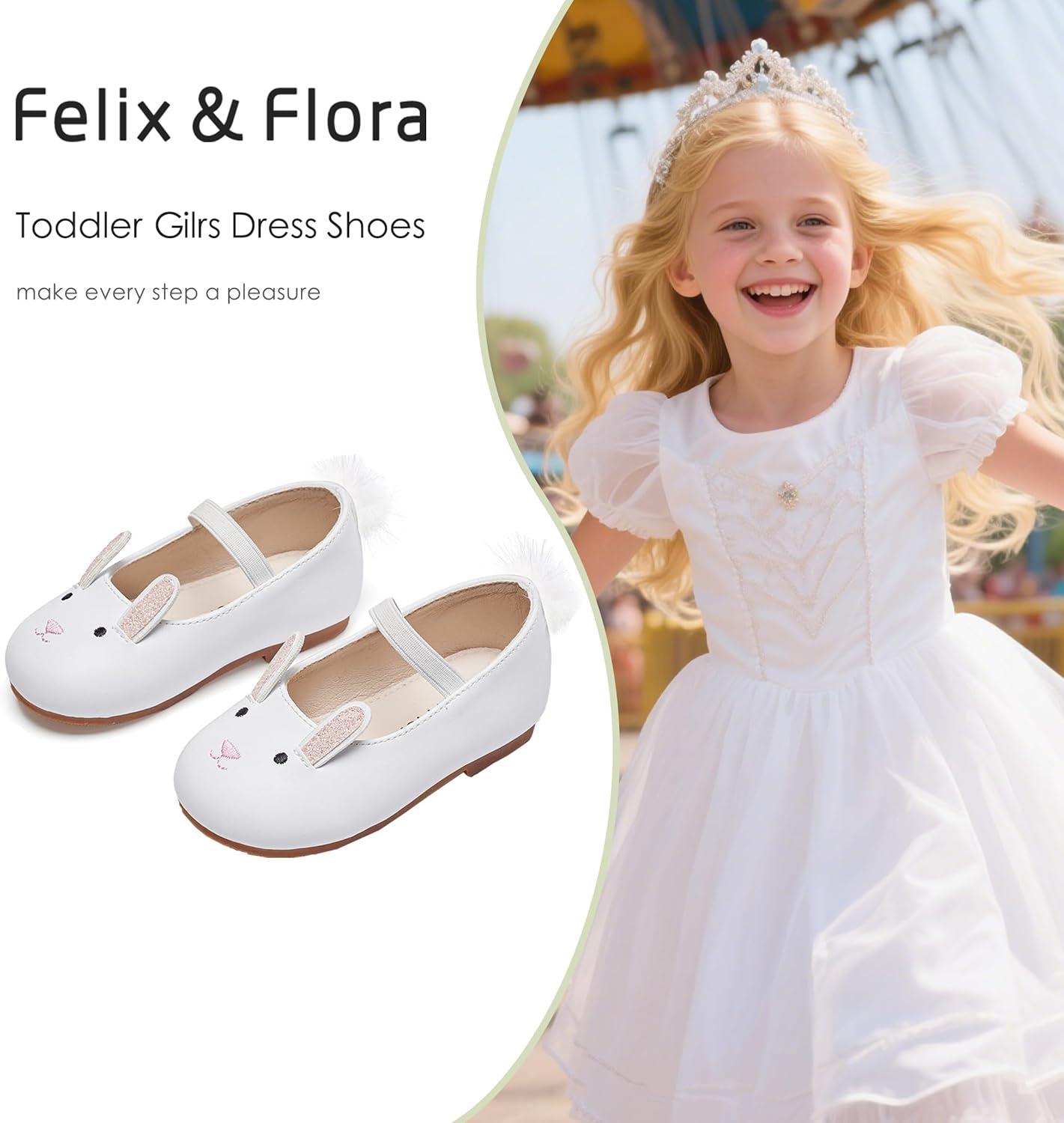 Felix & Flora Toddler Flower Girl Dress Shoes – Girl Ballet Flats Party School Shoes Wedding(Bf02-white)