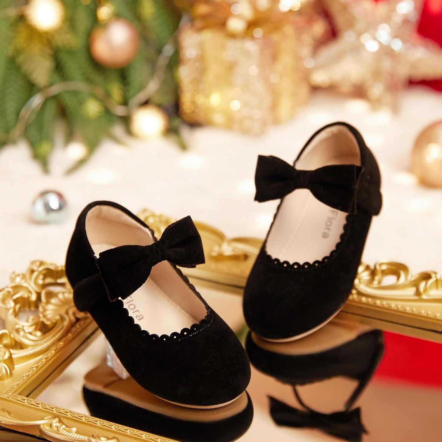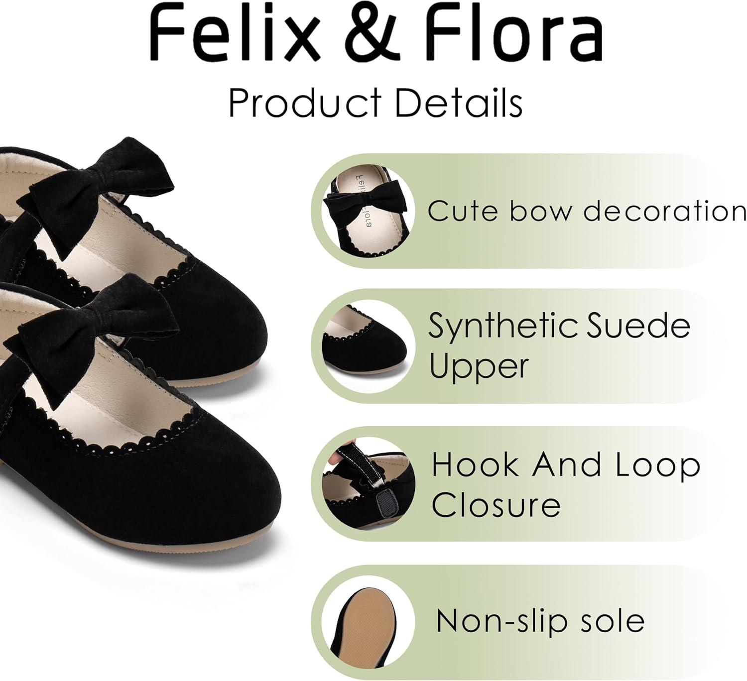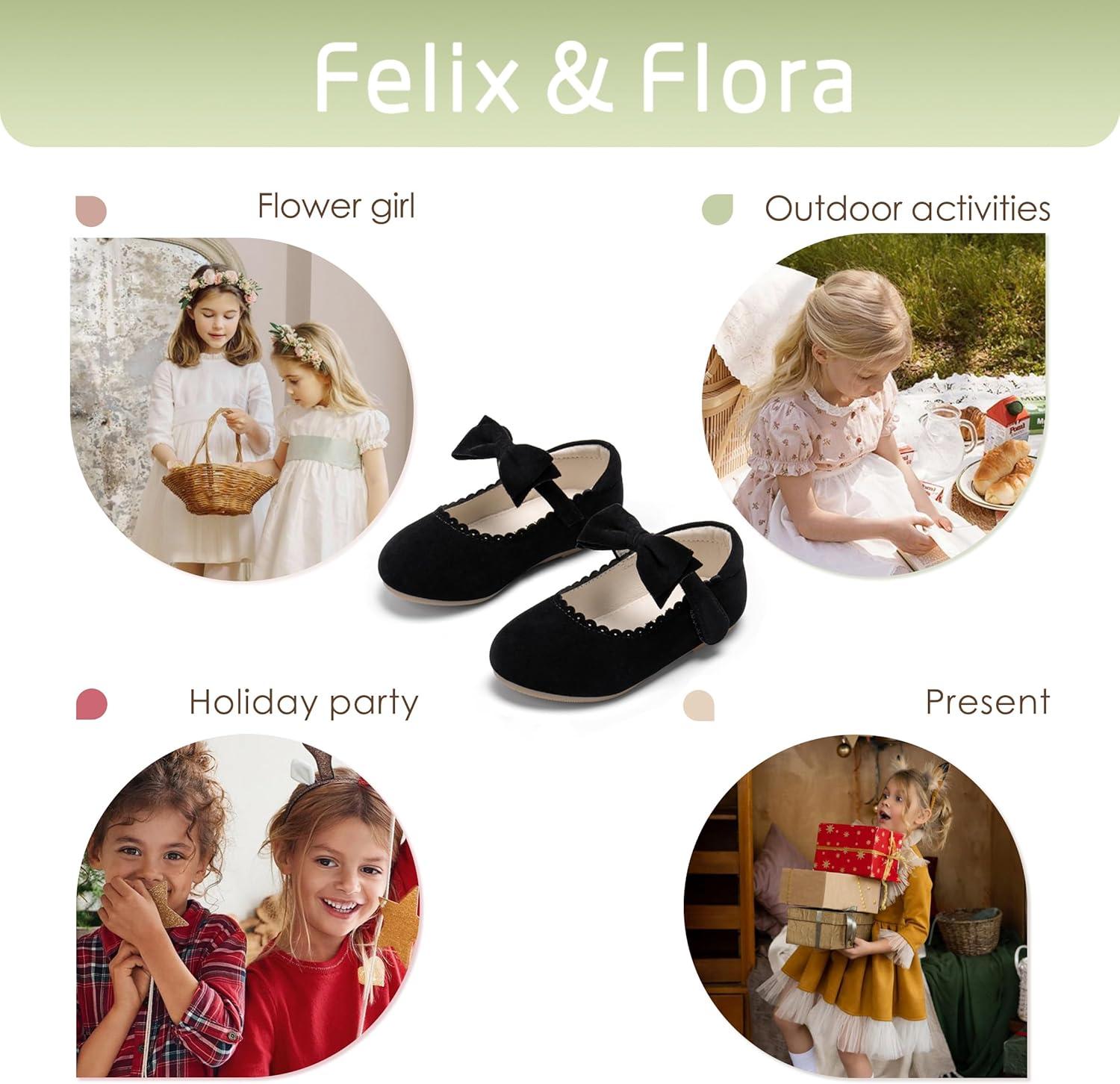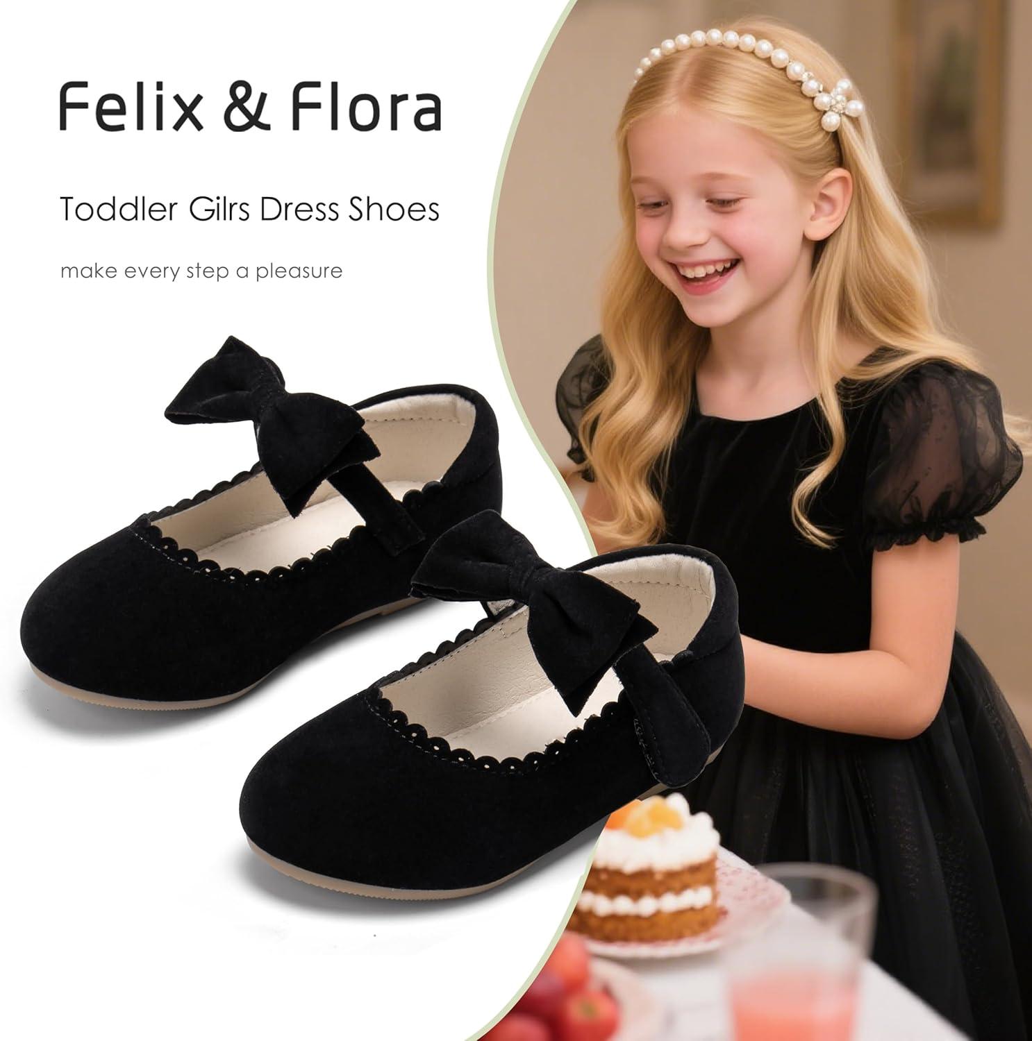 Felix & Flora Toddler Flower Girl Dress Shoes – Girl Ballet Flats Party School Shoes Wedding(Bf11-black)