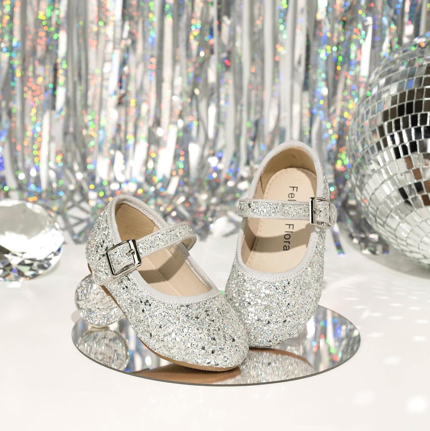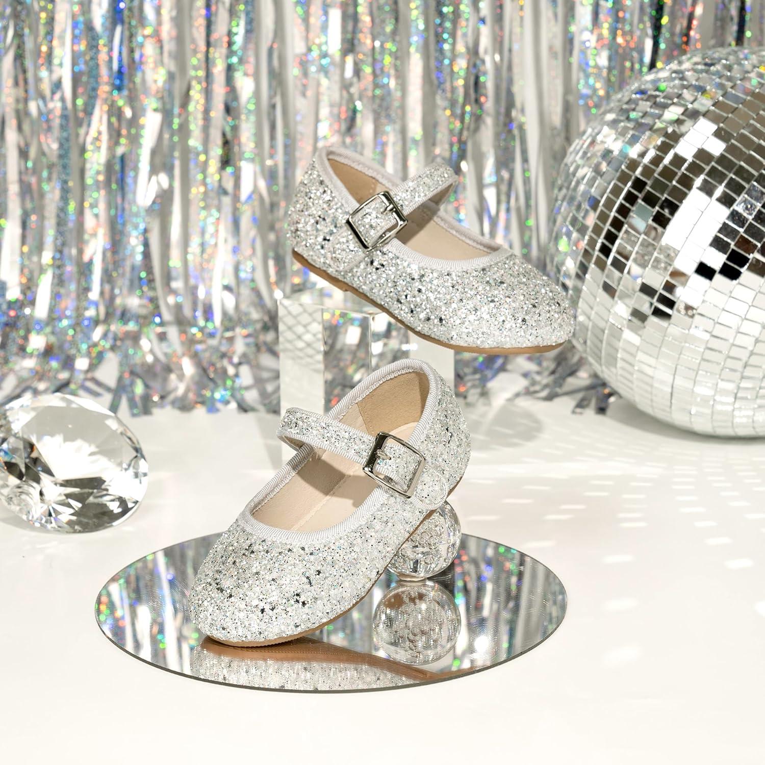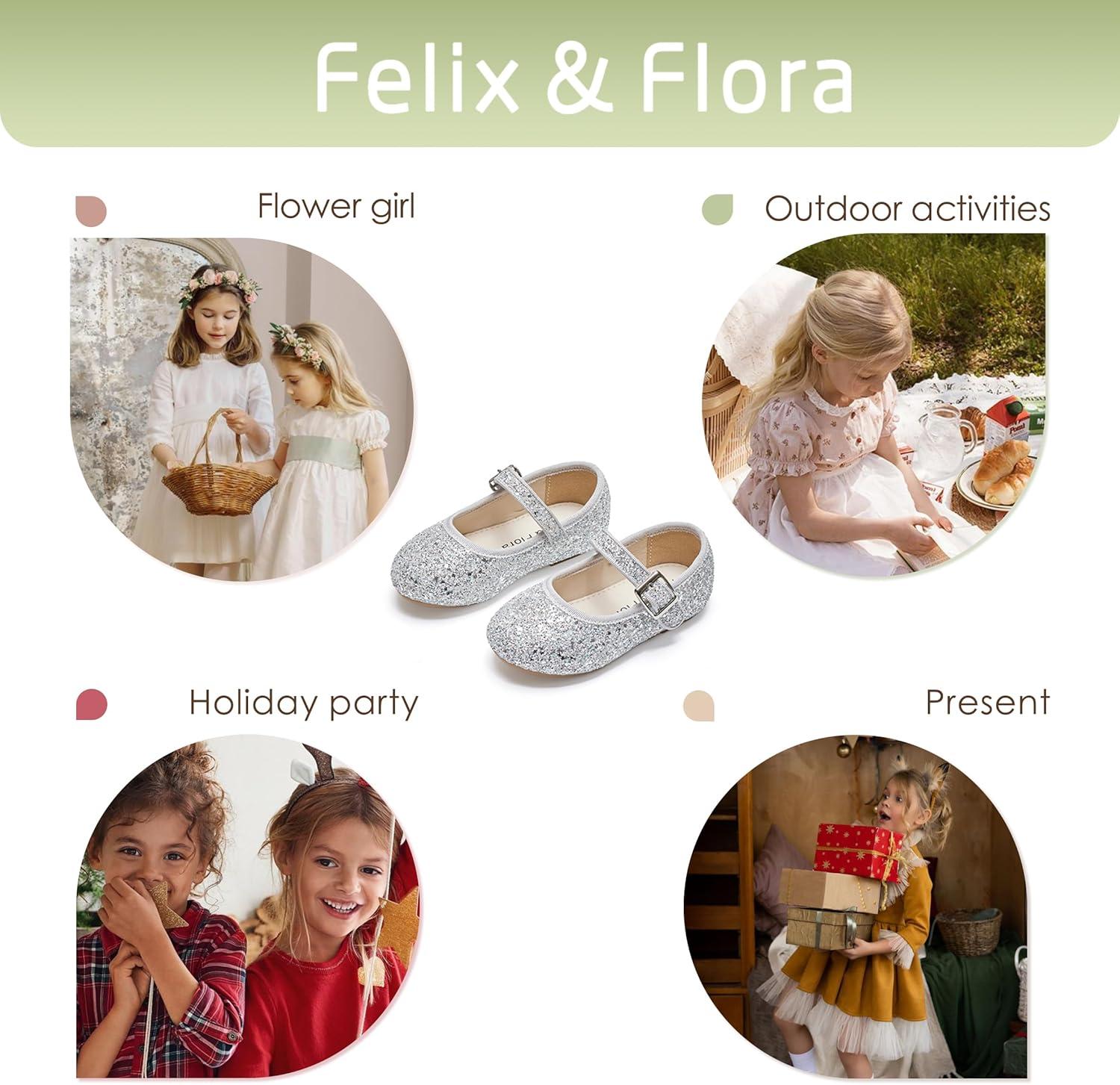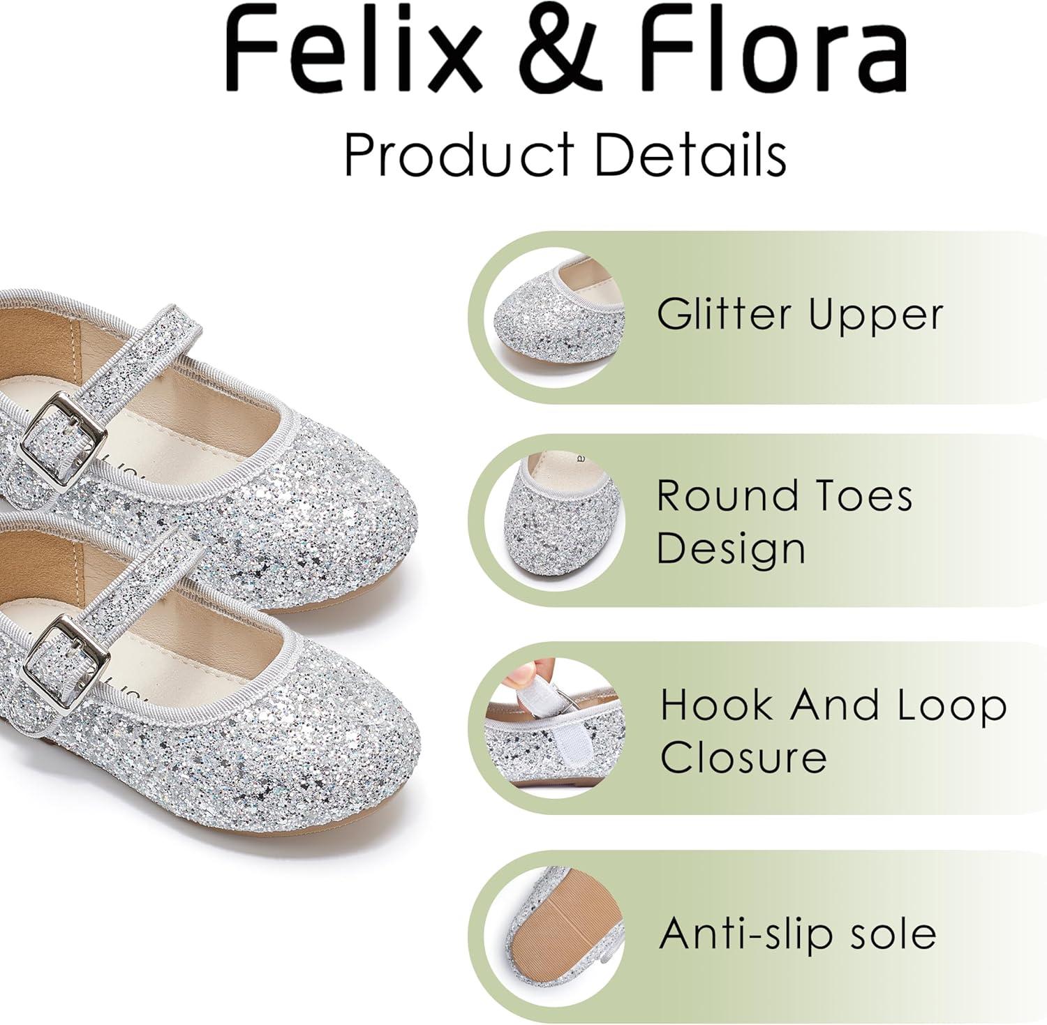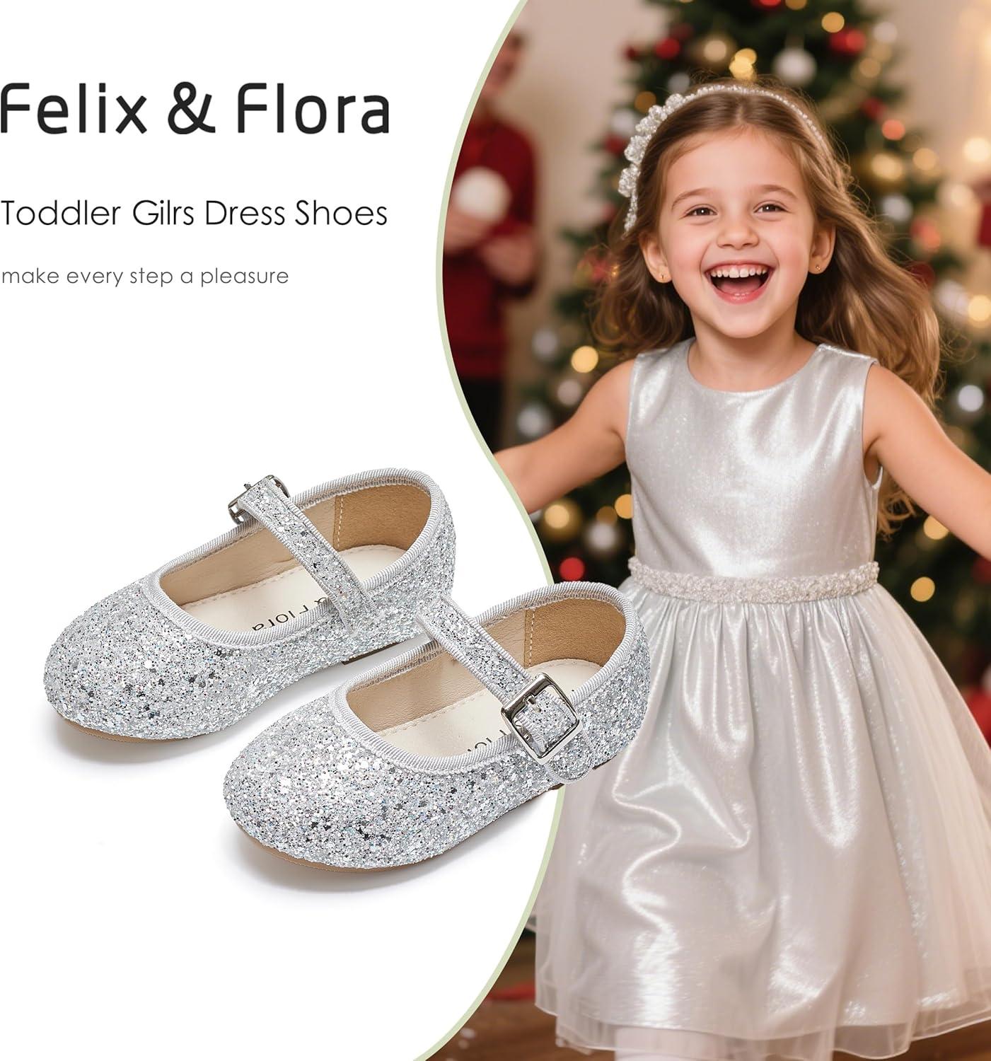 Felix & Flora Toddler Flower Girl Dress Shoes – Girl Ballet Flats Party School Shoes Wedding(Bf20-glitter Silver)
