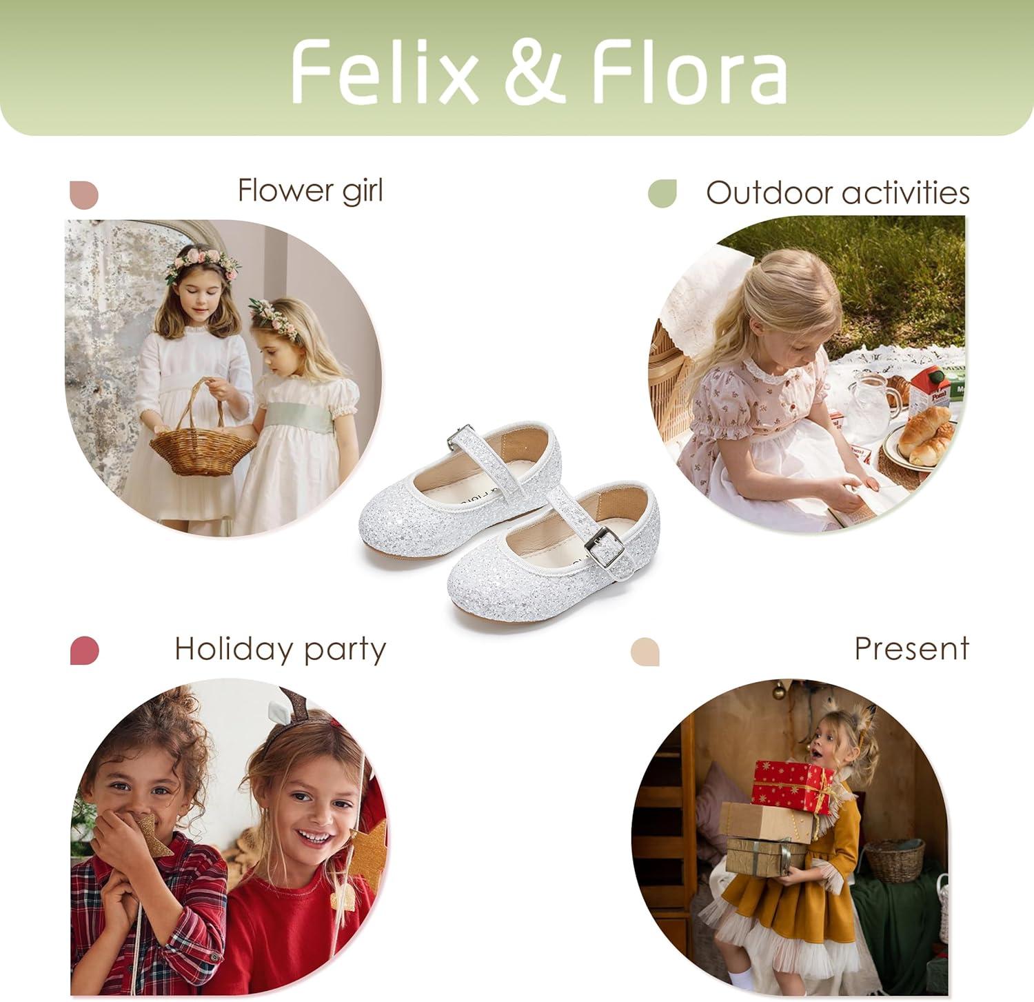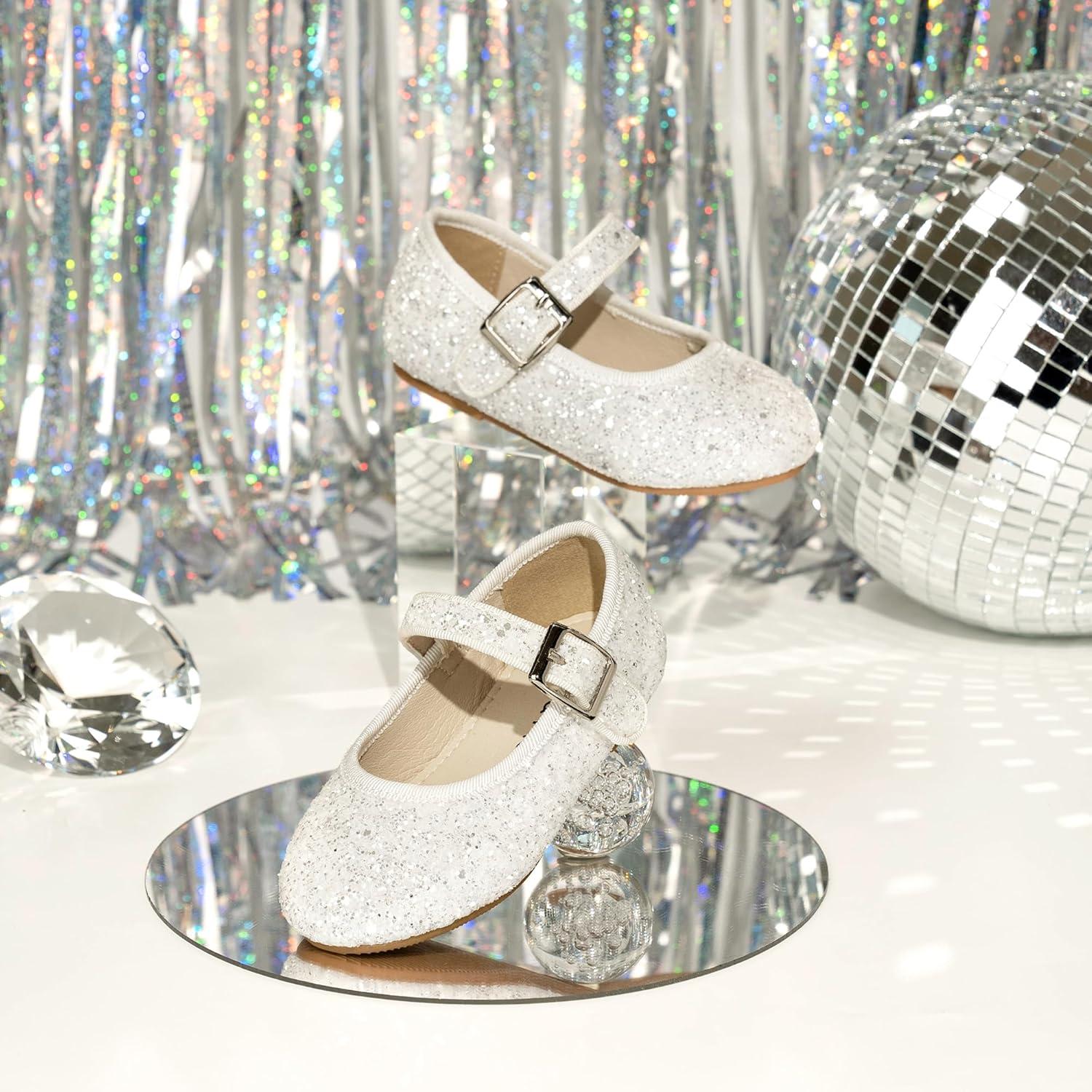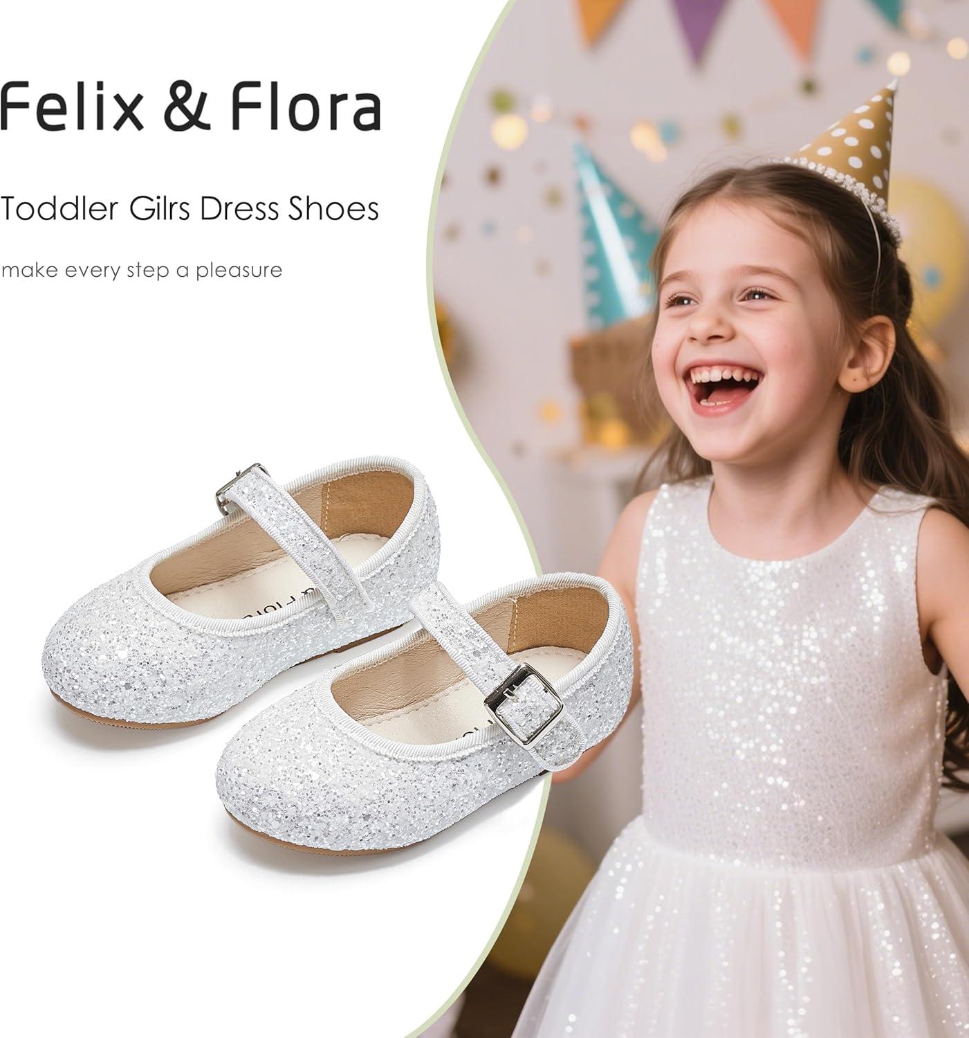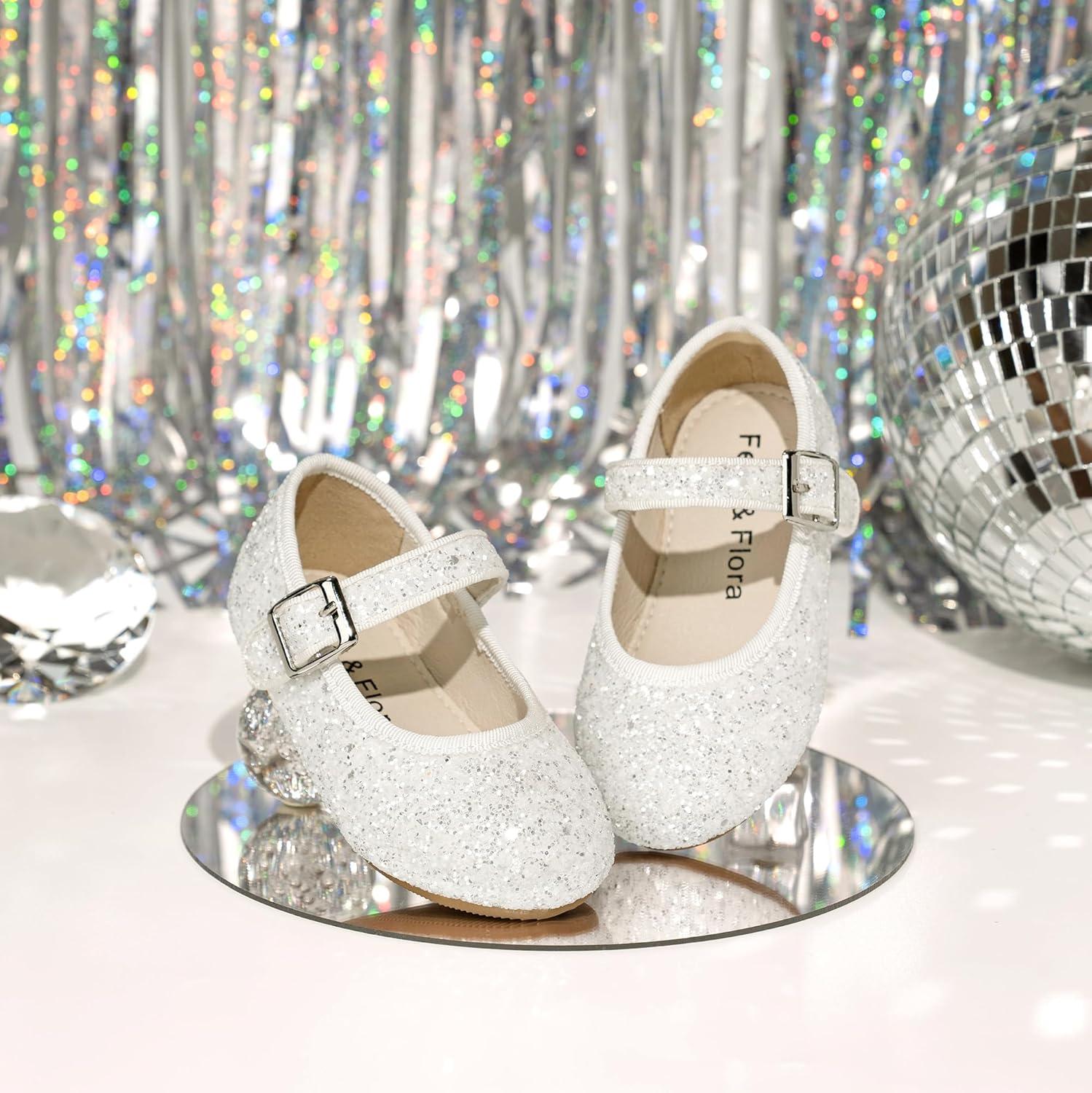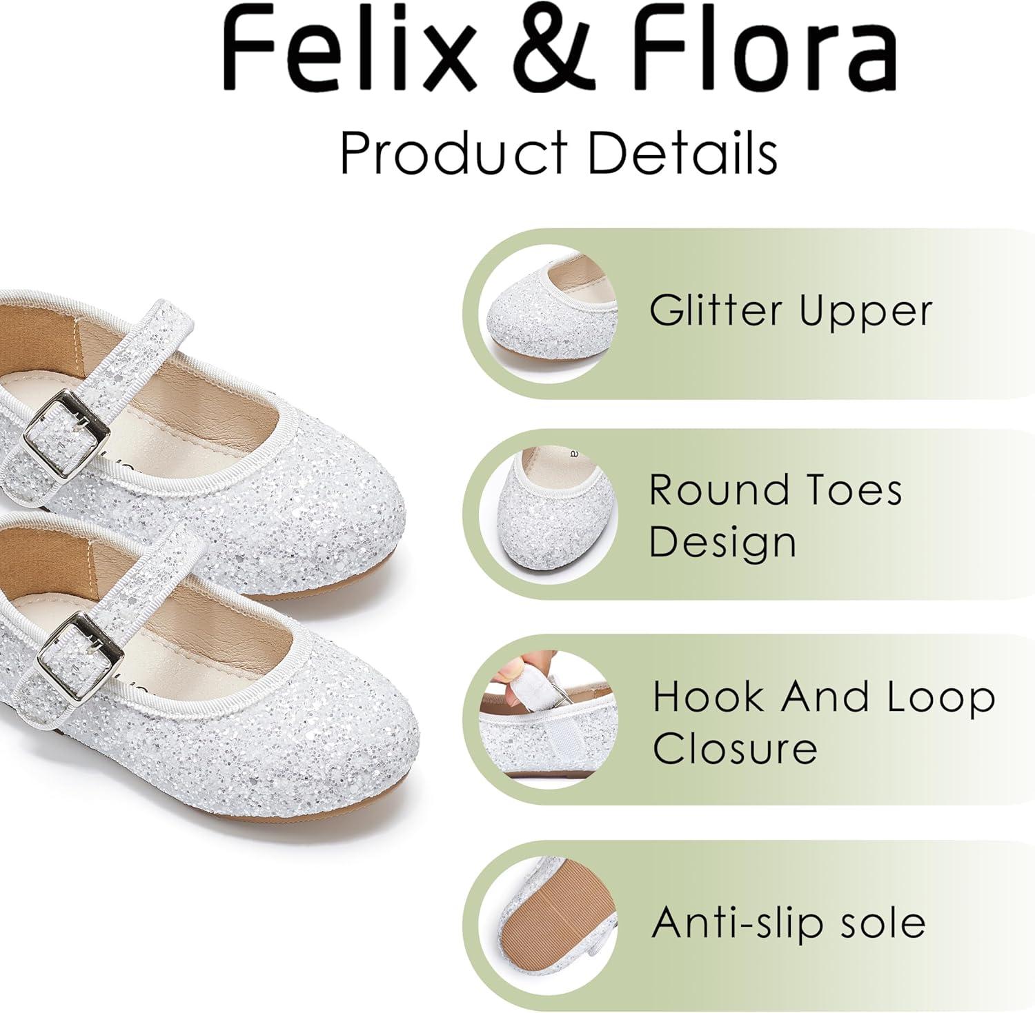 Felix & Flora Toddler Flower Girl Dress Shoes – Girl Ballet Flats Party School Shoes Wedding(Bf20-glitter White)