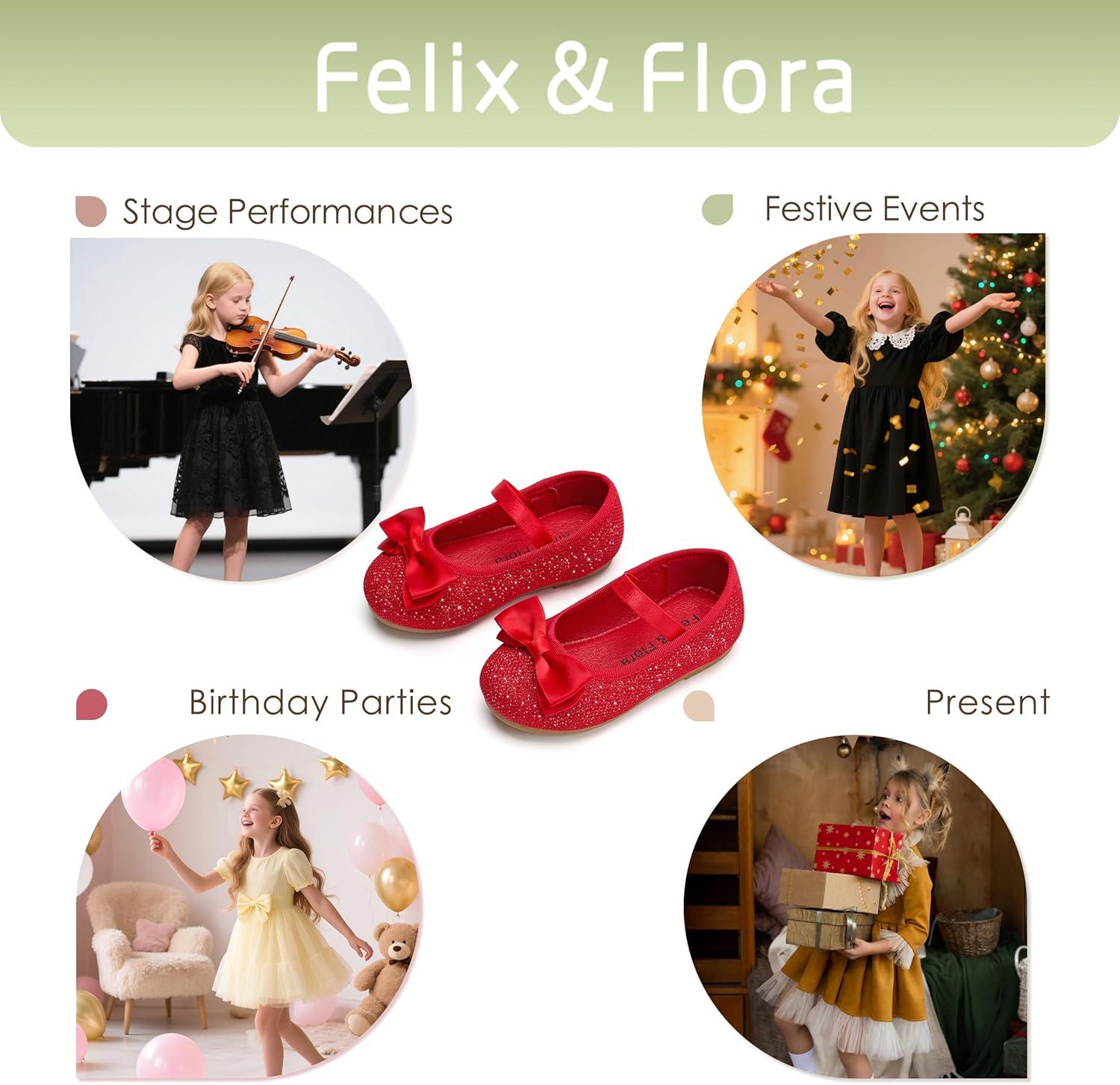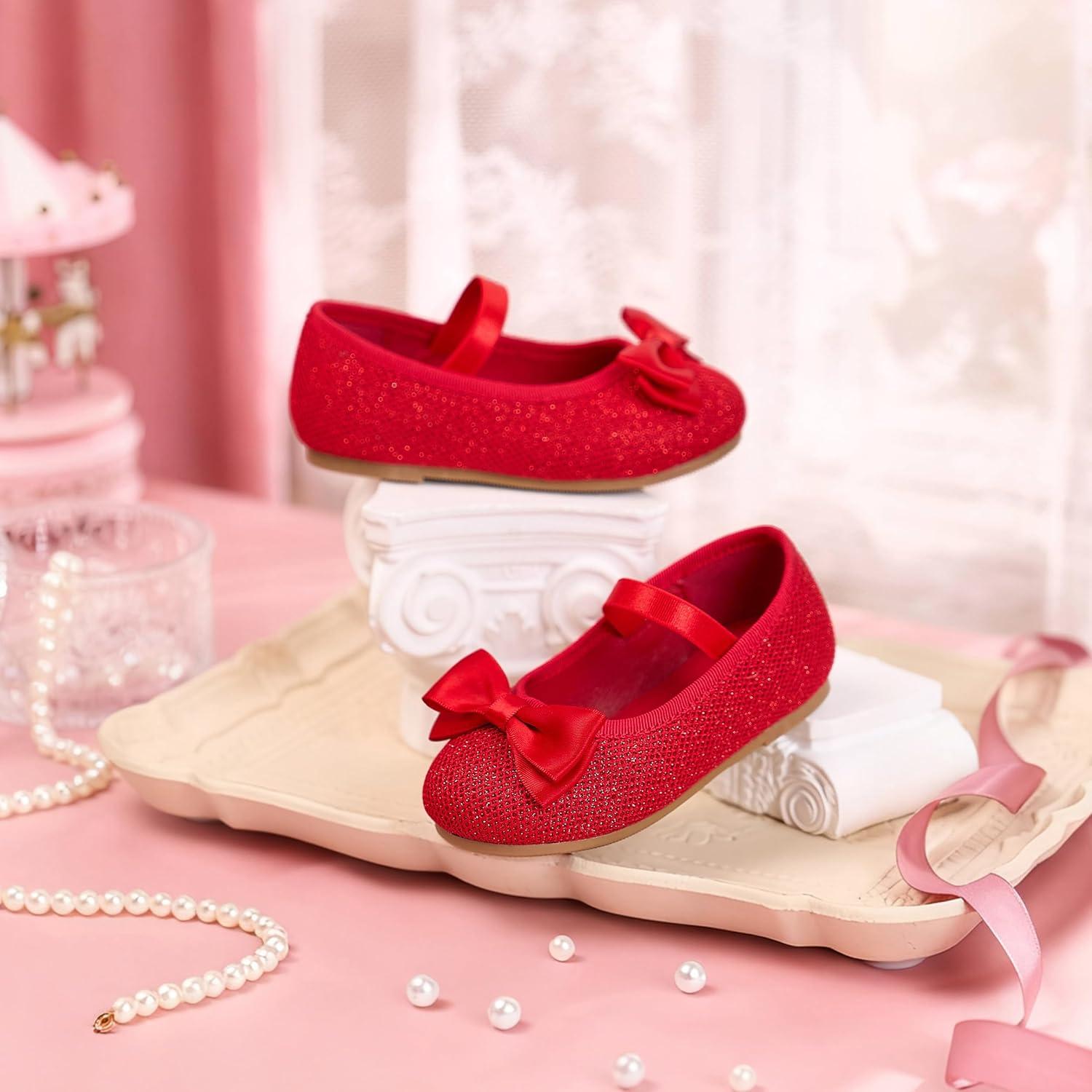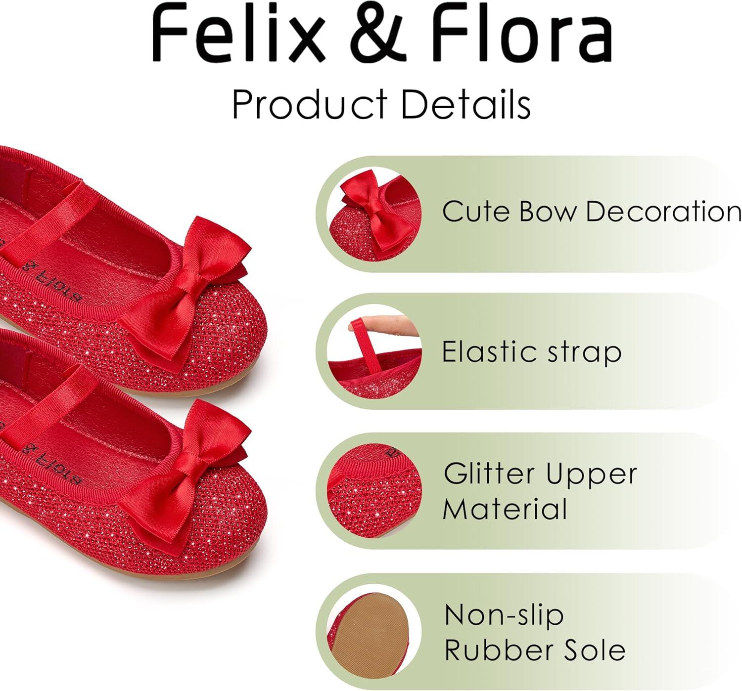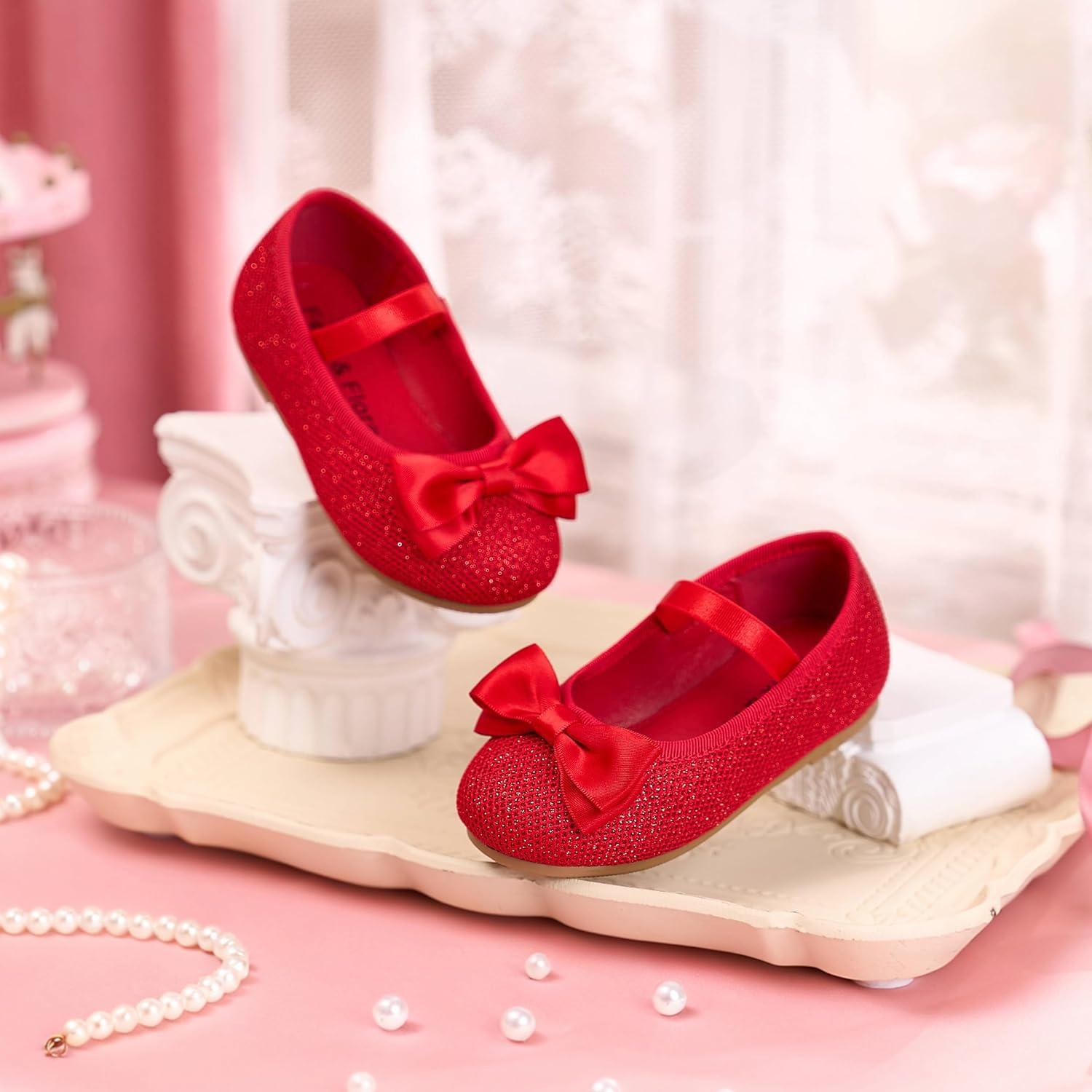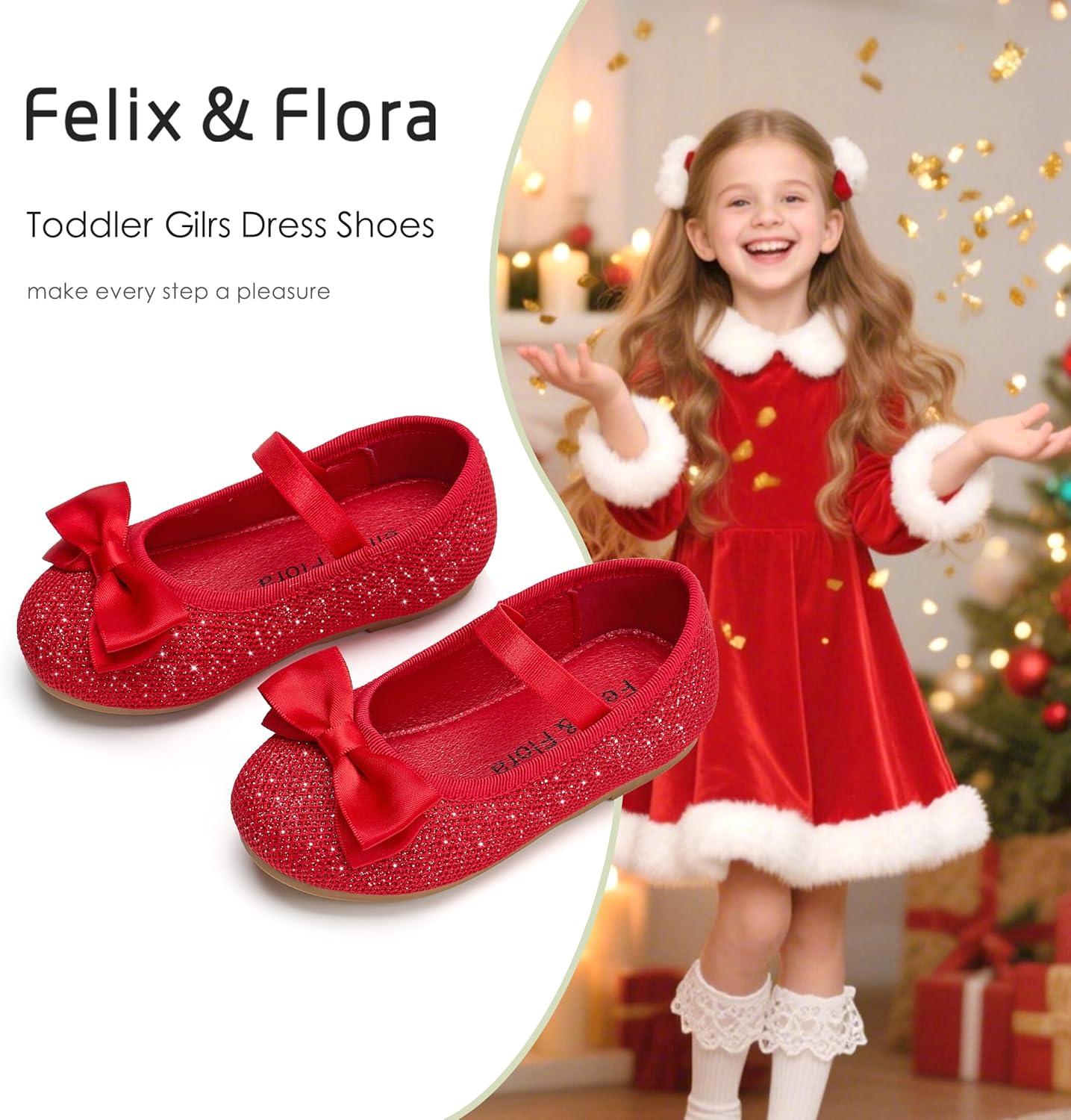 Felix & Flora Toddler Flower Girl Dress Shoes – Girl Ballet Flats Party School Shoes Wedding(Bf28-red)